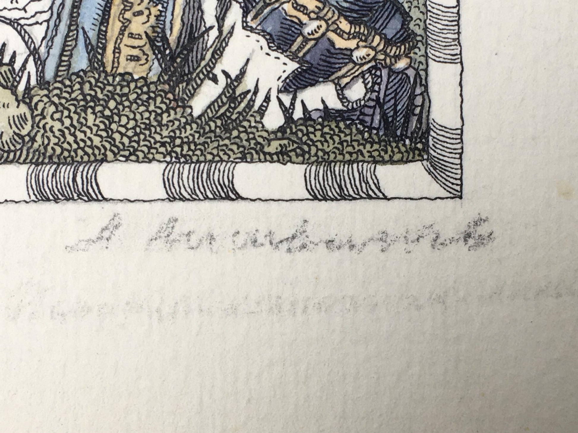 Pen and watercolor painting Sly plan Alexander Arkadievich Litvinov