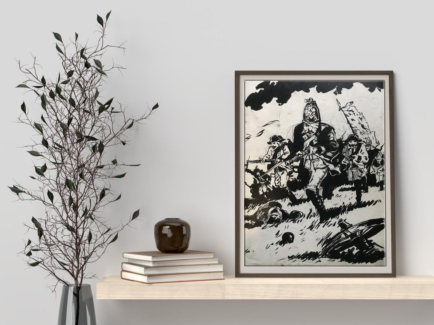 This magnificent painting, entitled "To Battle", captures the intensity and brutality of warfare. The scene is one of great chaos and violence, with soldiers clashing in brutal hand-to-hand combat. The artist has expertly captured the terror and confusion of battle, making this an essential work for anyone interested in the history of warfare.