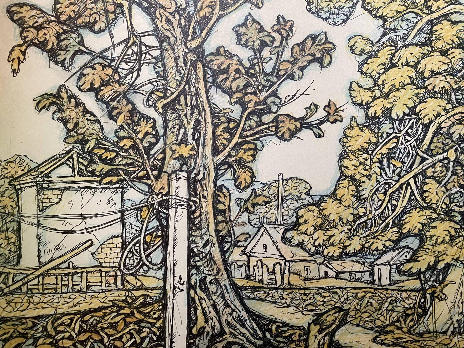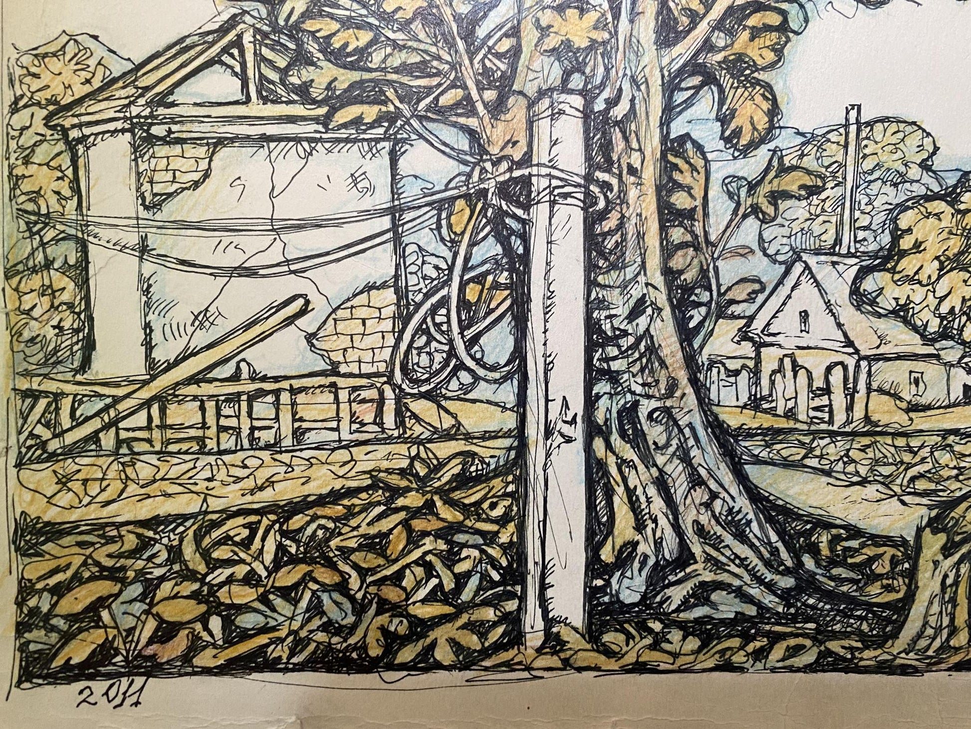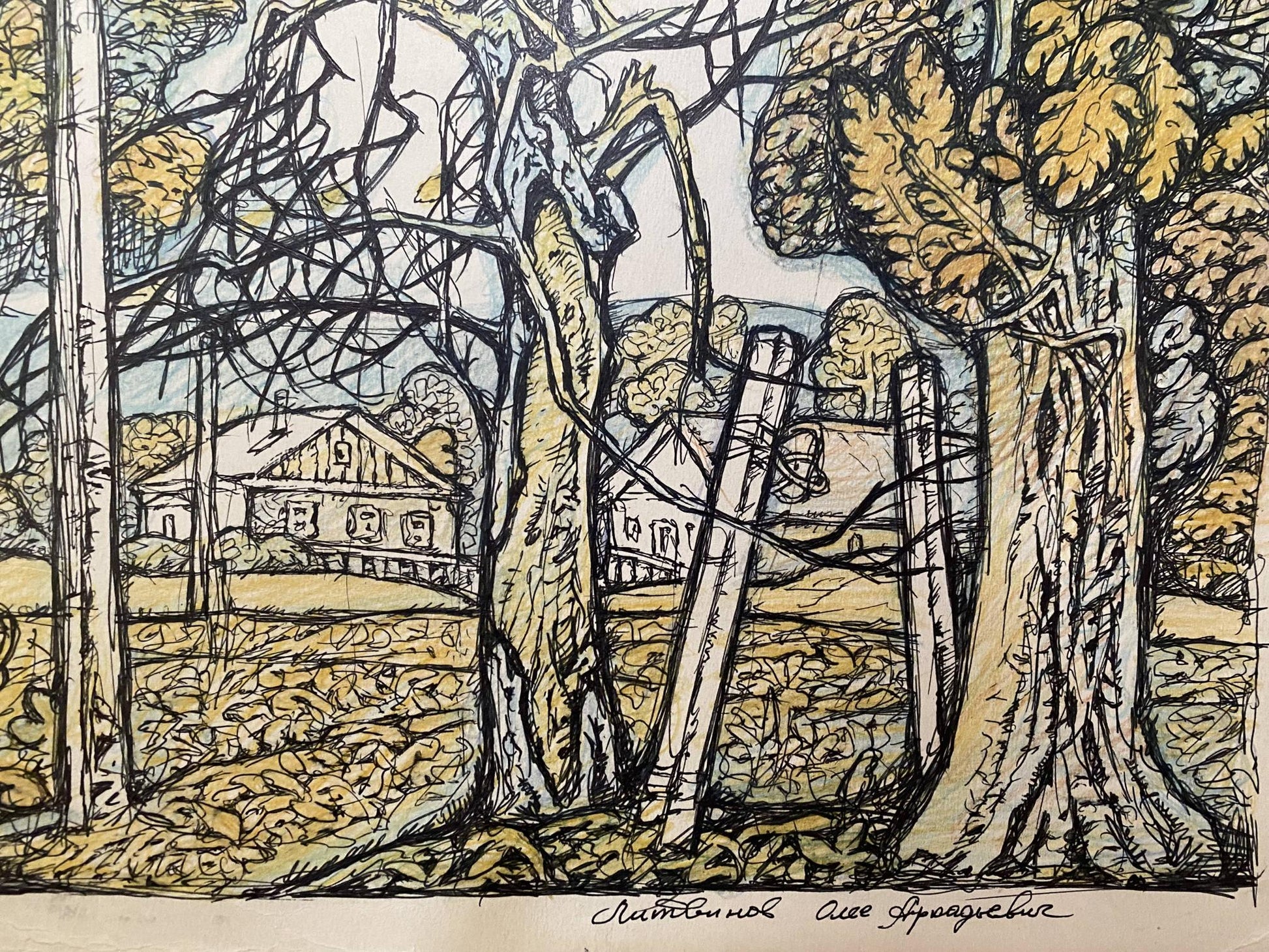 Pencil,Ink, painting Autumn landscape Litvinov Oleg Arkad'yevich