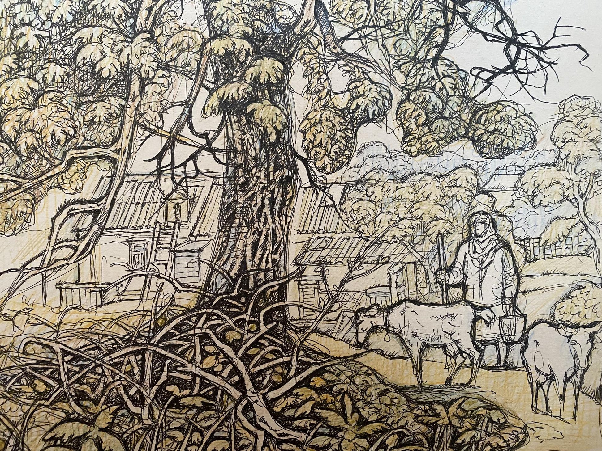 Pencil, Ink, painting Noon Litvinov Oleg Arkad'yevich