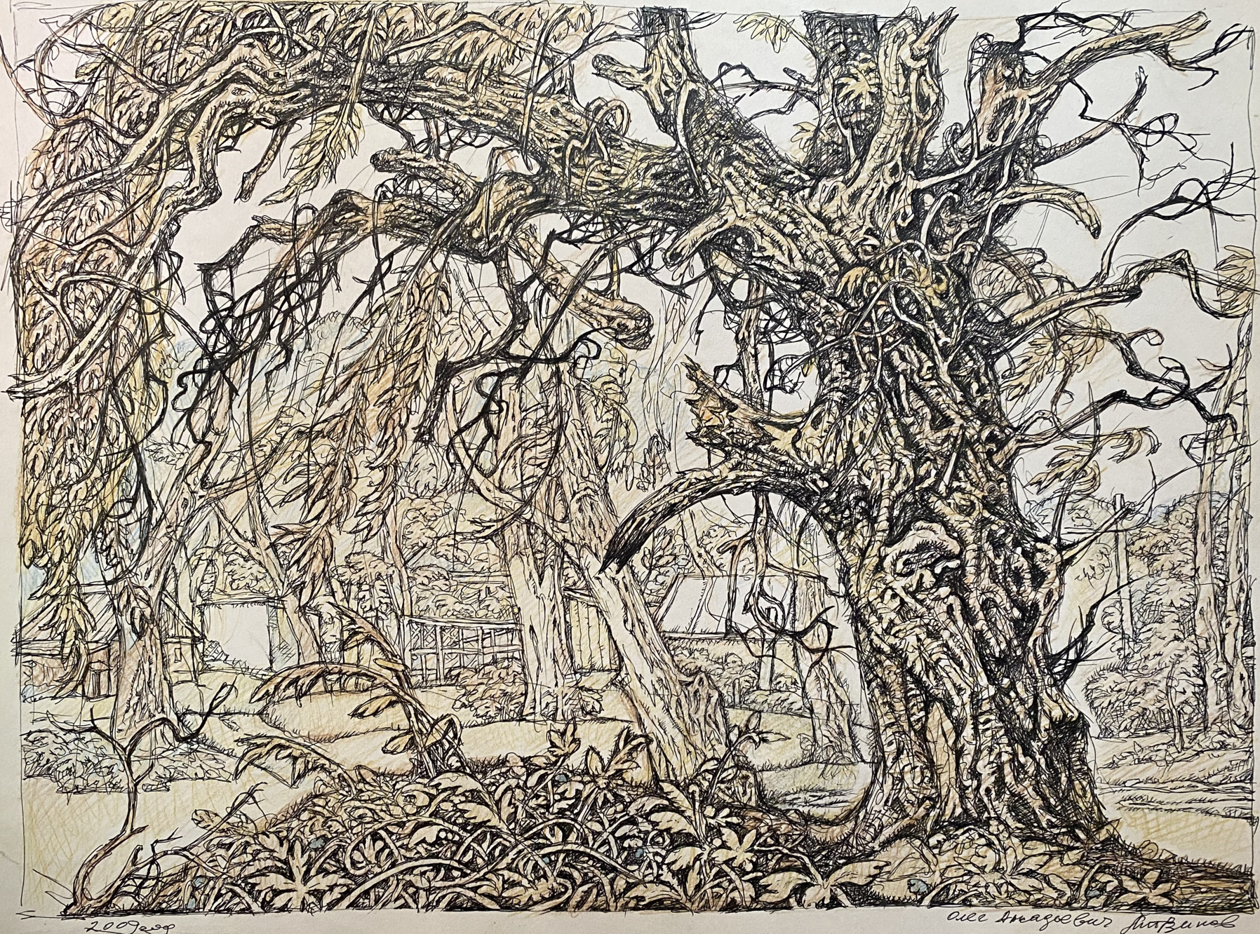 Pencil, Ink, painting Old willow Litvinov Oleg Arkad'yevich