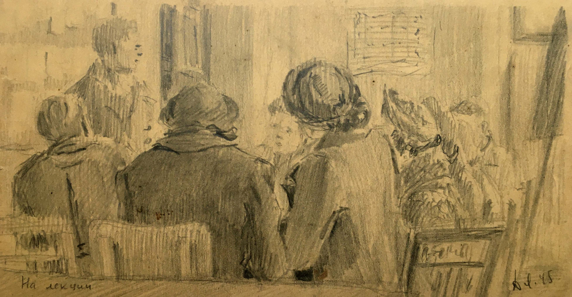 Pencil painting At the lecture Dmitry Lednev