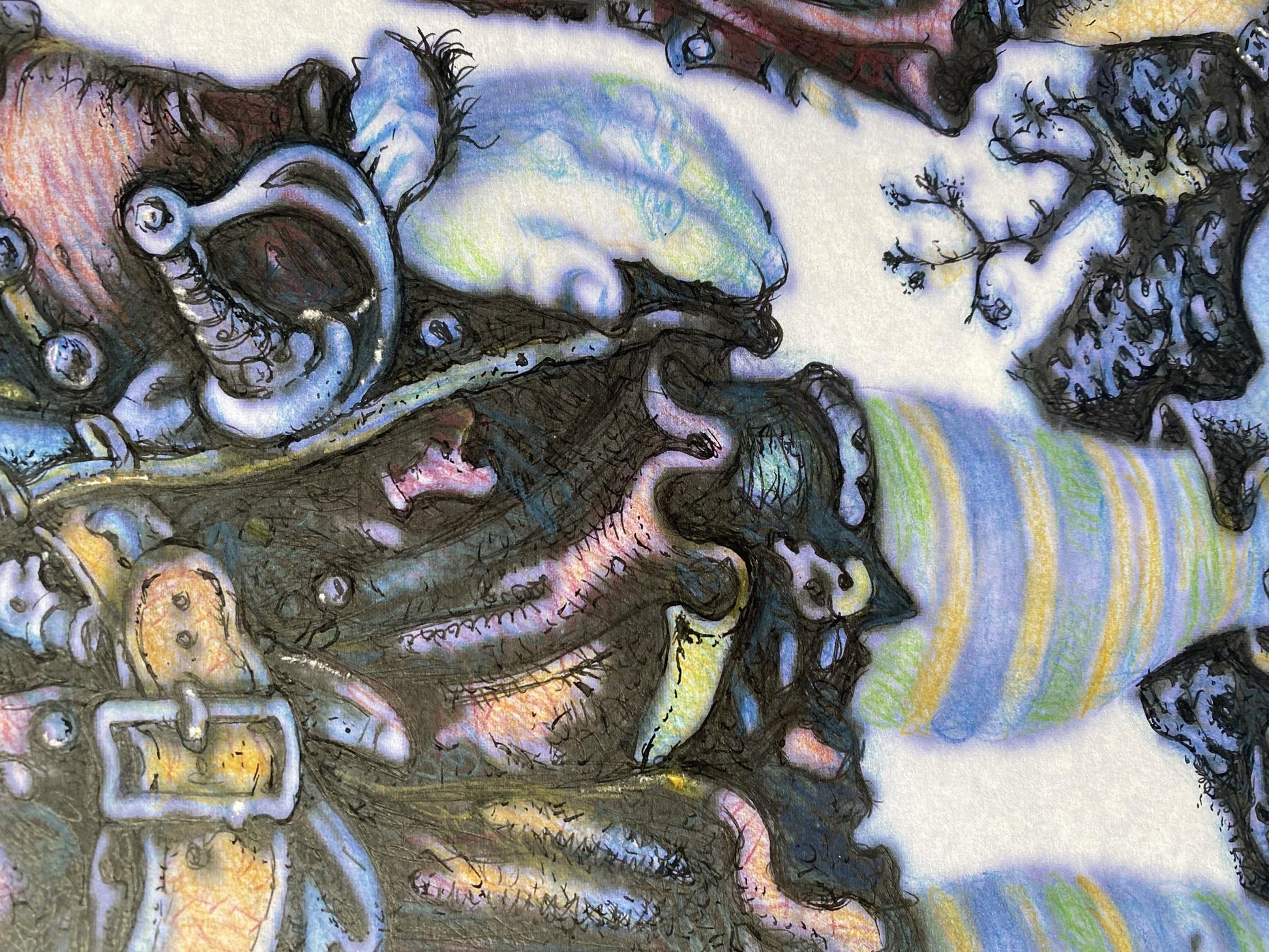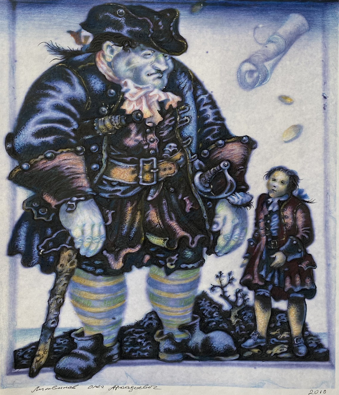Pencil painting Big pirate on treasure island Oleg Litvinov
