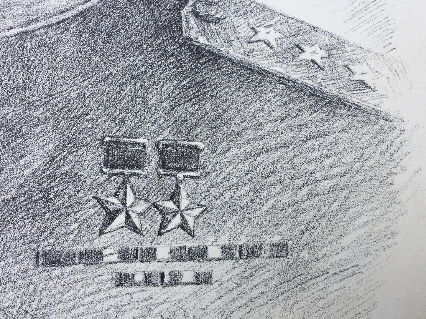 Pencil painting Chernyakhovsky Ivan Danilovich Litvinov Alexandr Arkad'yevich