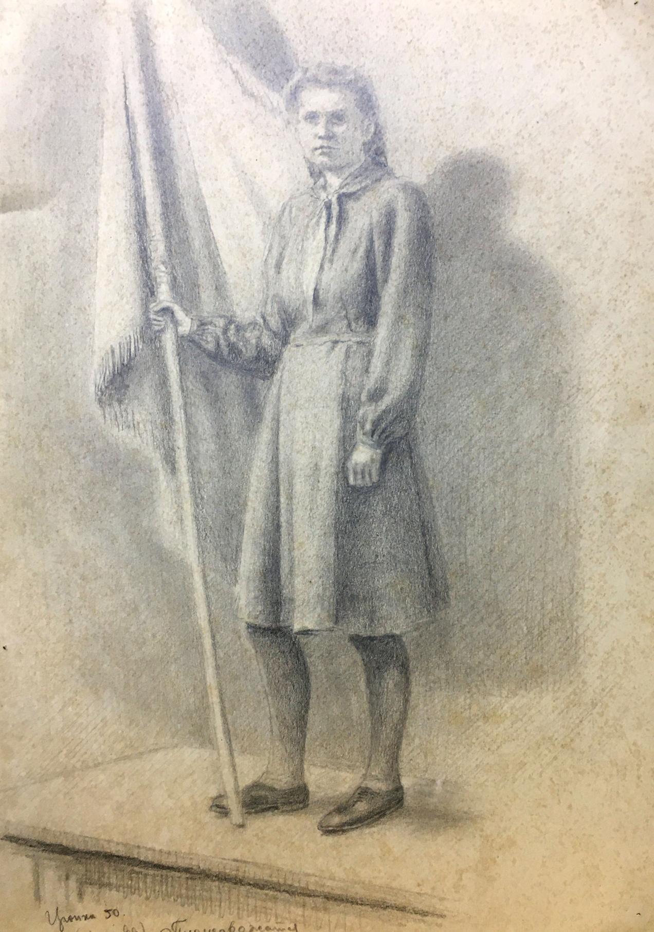 Pencil painting Girl pioneer leader Ivan Tsyupka