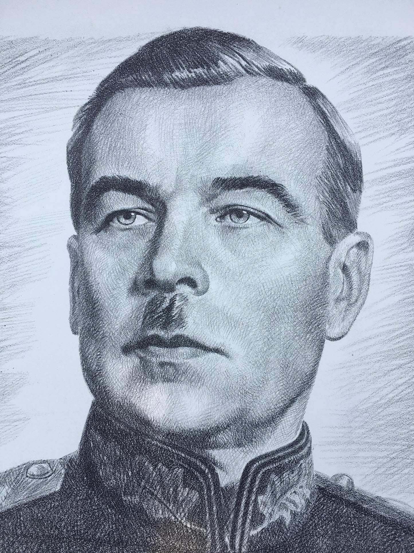 Pencil painting Govorov Leonid Alexandrovich Litvinov Alexandr Arkad'yevich