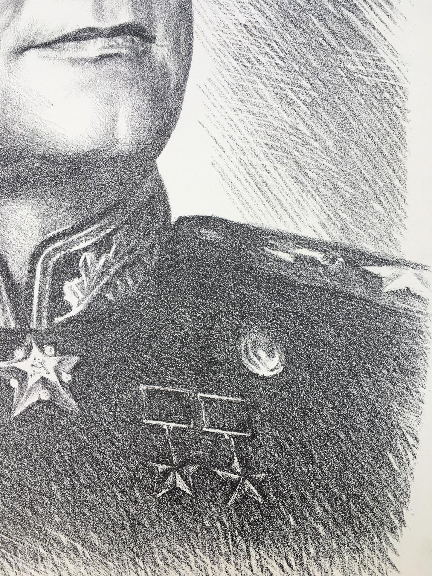 Pencil painting Konev Stepan Ivanovich Litvinov Alexandr Arkad'yevich