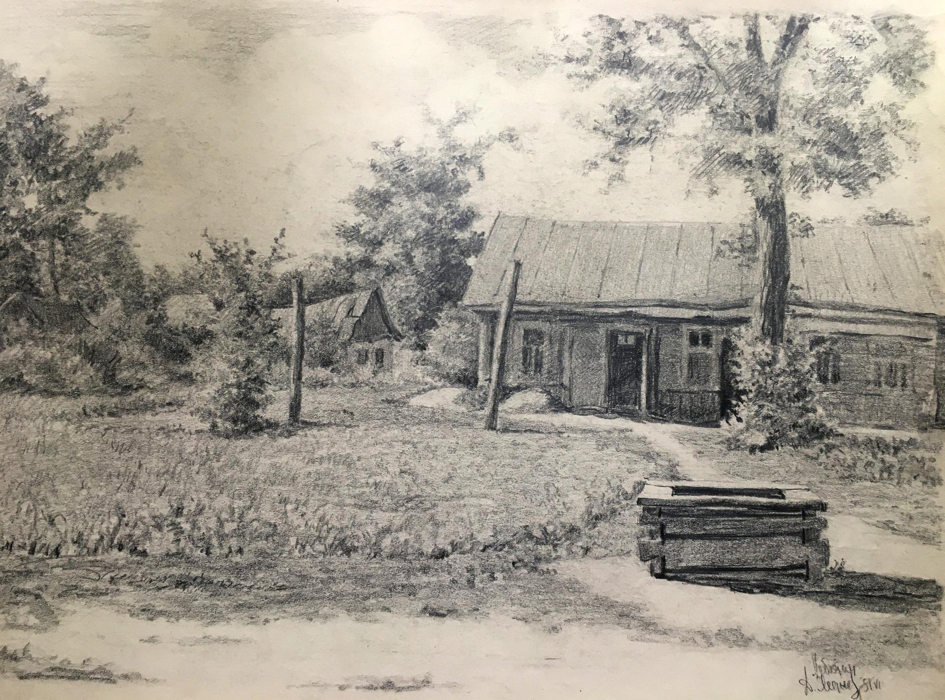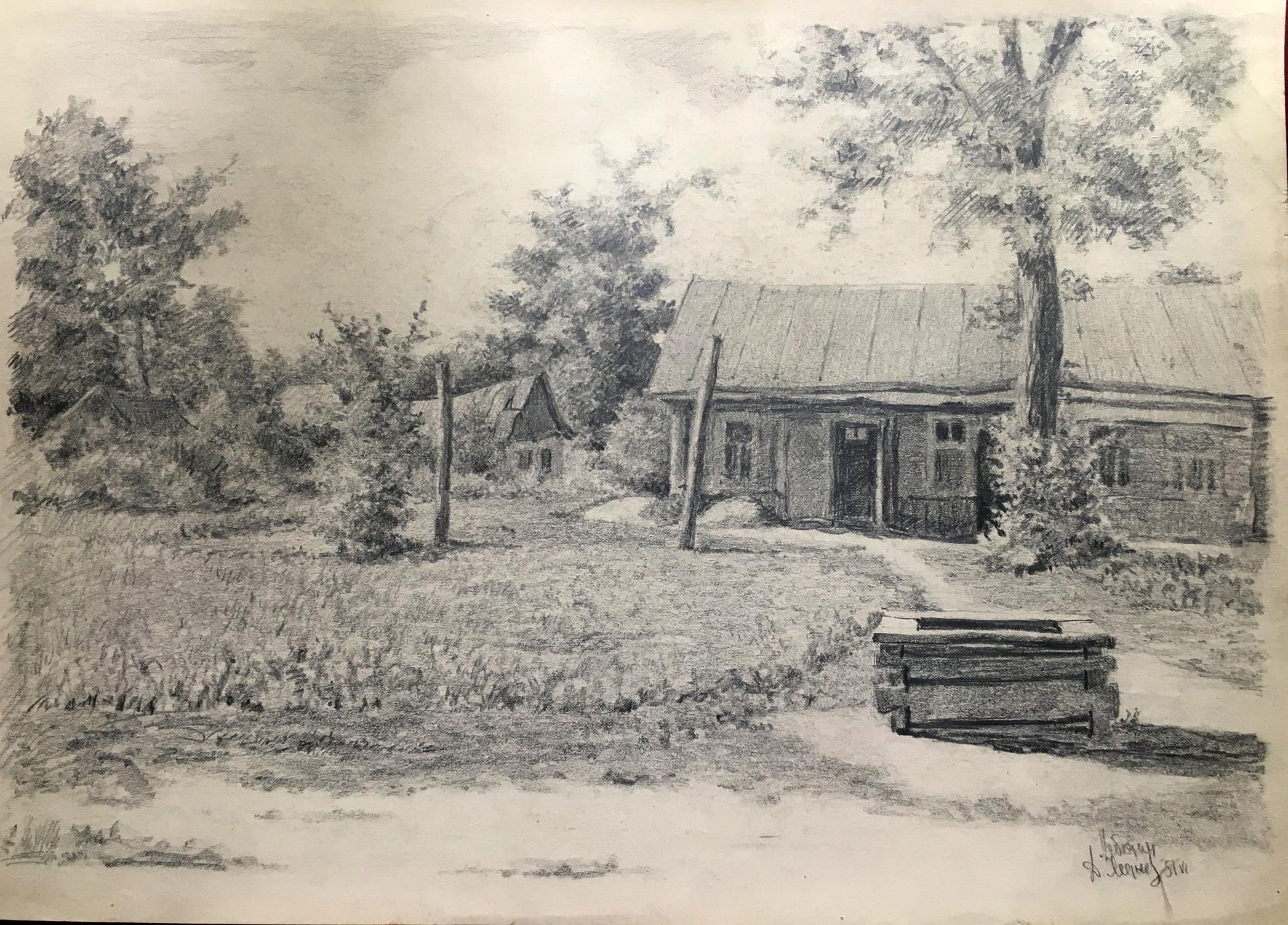 Pencil painting Luxurious courtyard at home Dmitry Lednev