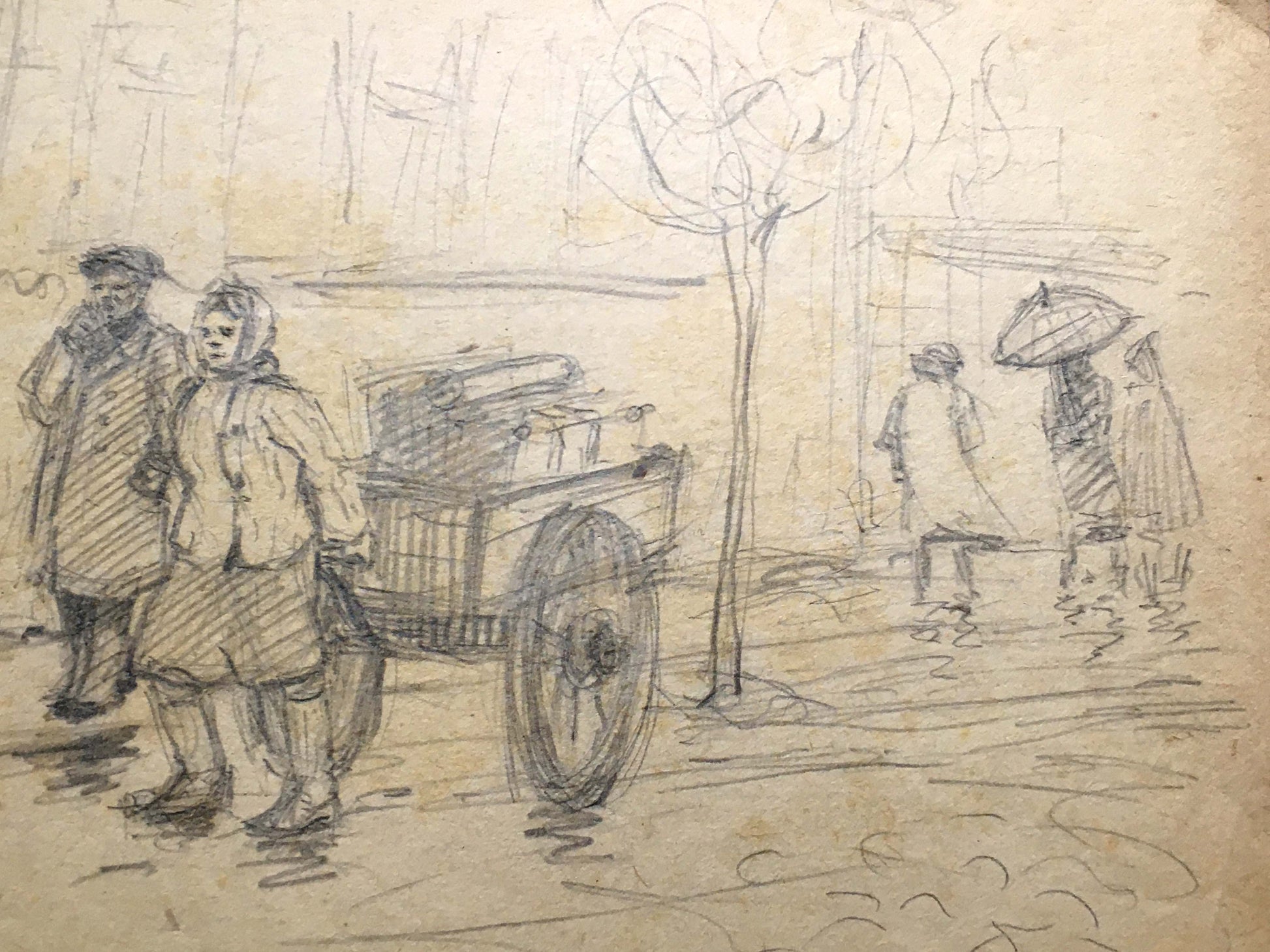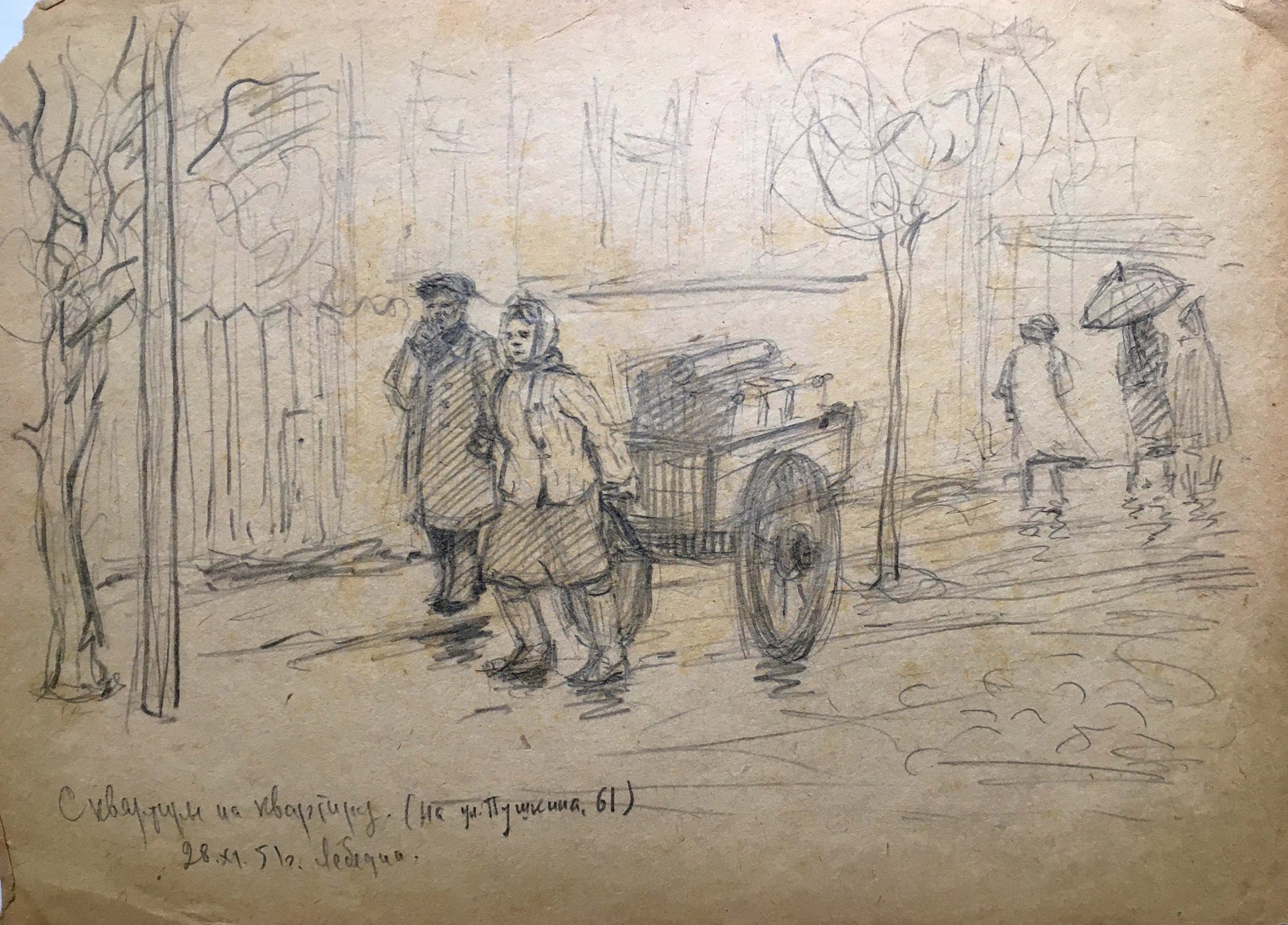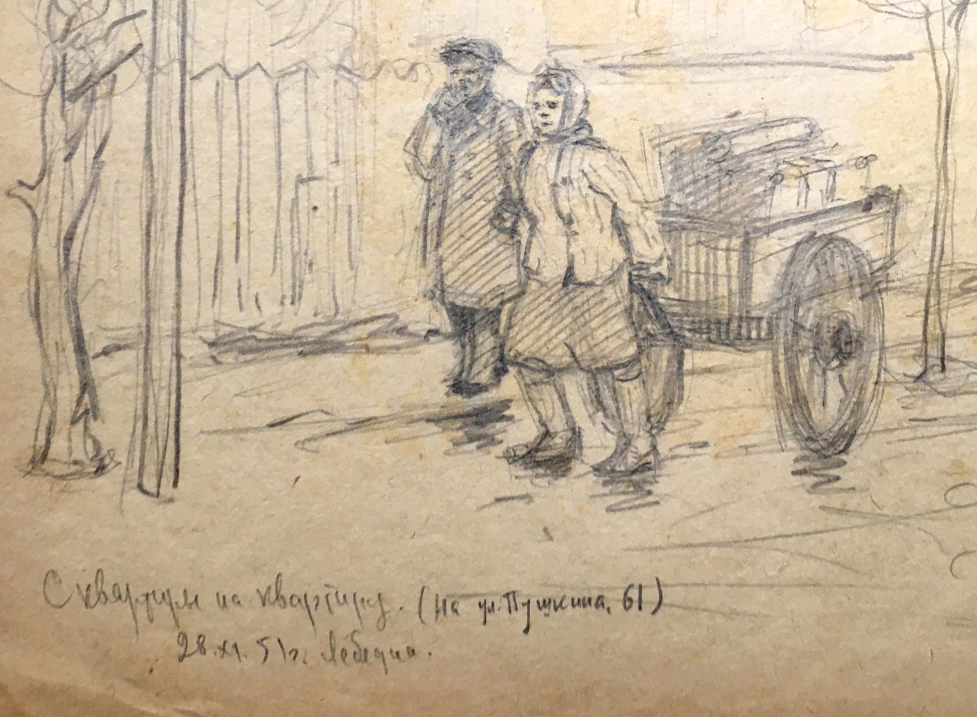 Pencil painting Moving to a new apartment Dmitry Lednev