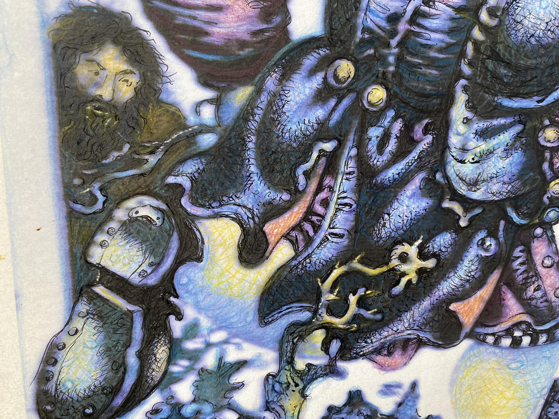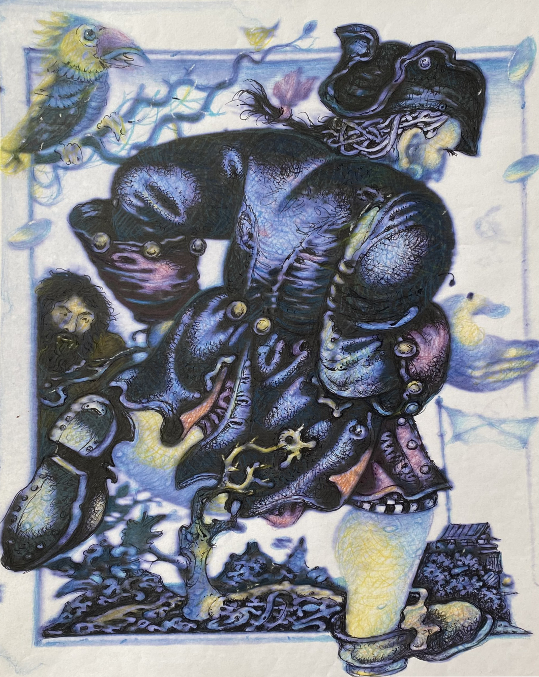 Pencil painting Pirate with a parrot Oleg Litvinov