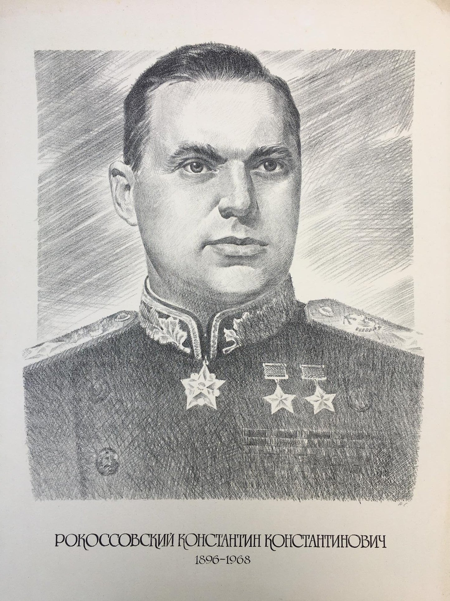 Pencil painting Rokossovsky Konstantin Konstantinovich Litvinov Alexandr Arkad'yevich
