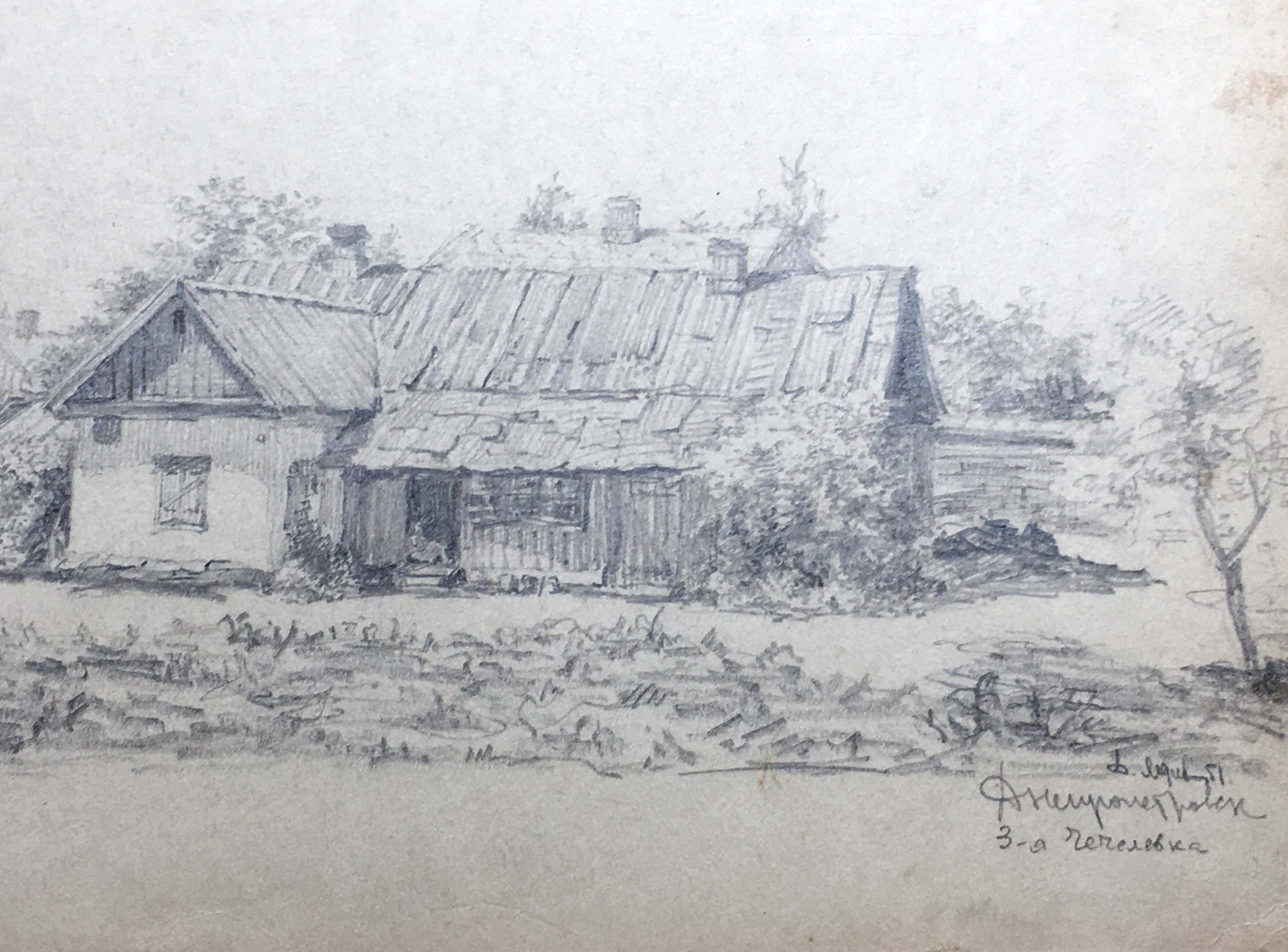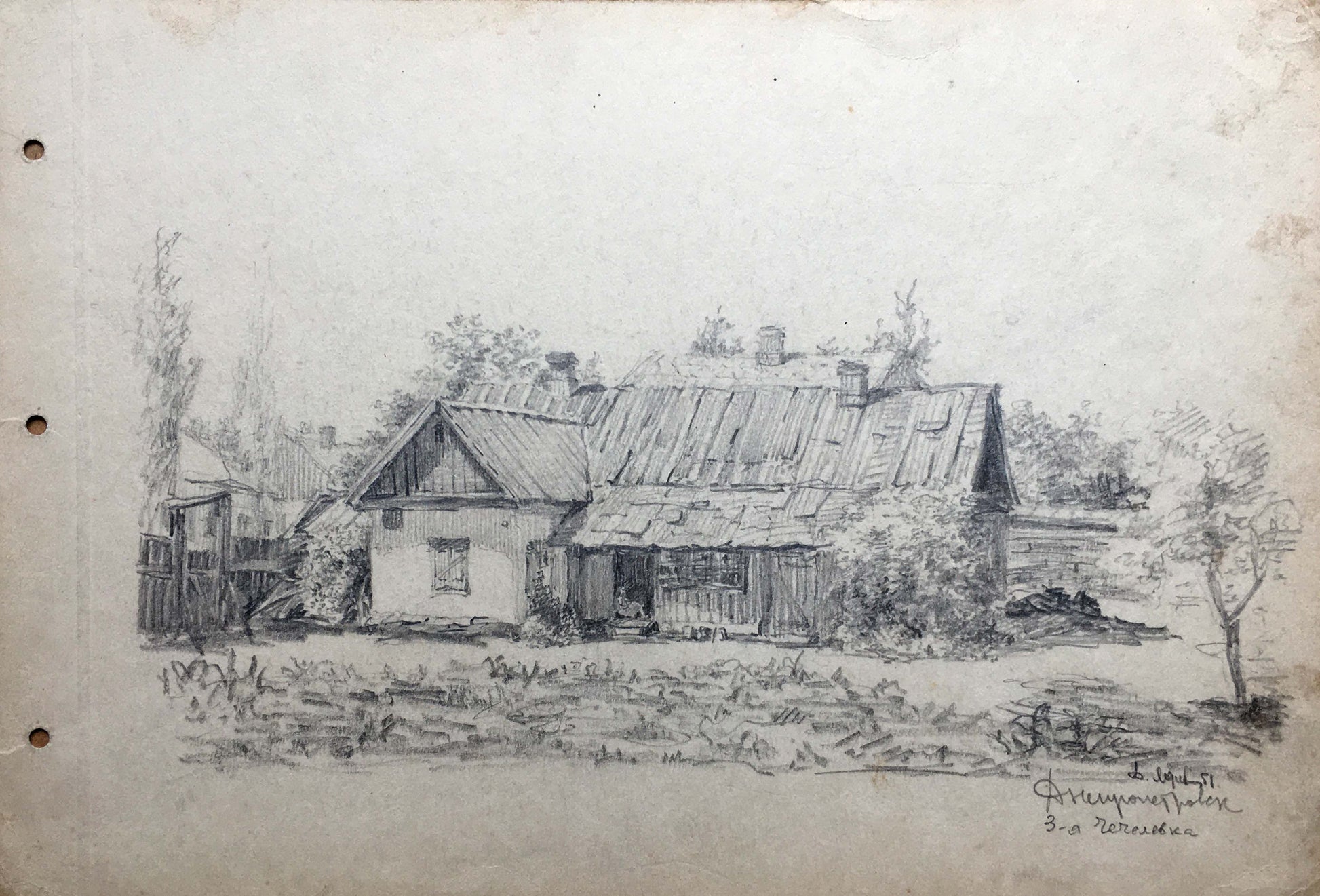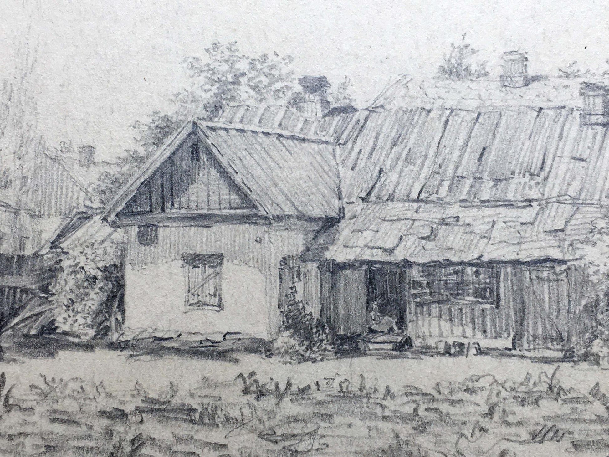 Pencil painting There's a barn in the yard Dmitry Lednev