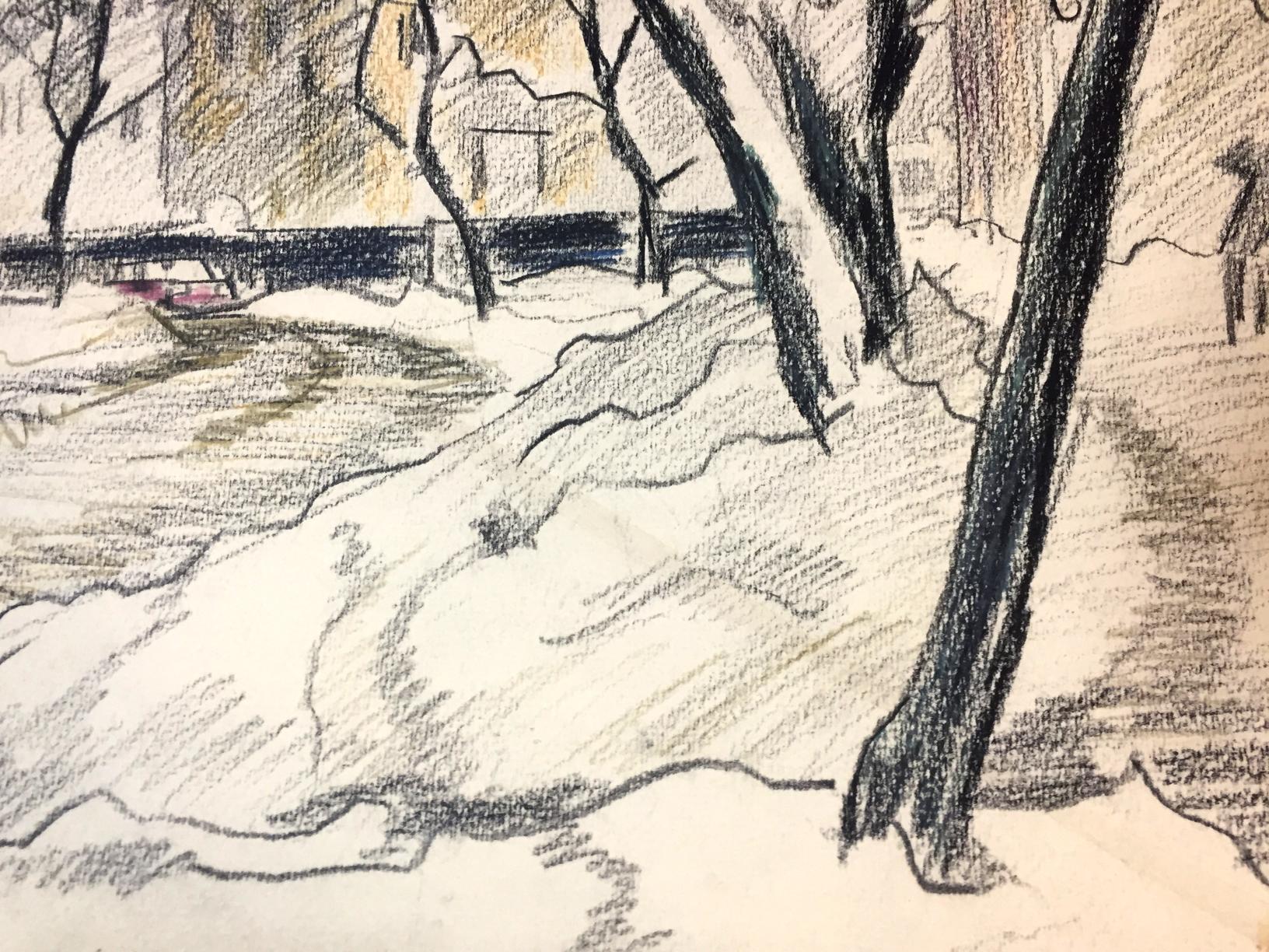 Pencils painting Pokrovnaya street. Winter Kryzhanivskyi Viktor Vladimirovich