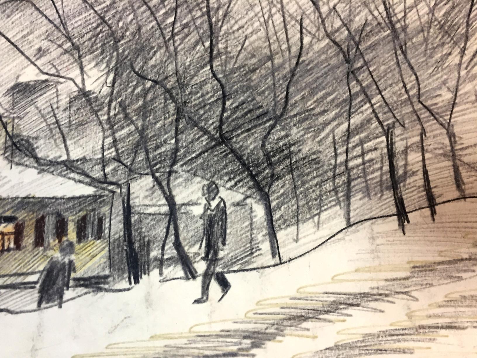 Pencils painting Winter melancholy outside Viktor Kryzhanivskyi