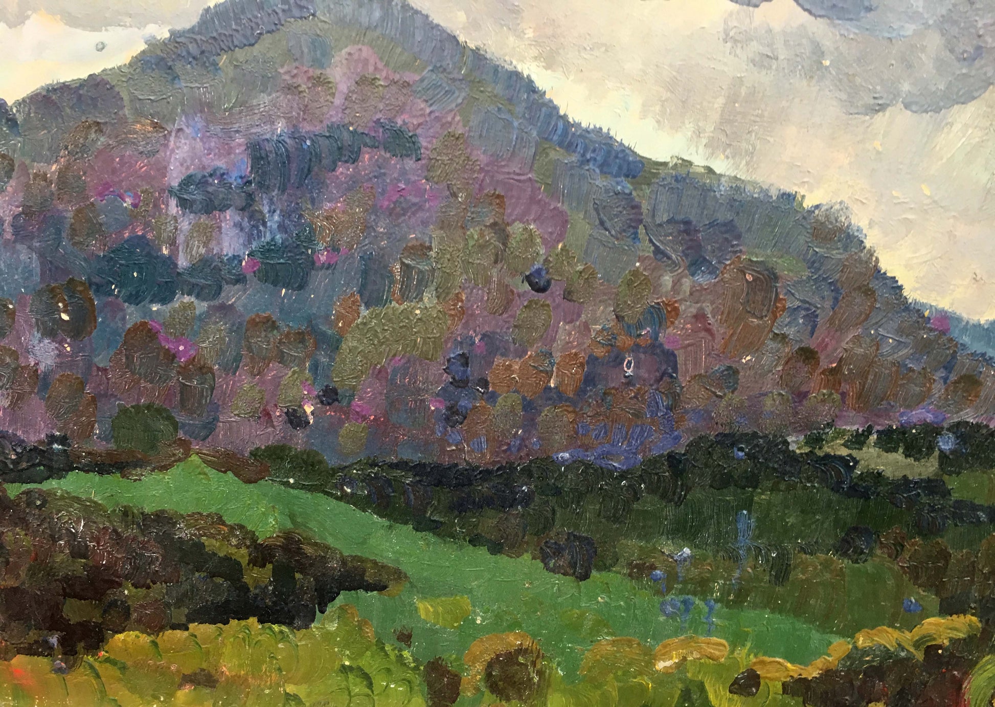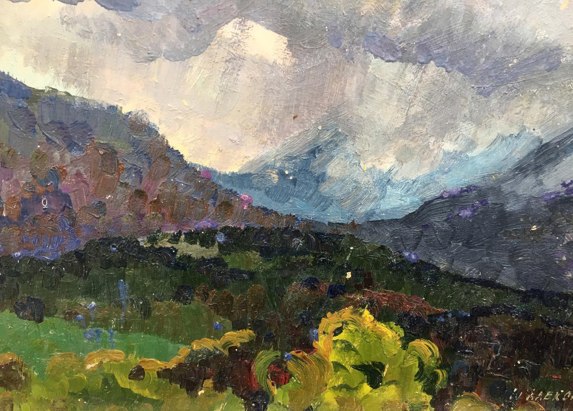 About the artist: Born on January 27, 1937 in Stalingrad, now Volgograd. He graduated from the Kharkov Art Institute of Painting, Theater and Decorative Faculty (1964). Teacher, specialty - B. Kosarev. Painter, theater artist. Member of the National Union of Artists of Ukraine (1974). He worked as artistic director of the Sumy Regional Ukrainian Music and Drama Theater (1964-66), as an artist at the Sumy Art Production Workshop of the Art Fund of Ukraine (1965-1998). Since 1998 - retired. Participated in exhibitions: Republican (1971-1984), All-Union (1983), International (1991, 1999) Celle, (Germany). Personal - 1997 in Sumy. Major works: Painting - “Partisan Partisans” (1975), “After the Fight” (1979), “Three Bogatyrs (S. Kovpak, S. Rudnev, G. Bazyma during a partisan raid)” (1983), “First Tractor” (1984), “Approaching Autumn” (1991), “Silent Evening” (1999). Graphics - a series of "Guerrillas Sumy", "Scouts", "Commander of a company of machine gunners" (1973); In the theater: “Faust and Death” by A. Levada (sketch of scenery, 1972), “Man lives only once” by V. Maklakov (scenery, 1974); performances: “My topol'enka in a red kerchief” by C. Aitmatov, “The Snow Queen” by E. Schwartz (both - 1965), “Enchanted Windmill” by M. Stelmakh (1966), “Nazar Stodolya” by T. Shevchenko (1973), “Forerunners "A. Shiyan and Y. Zbanatsky (1974)," Stars in the morning sky "A. Galina (1986). Works are kept in the Sumy Art Museum, the Kursk Art Gallery, the Museum of Ukrainian Lesya (Kovel, Volyn Region), art galleries in the town of Vrashta (Bulgaria), and Celle. (Germany). He died January 29, 2008.