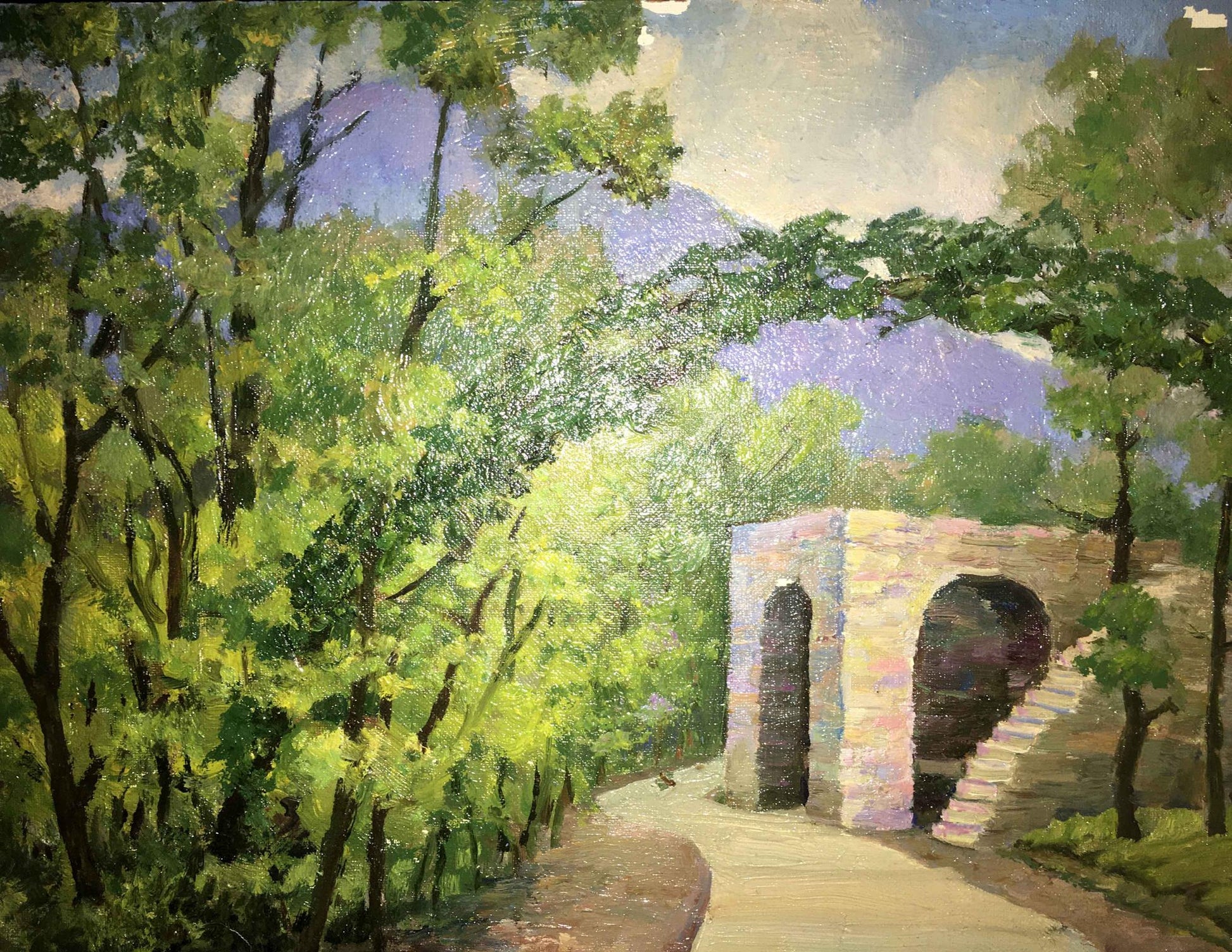 Stone arbor oil painting Lednev Dmitry