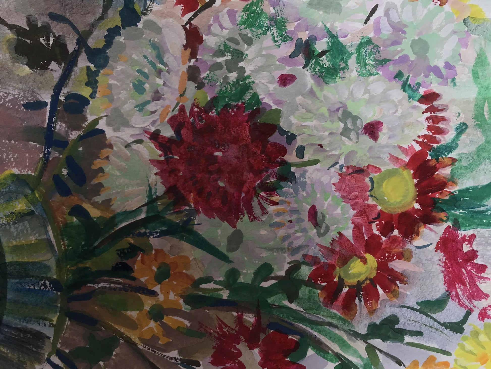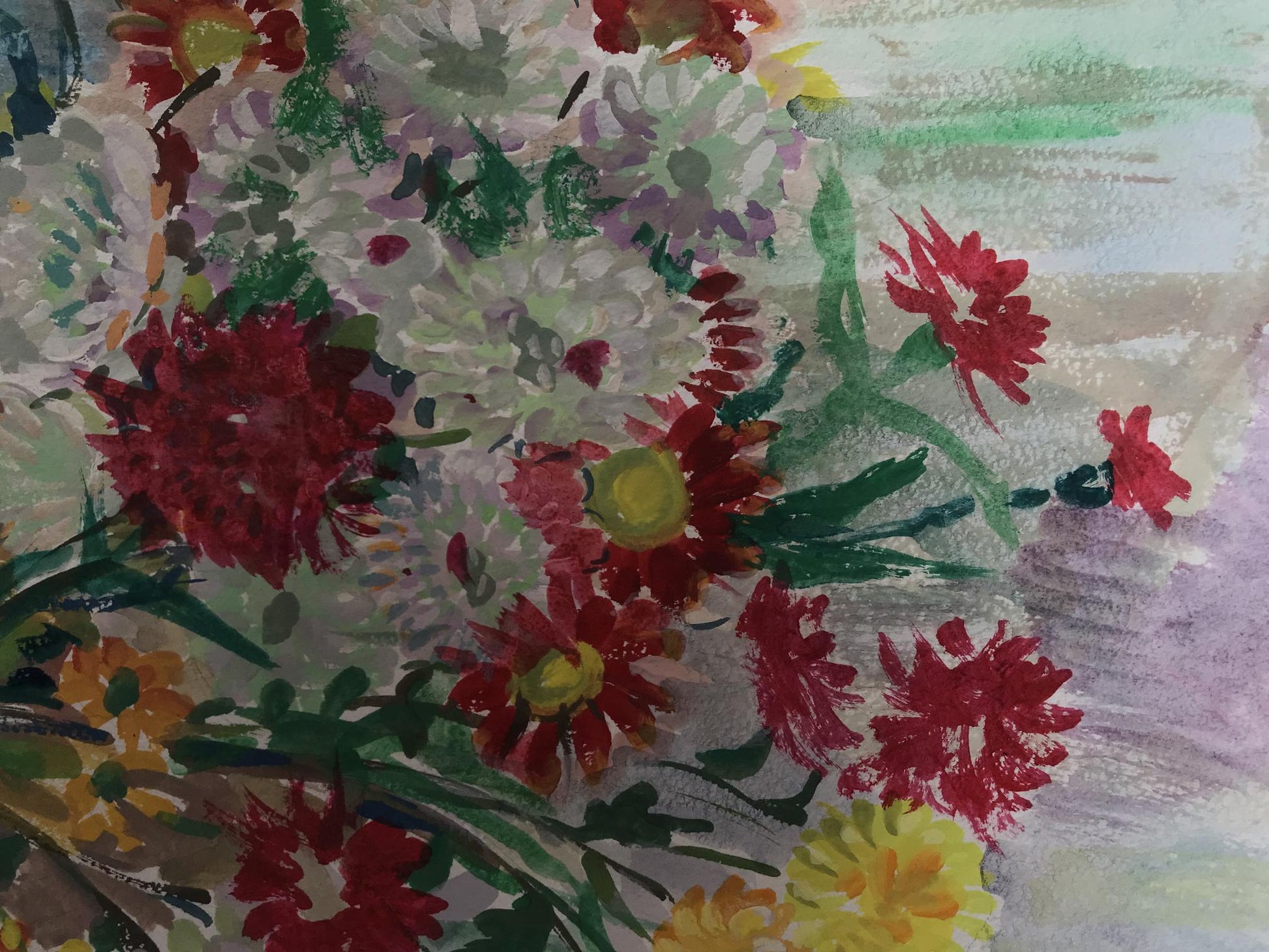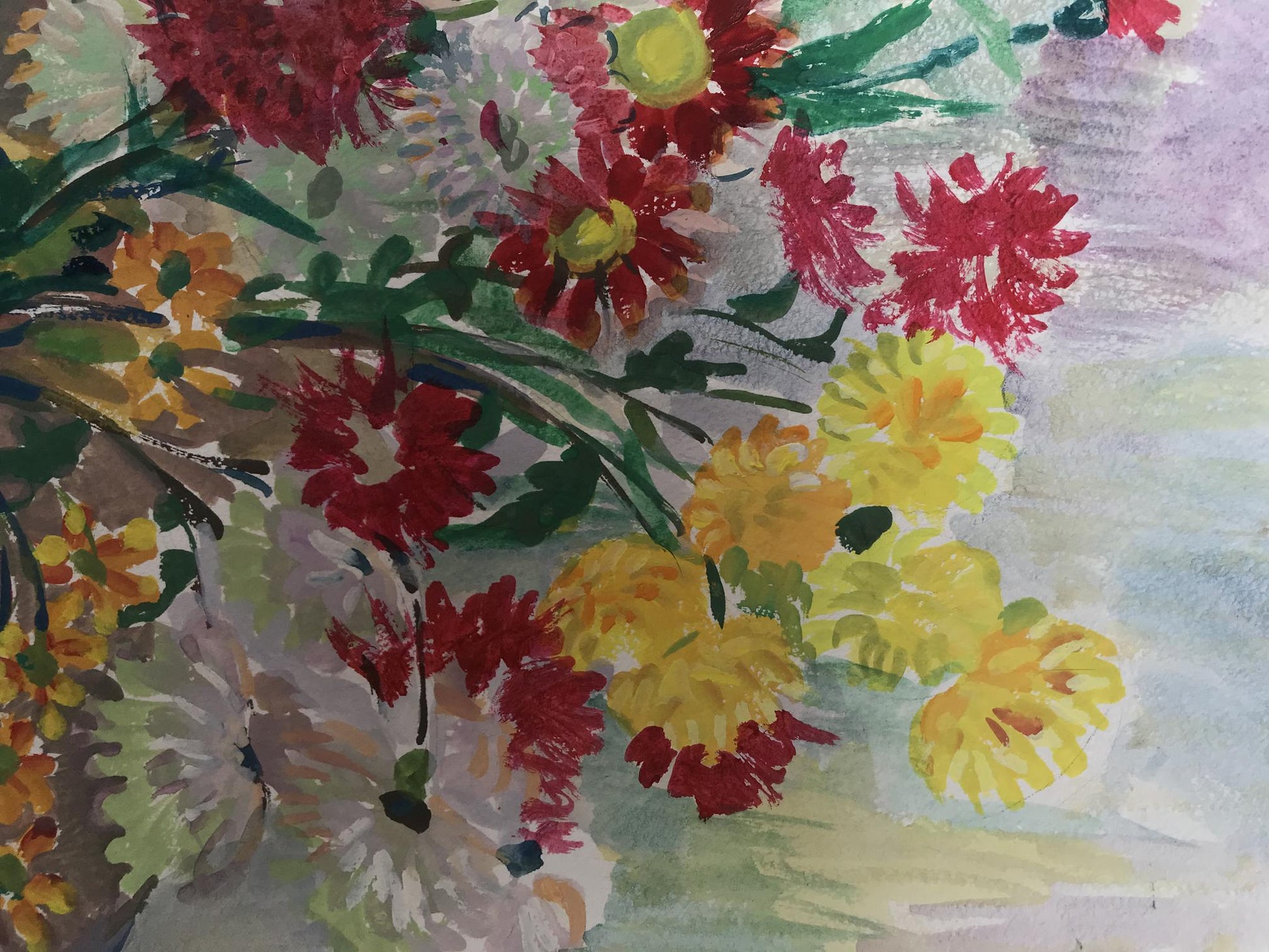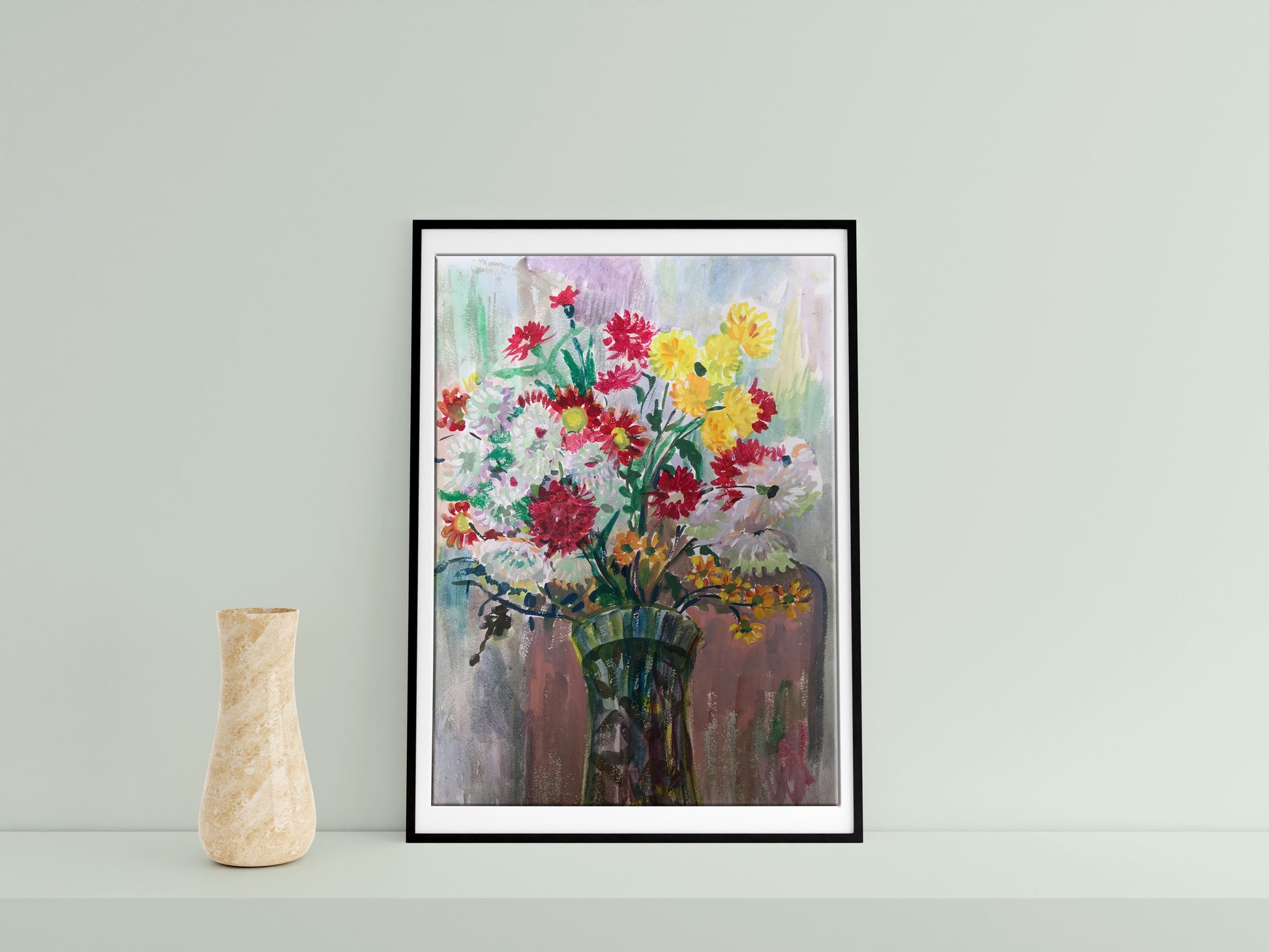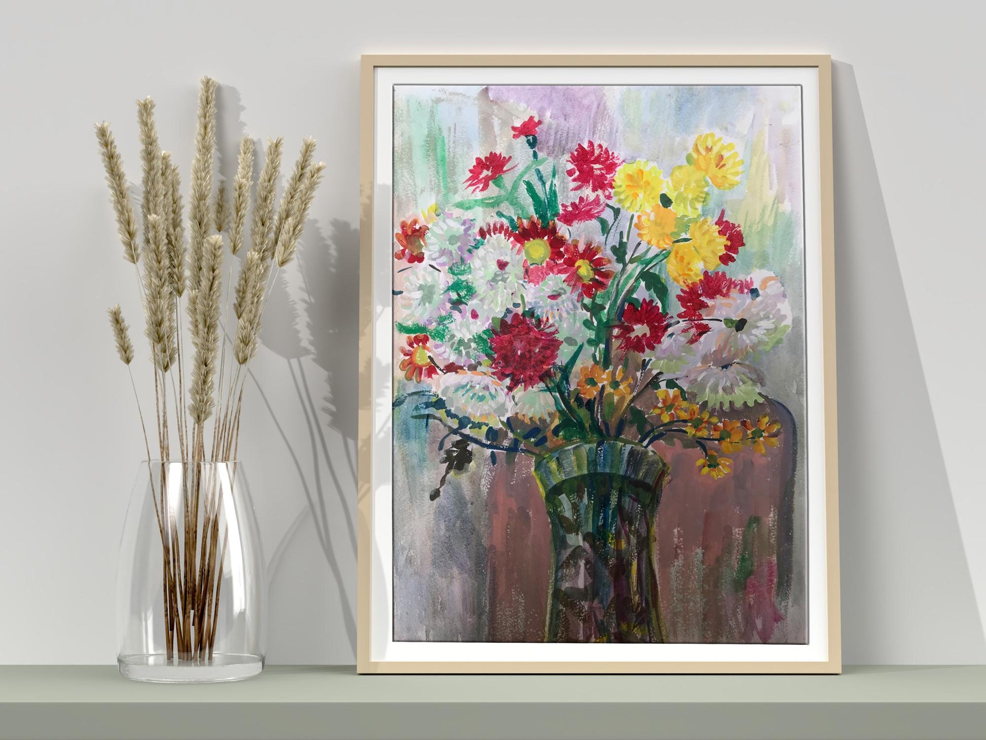 Looking for a eye-catching and vibrant work of art to liven up your home or office? Check out this painting, entitled "Bouquet of Daisies." It features a beautiful arrangement of colorful daisies in a crystal vase. The vibrant colors and delicate details are sure to brighten up any space.