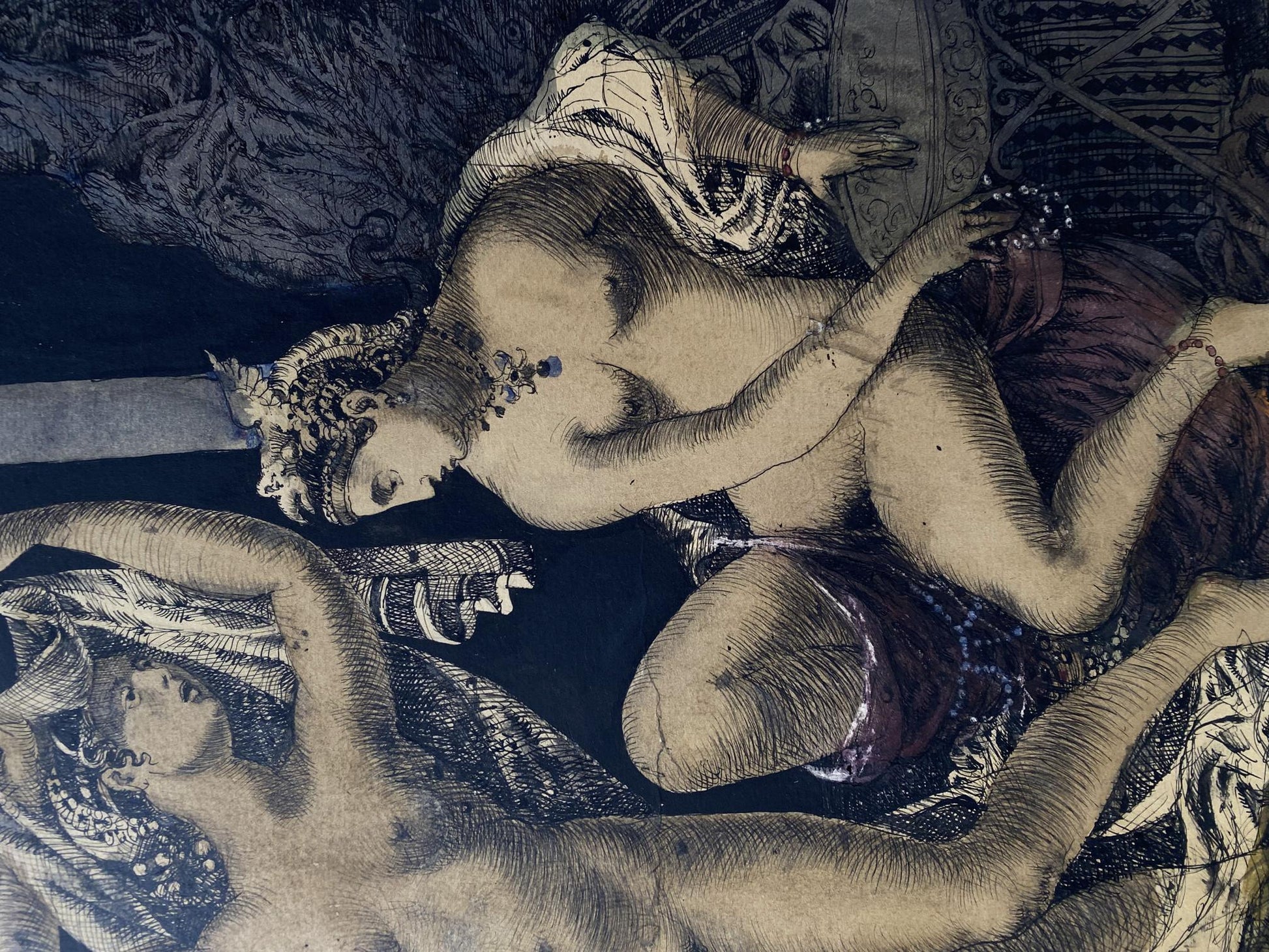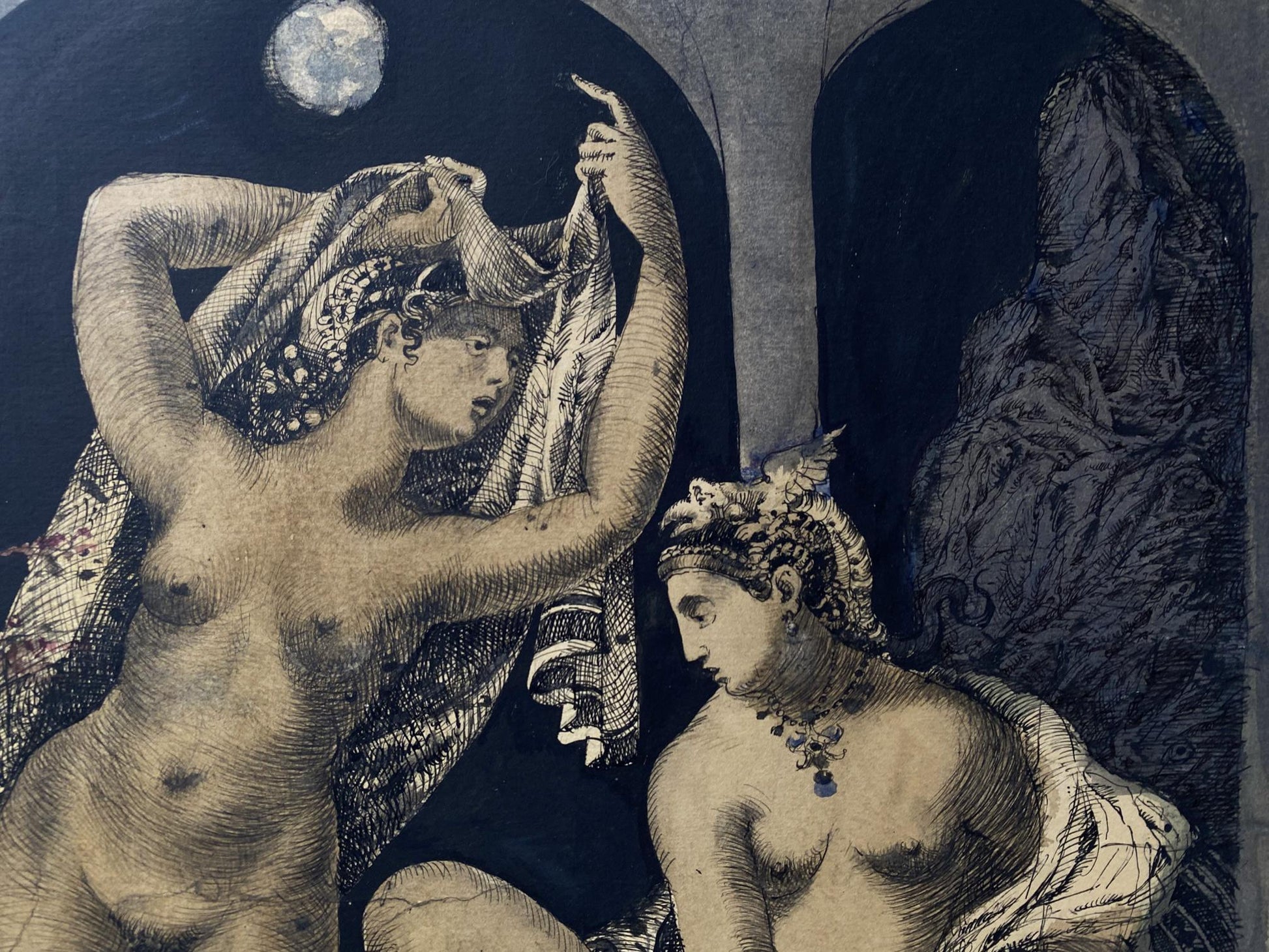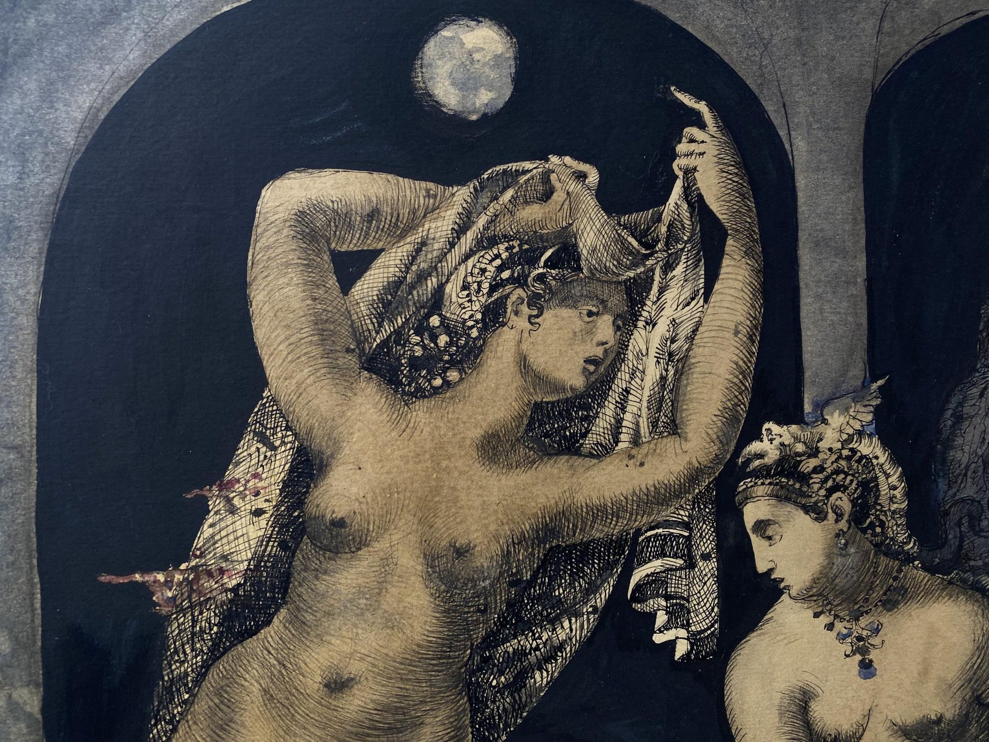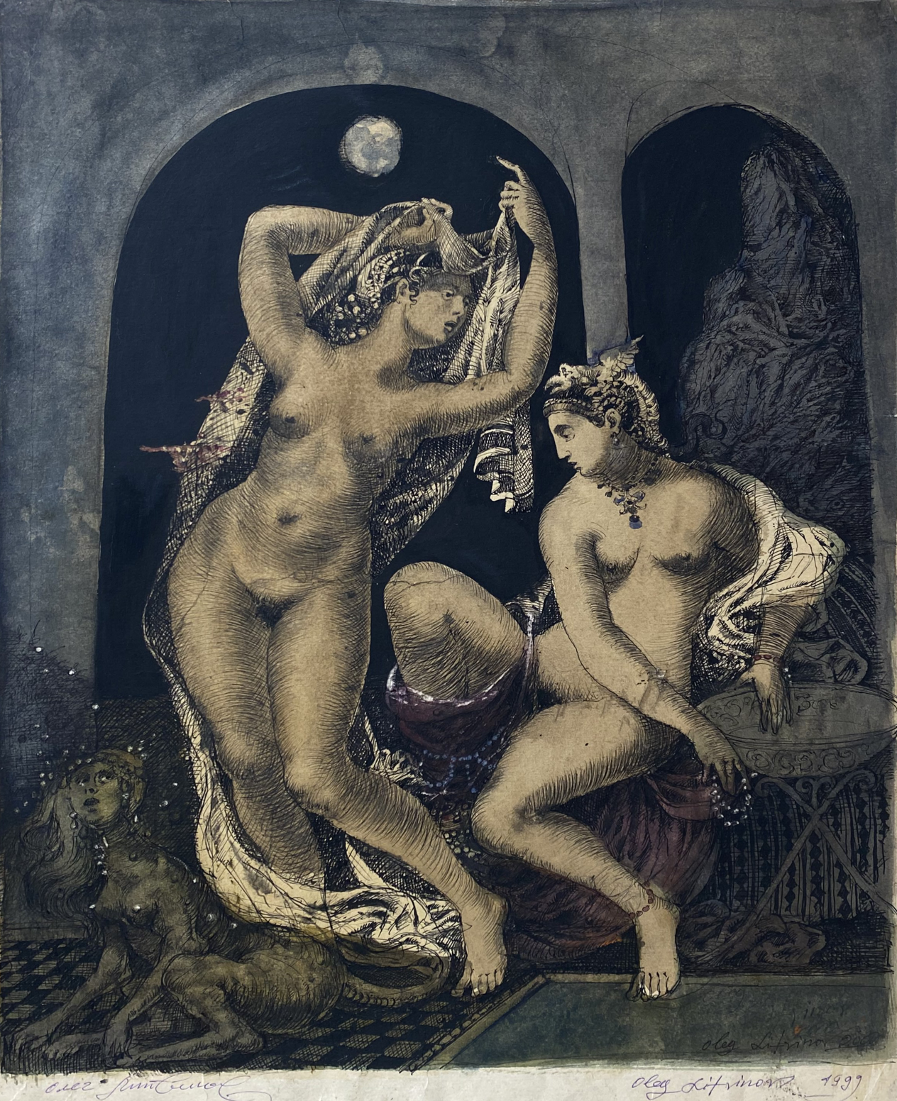 Watercolor ,Ink, painting Full moon Litvinov Oleg Arkad'yevich
