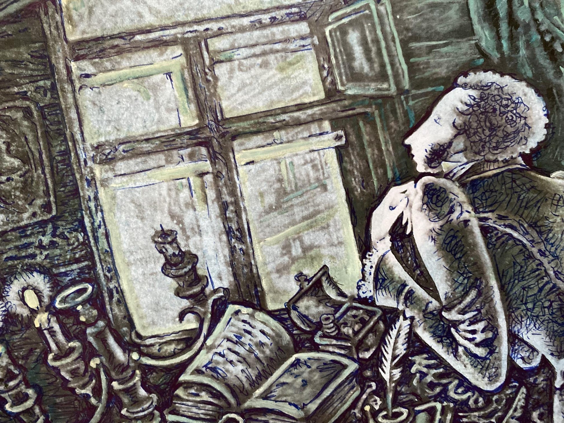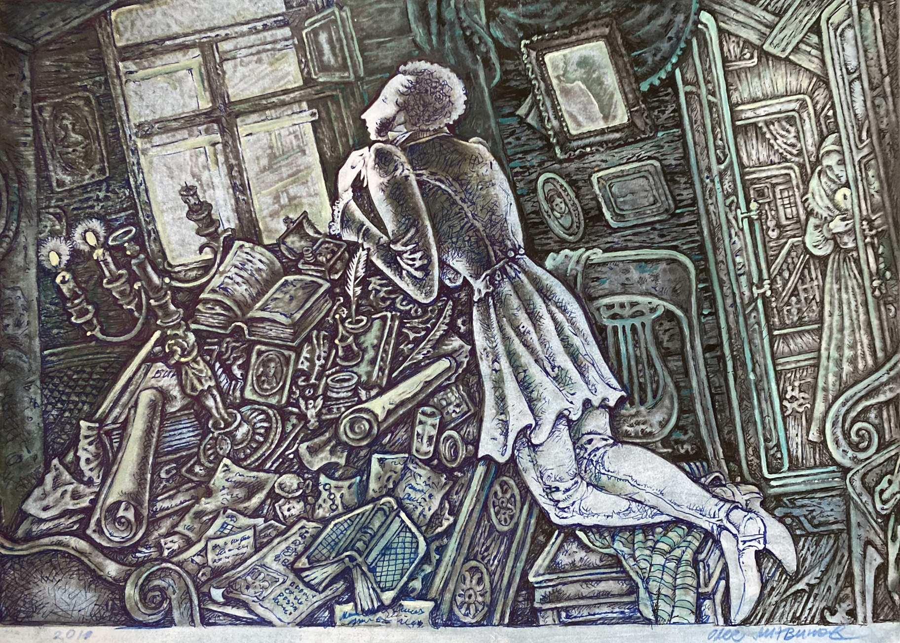 Watercolor, Ink, painting Pushkin Litvinov Oleg Arkad'yevich