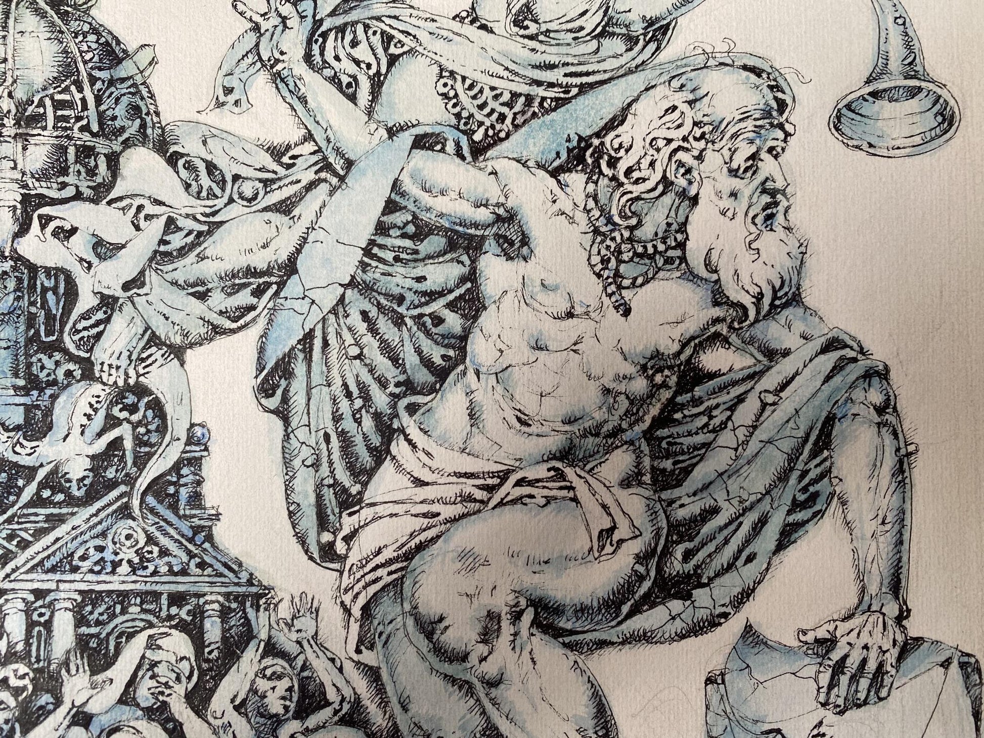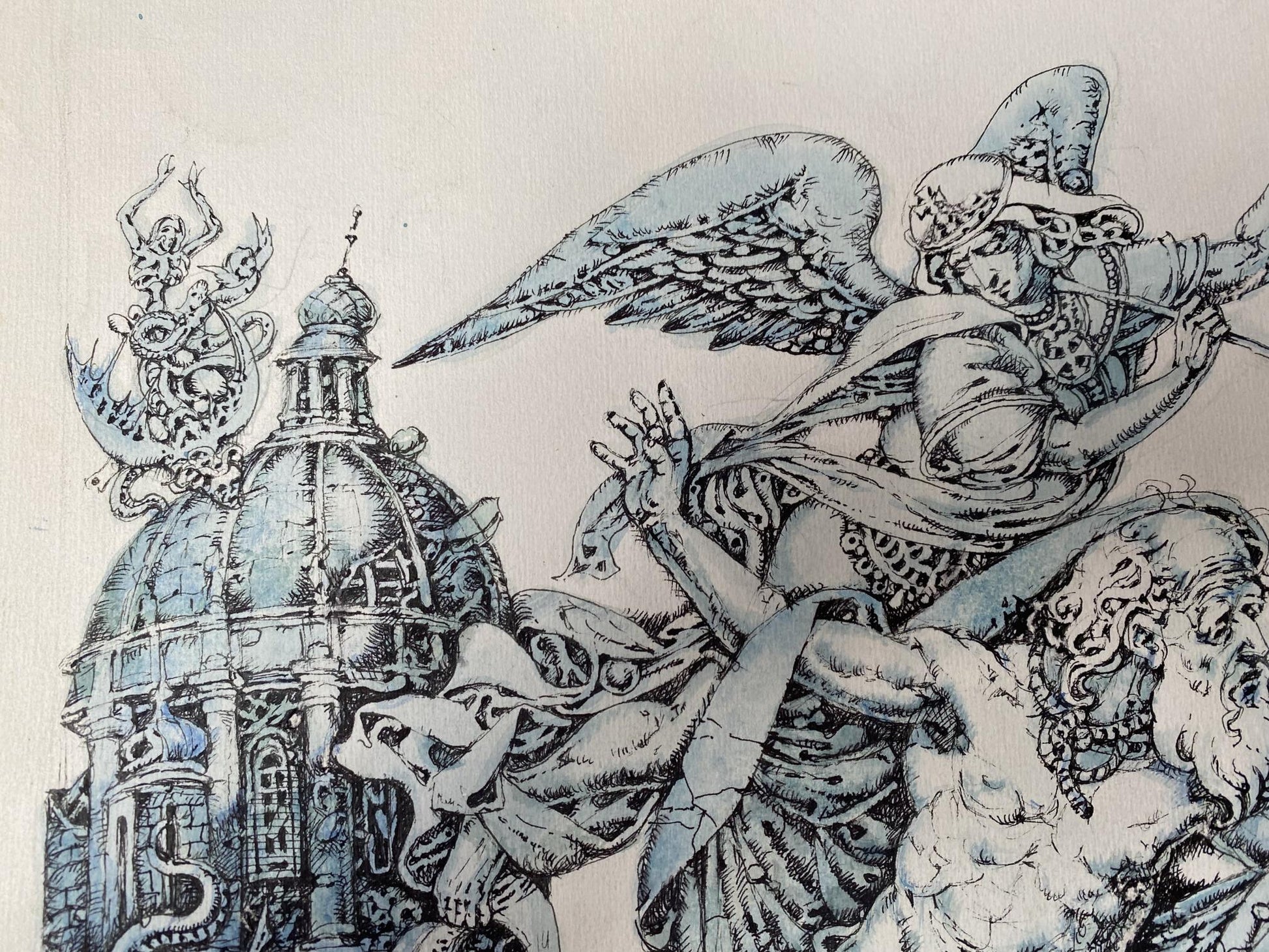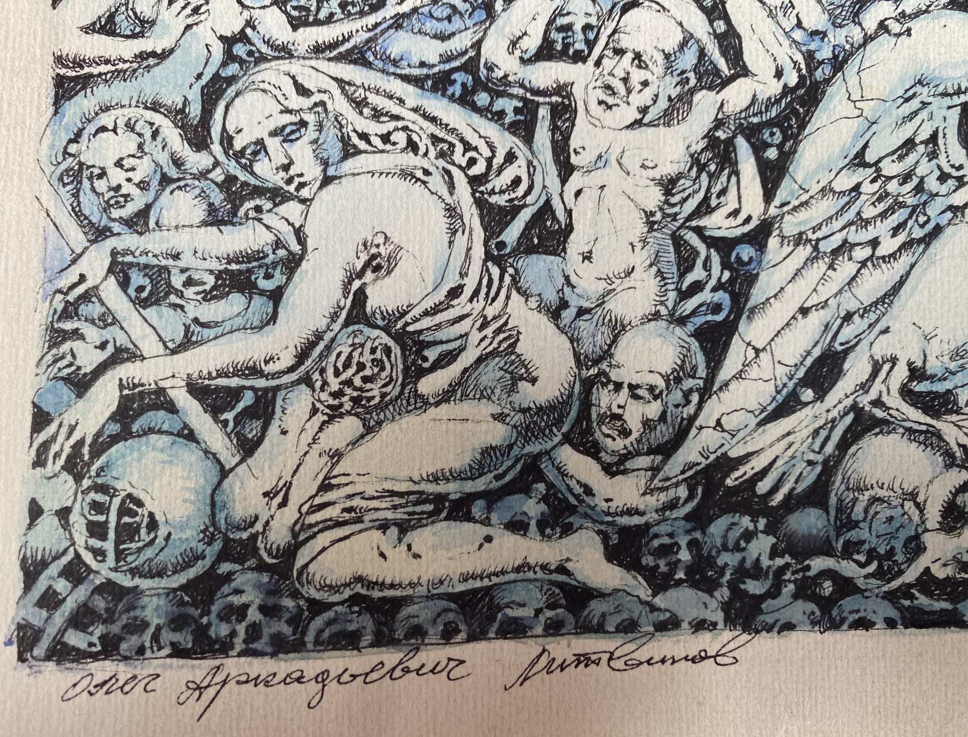 Watercolor,Ink, painting St John's vision Litvinov Oleg Arkad'yevich