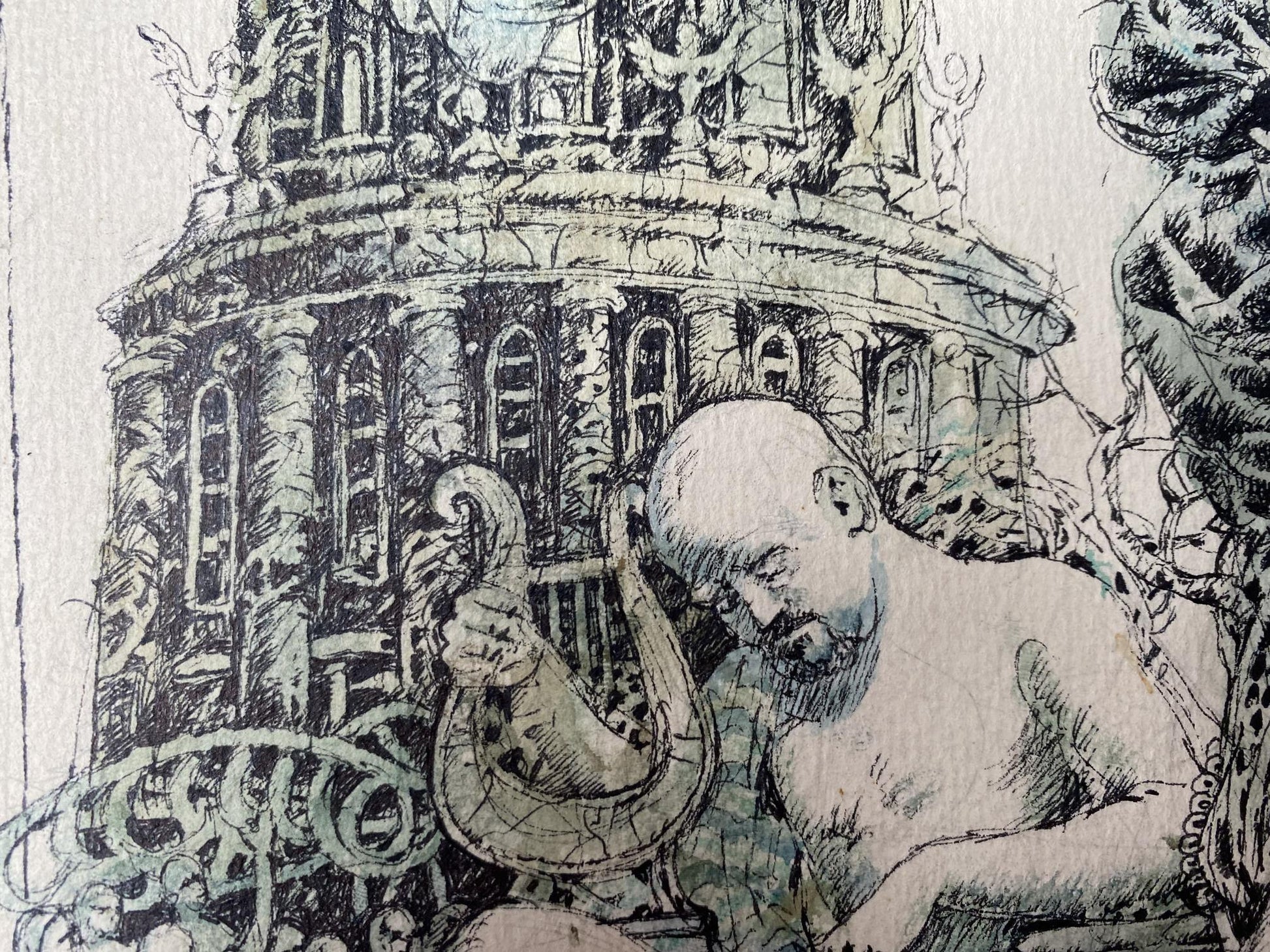 Watercolor, Ink painting Tower II Litvinov Oleg Arkad'yevich