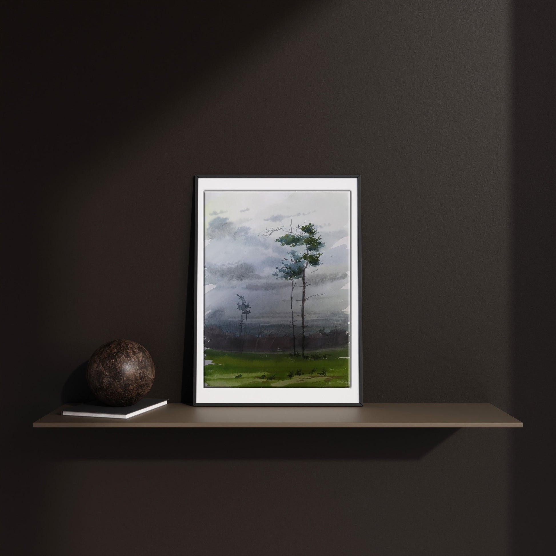 The painting "After the rain" is a beautiful and atmospheric piece that captures the moment after a storm has passed. The green field and tall tree are illuminated by the sun, with the wind blowing through the leaves. The dark sky is slowly clearing, and the colors are incredibly vivid. It's a stunning scene that will draw you in and make you feel as if you're right there. This is a truly captivating painting that would make an exquisite addition to any home.