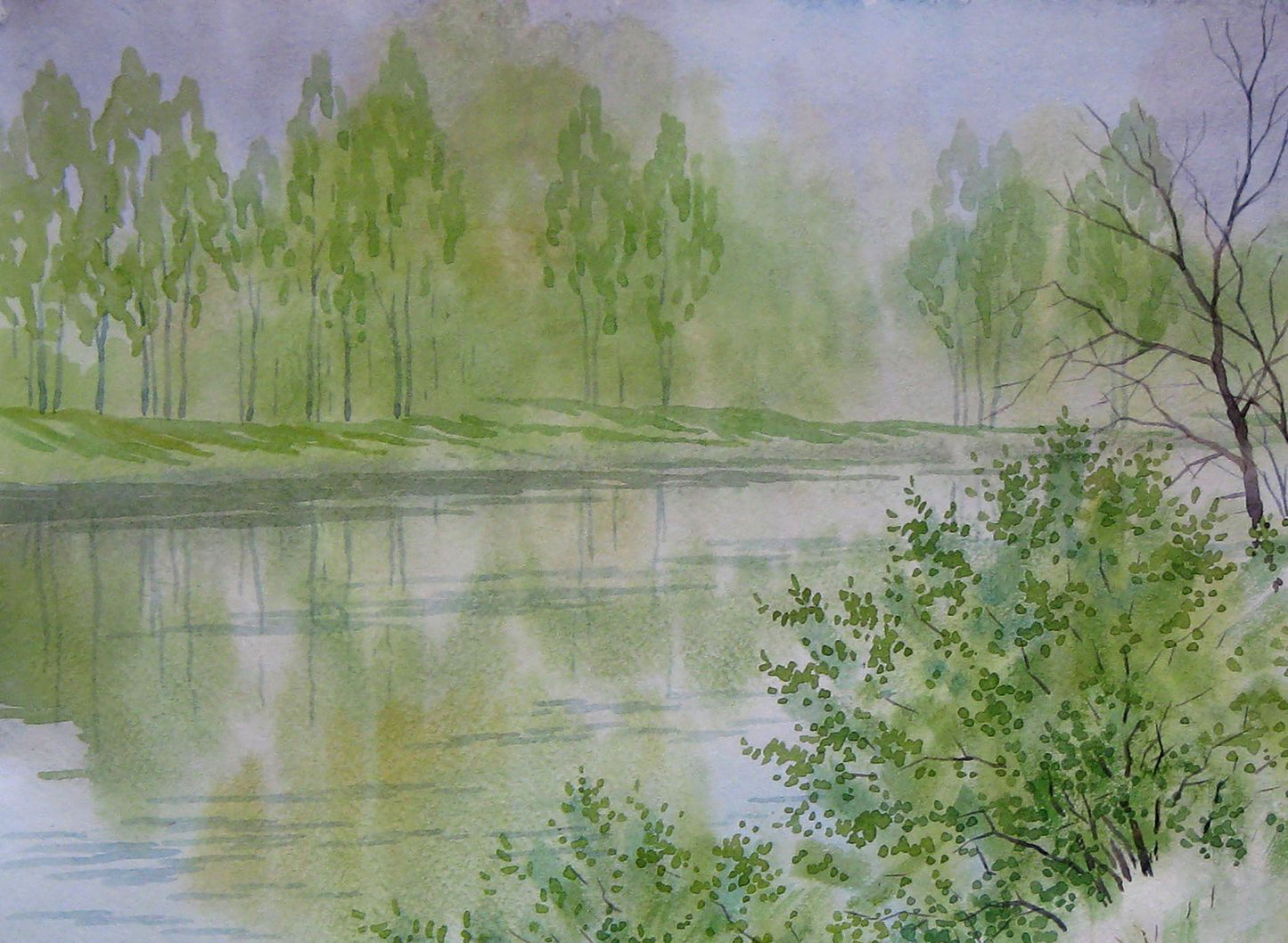 Savenets’ use of gentle hues and light brushwork emphasizes the serene quality of the landscape. The mix of vibrant foliage with bare branches symbolizes the transition between winter and full spring, a period marked by renewal and growth. The reflection of the trees in the water adds a dreamlike quality, inviting the viewer into a peaceful, almost meditative scene. If you're looking to Buy a Watercolor painting that captures the essence of spring's quiet transformation, April Day is a perfect choice. As with Other works by Savenets Valery, this piece evokes a deep appreciation for nature’s subtle beauty.