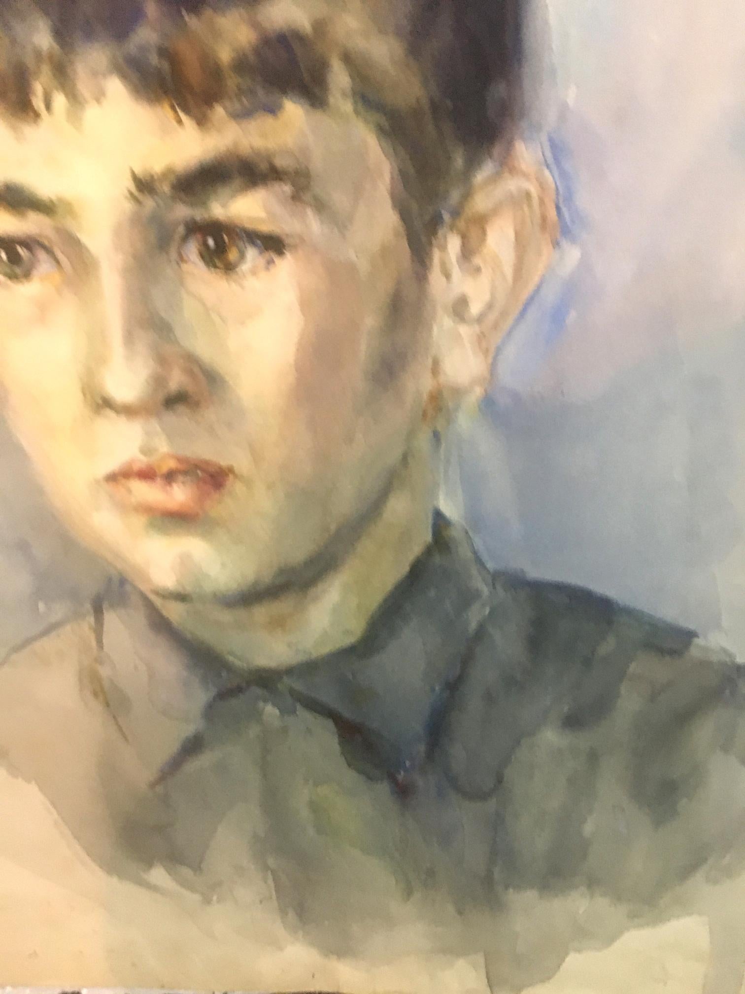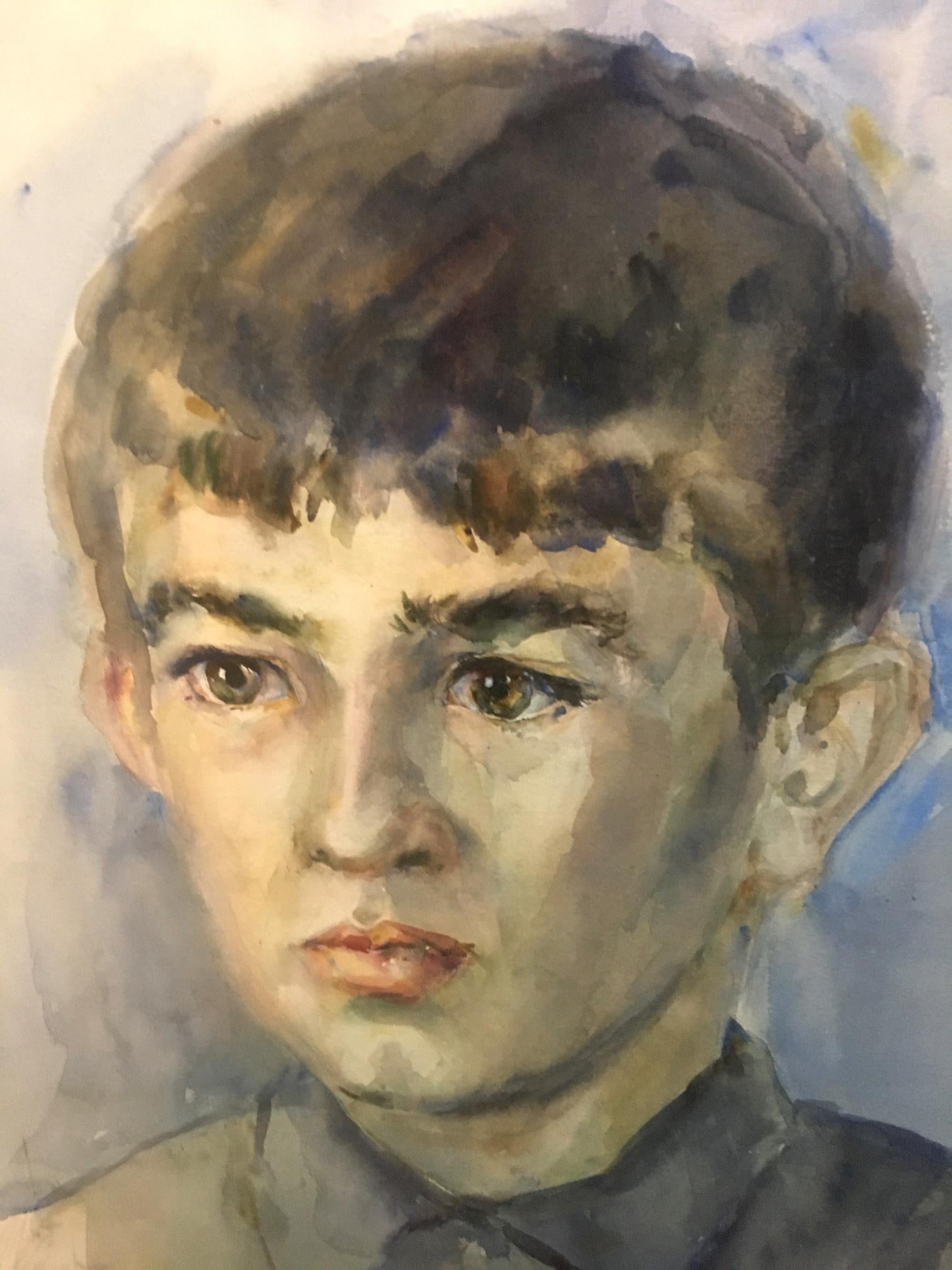 Watercolor painting Boy in a green shirt Irina Palazhchenko