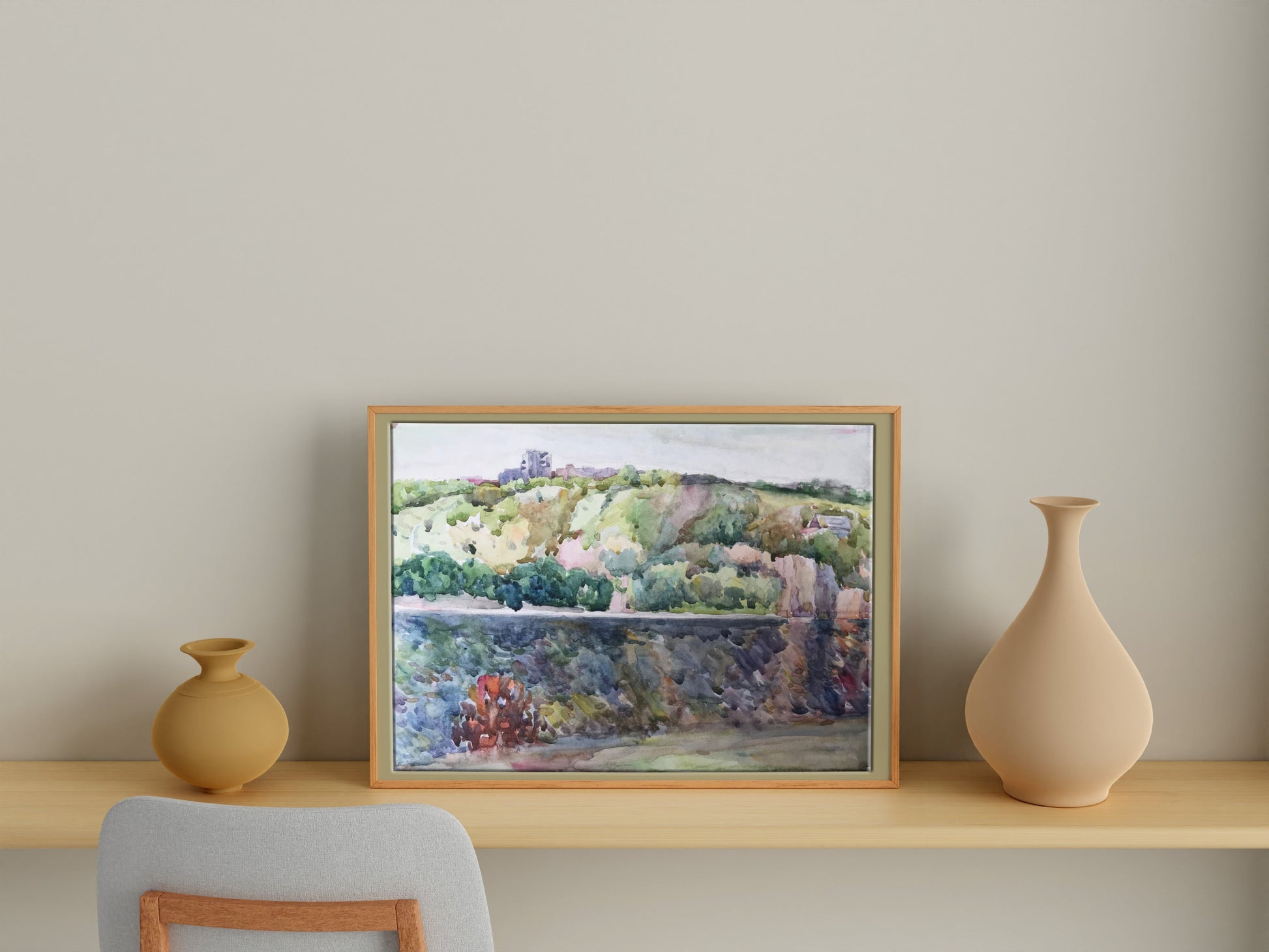 Introducing "City view", an painting that captures the beauty and mystery of the city. This painting features a field, road, and green hill, with trees and a city on a hill in the distance. The colors are rich and vibrant, and the brushwork is highly textured, giving the painting an inviting and realistic feel. The city looks peaceful and quiet, making this painting perfect for anyone who wants to escape the hustle and bustle of everyday life. "City view" is sure to add a touch of elegance to any home or office, and it makes a great gift for anyone who loves art. Order yours today!