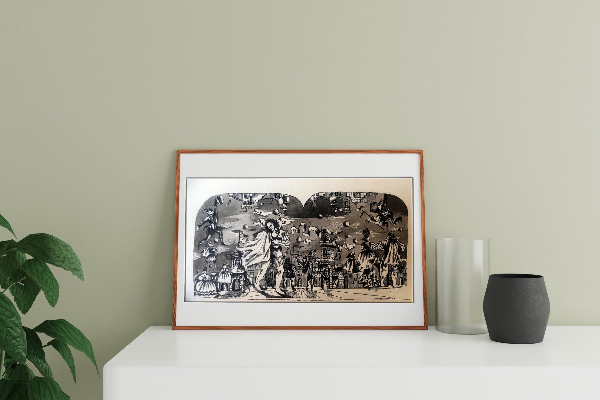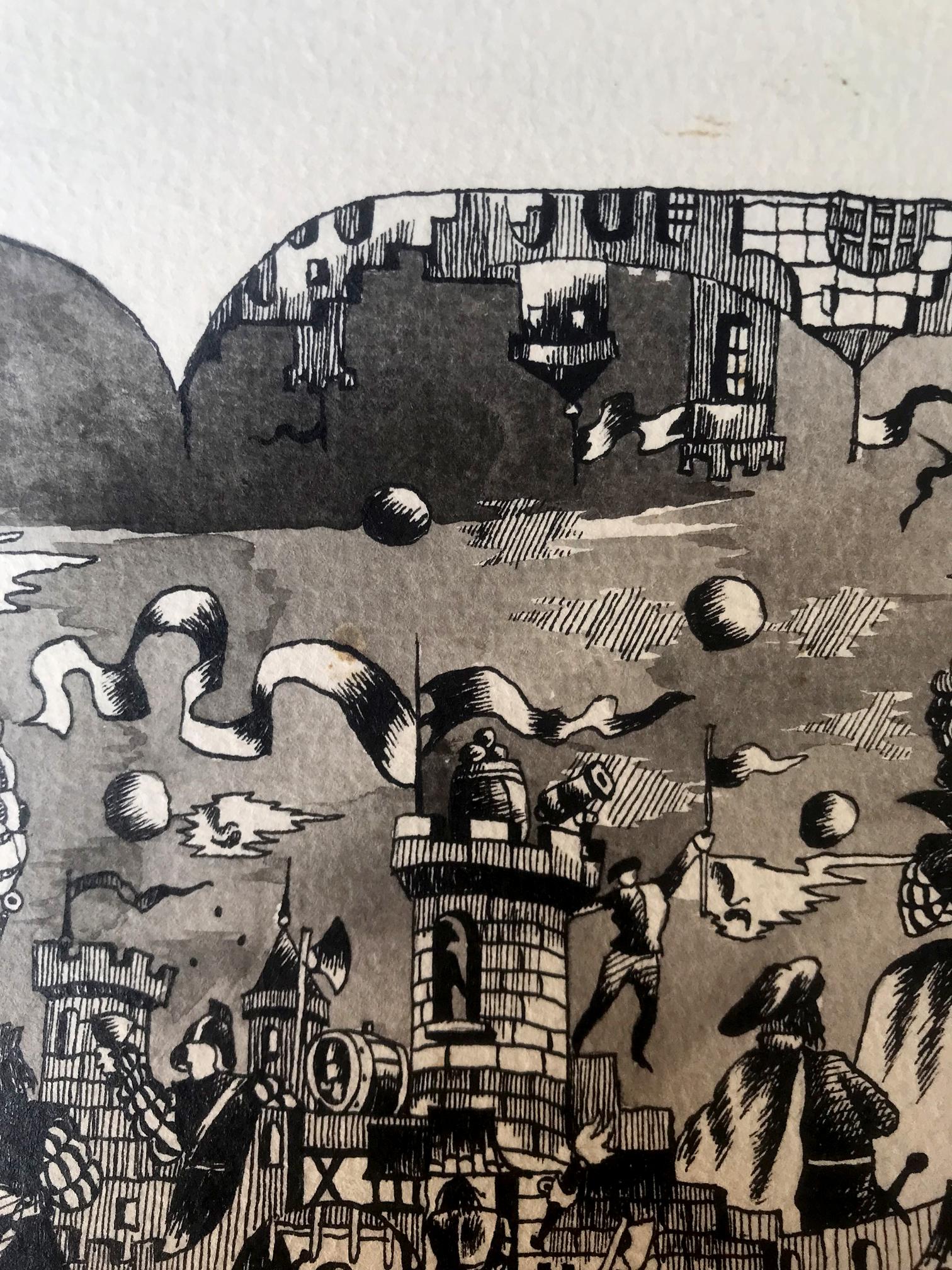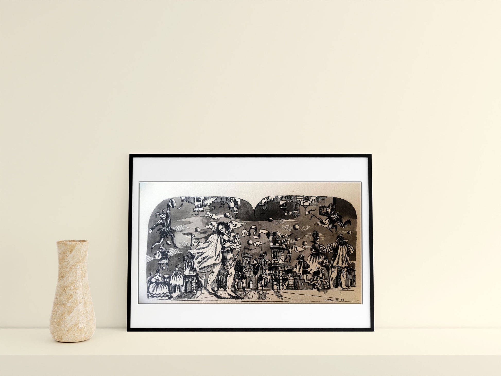 "Fair in the Castle" is a captivating oil painting that captures the essence of a lively fair set against the backdrop of a majestic castle. Created in the impressionistic style, the artist skillfully employs a palette dominated by black and white tones, creating a distinct and intriguing atmosphere. The focal point of the painting lies in the foreground, where the castle stands proudly amidst the festivities. The artist's brushstrokes beautifully depict the architectural details of the castle, showcasing its imposing structure and intricate features. The artist's use of black and white hues adds a sense of mystery and grandeur to the castle, lending it an ethereal quality that draws the viewer's attention. As the eye moves beyond the castle, a bustling fair comes into view. The artist's impressionistic technique comes alive in this part of the painting, as vivid and energetic brushstrokes capture the lively atmosphere of the event. Stalls, tents, and vibrant characters dot the landscape, each rendered with a unique and dynamic flair. The artist's mastery of impressionism is evident in the swift and bold brushwork that evokes a sense of movement and spontaneity, as if capturing a fleeting moment in time. Though predominantly rendered in black and white, the artist employs subtle hints of color to add depth and intrigue to the painting. Perhaps a touch of red on a vendor's cart or a delicate hint of green in the surrounding foliage, these accents punctuate the composition, creating a harmonious balance between the monochromatic palette and the carefully placed splashes of color. "Fair in the Castle" is a mesmerizing portrayal of a vibrant fair set against the backdrop of a majestic castle. Through the artist's impressionistic technique and masterful use of black and white hues, the painting exudes a sense of enchantment, inviting viewers to immerse themselves in the lively atmosphere of the fair and marvel at the timeless beauty of the castle.