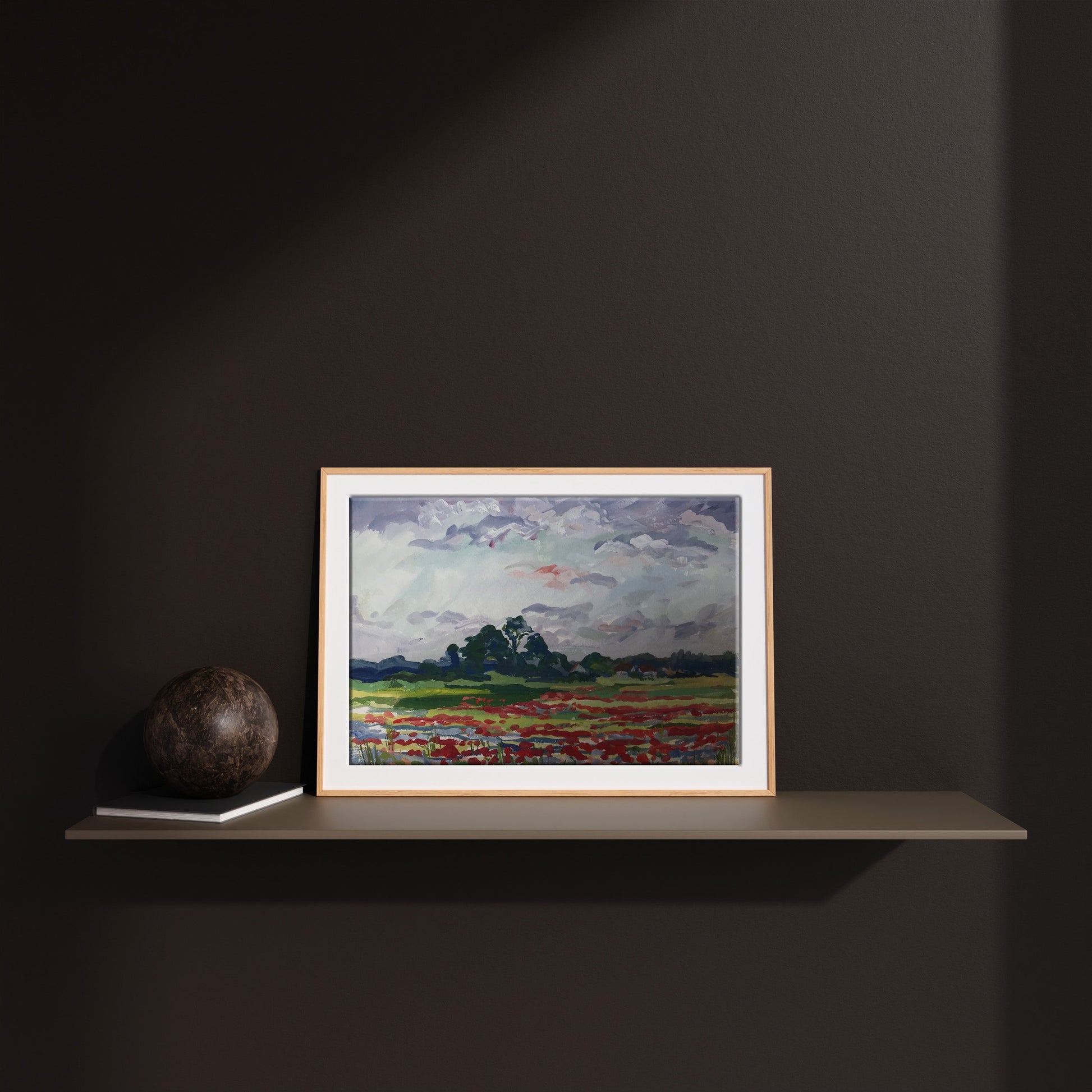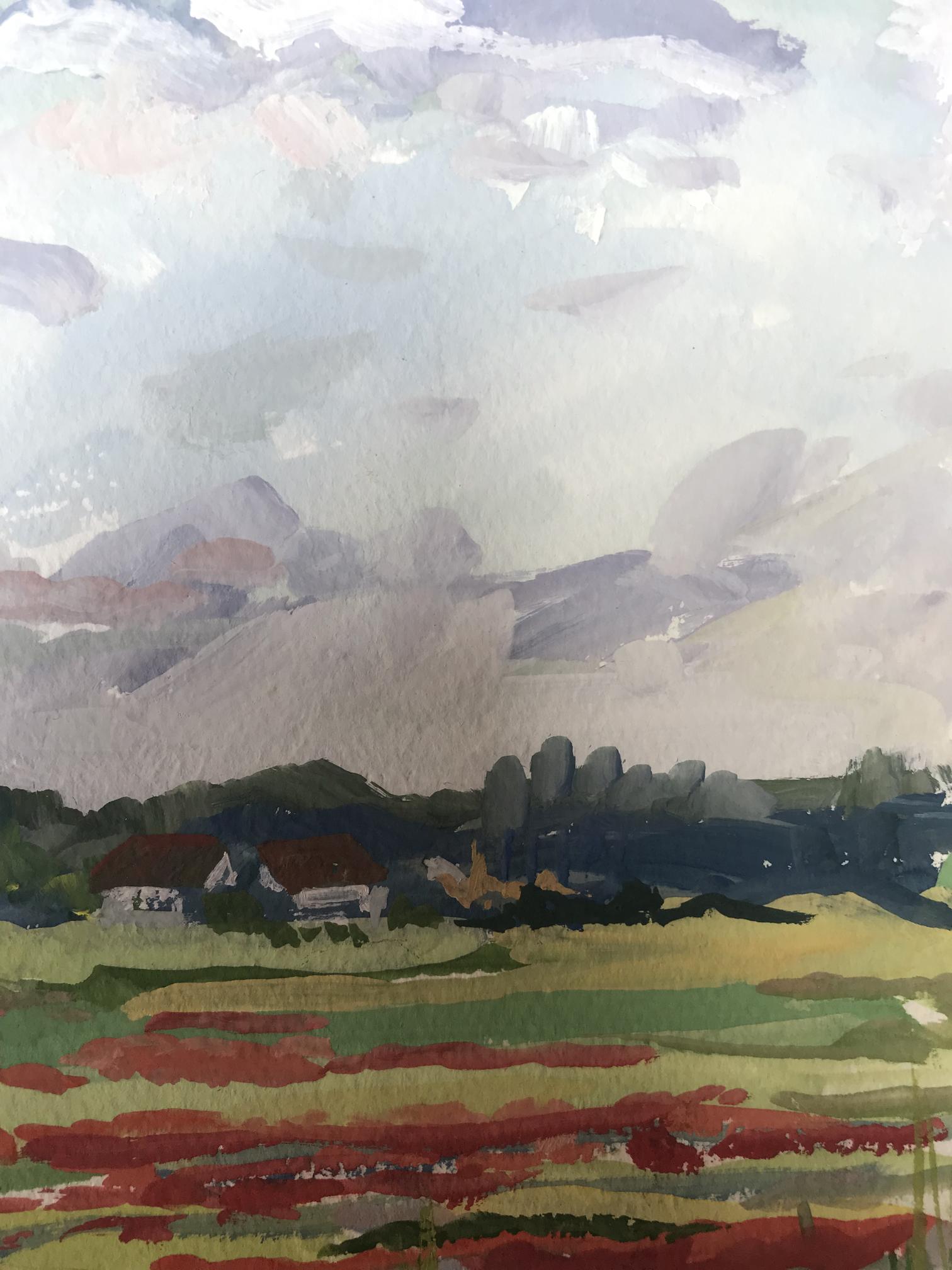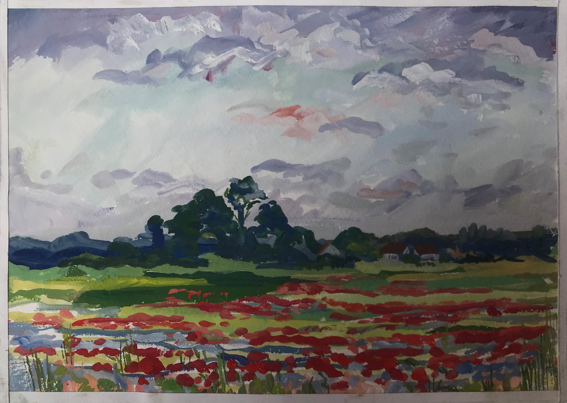 "Flower field" is an painting that captures a beautiful, idyllic scene. A brightly-colored field of flowers stretches out before the viewer, with a village visible in the distance beyond the field. Soft, fluffy clouds drift in a bright blue sky overhead. The painting is full of life andenergy, and its colors are sure to bring a touch of cheer to any room.