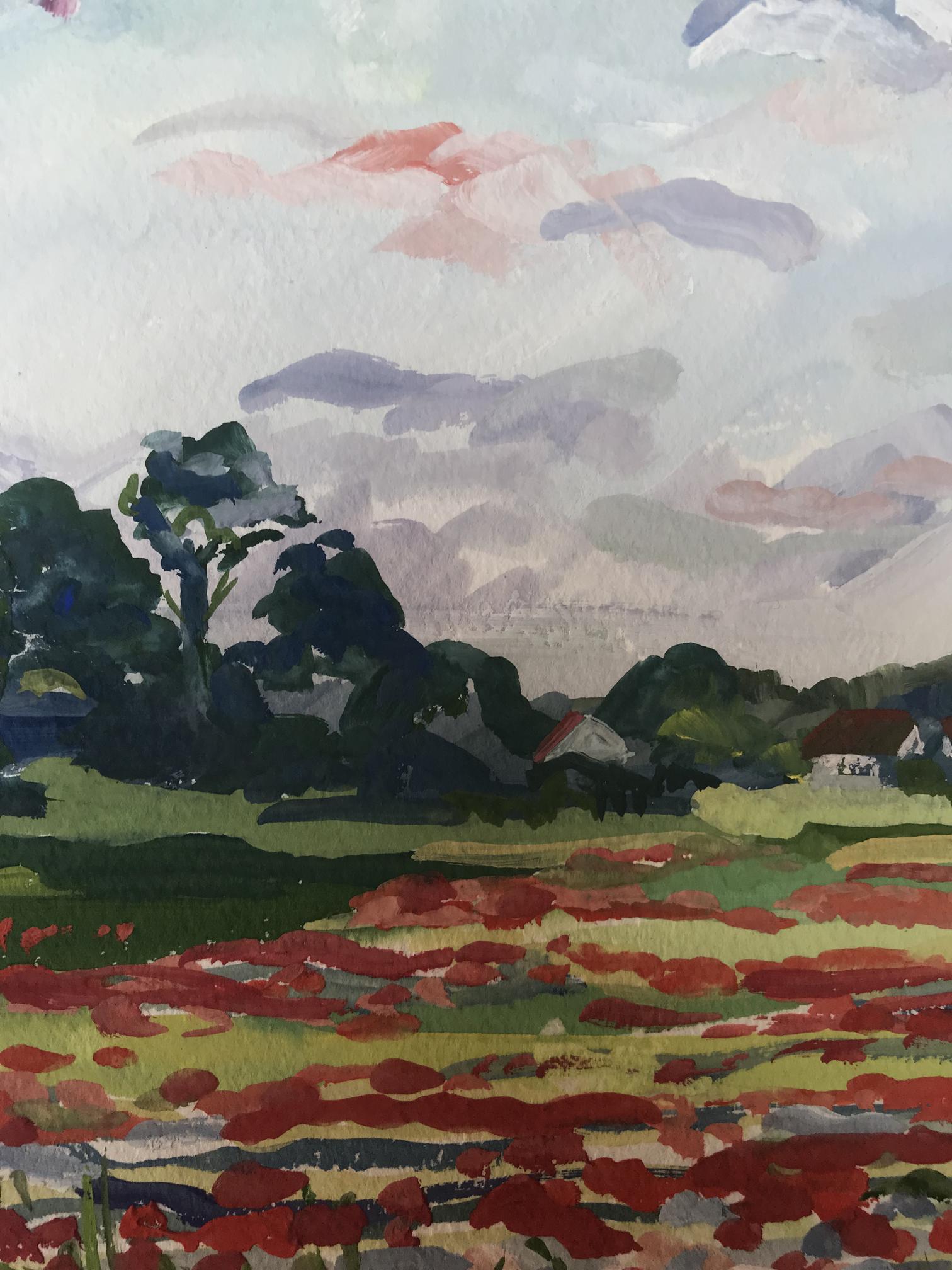 Watercolor painting Flower field Unknown artist