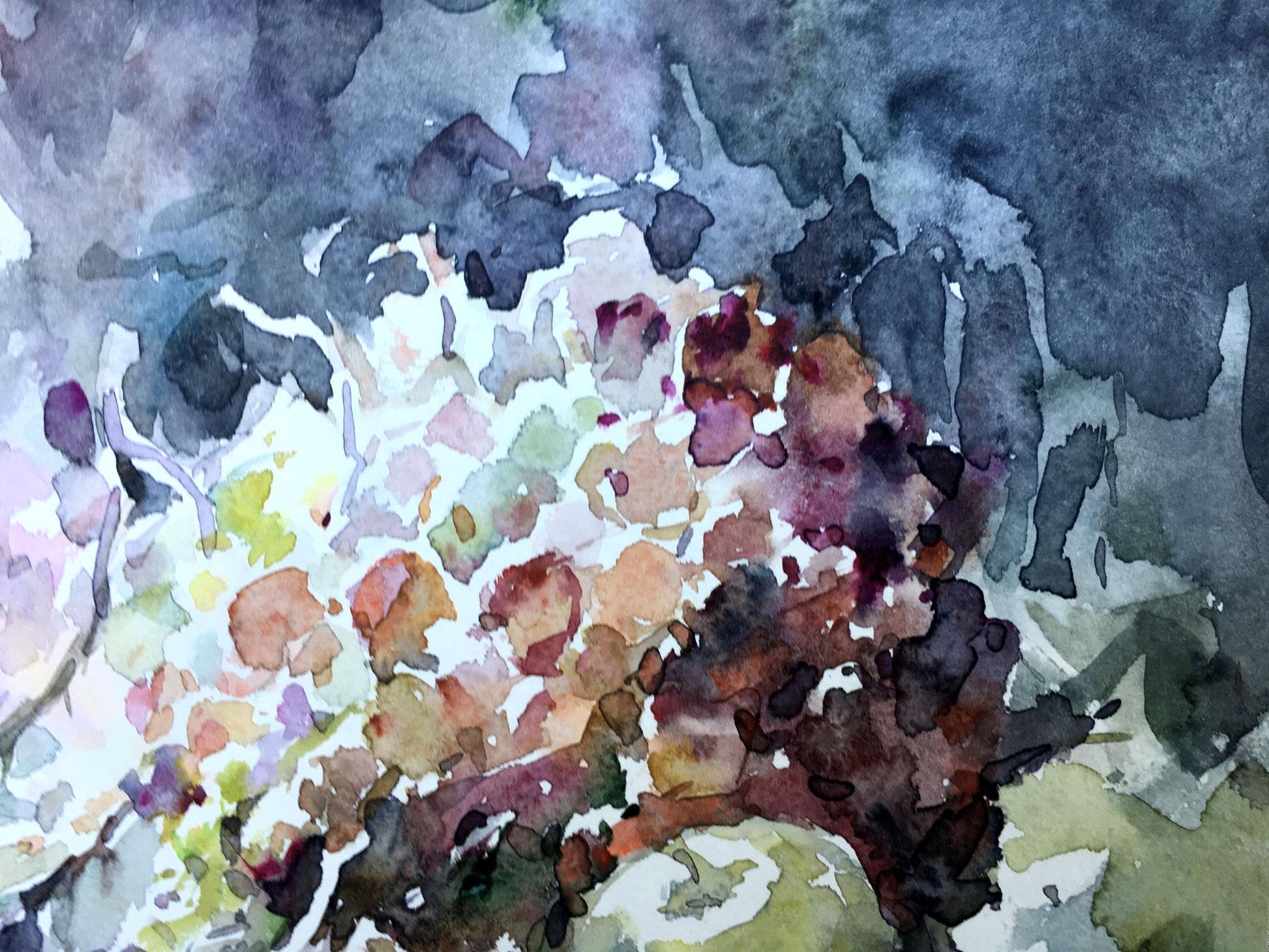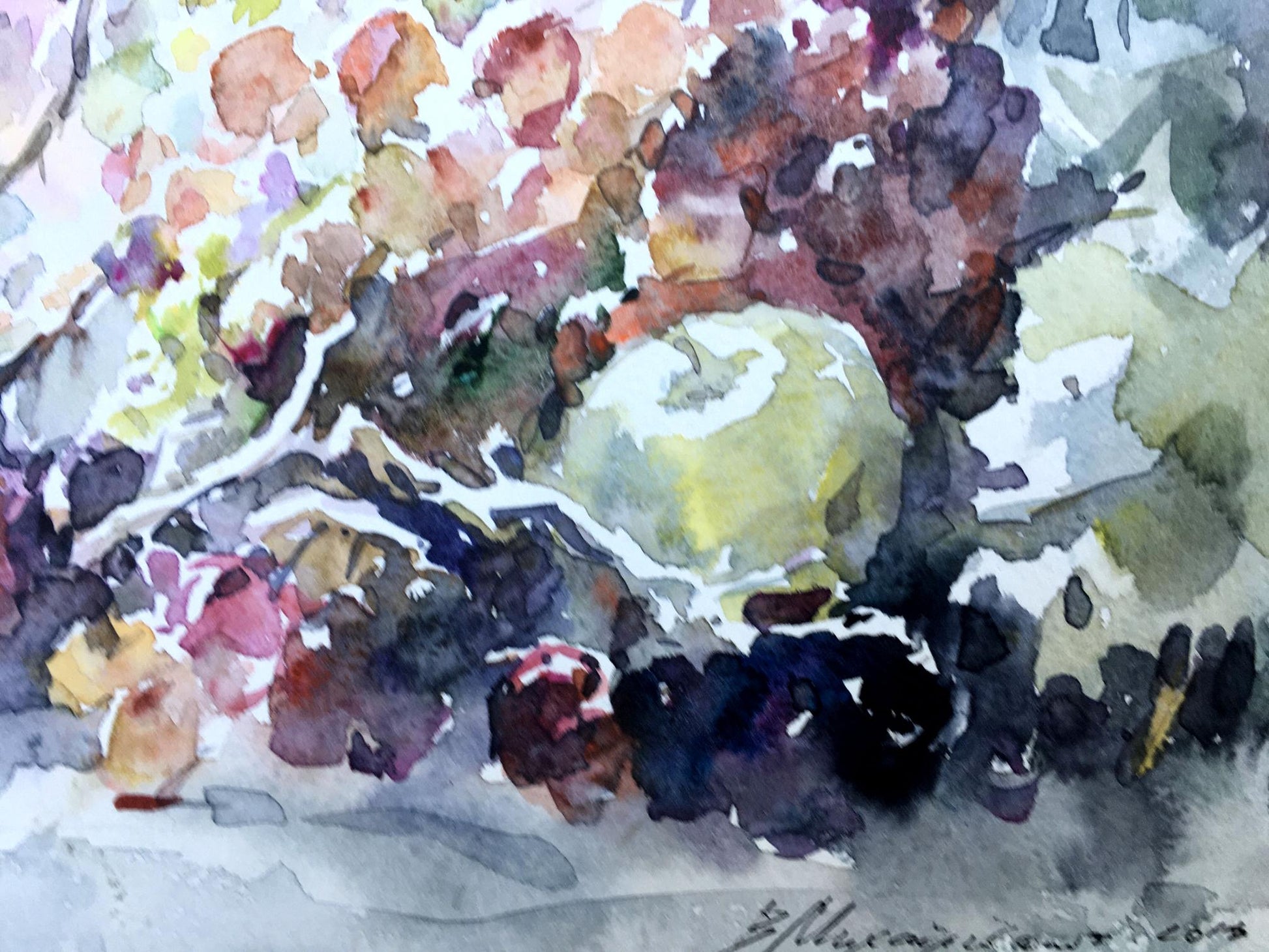 Watercolor painting Grapes on the table Viktor Mikhailichenko