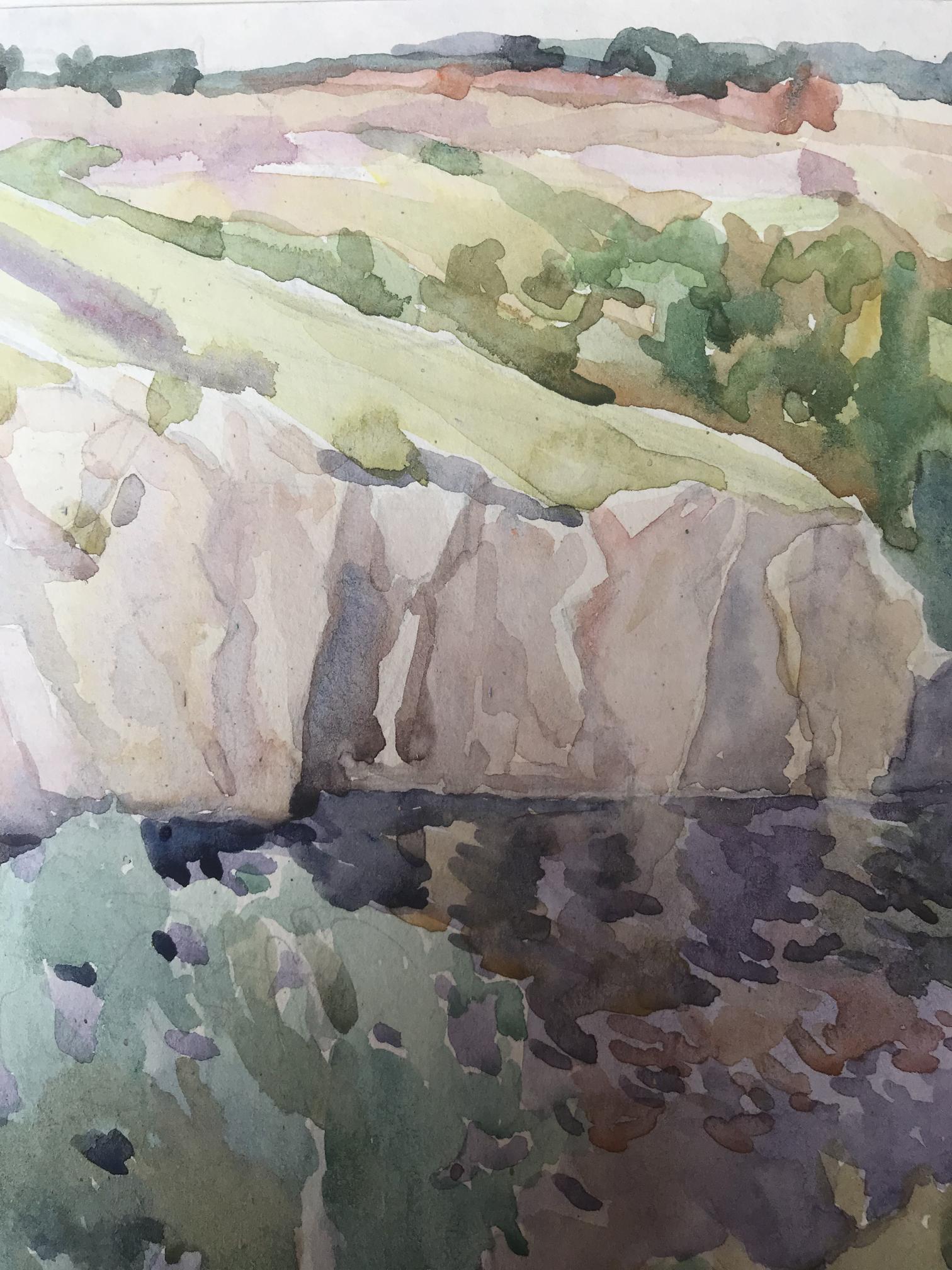 The artist has captures the light and colors of the summer day perfectly, making this painting a perfect addition to any home or office. The muted tones of the sky and water are offset by the bright greens of the trees and meadows, creating a pleasing and calming effect.