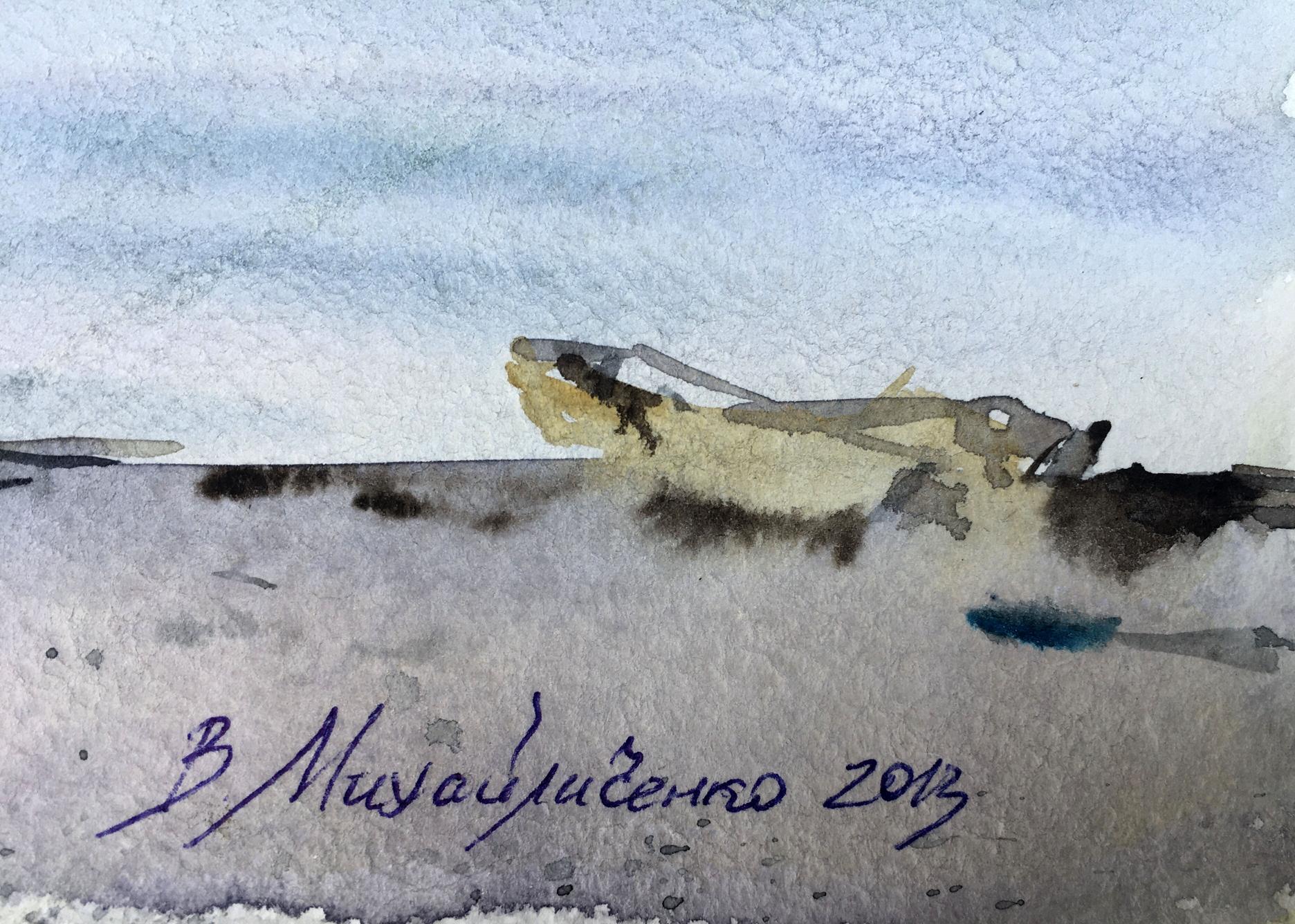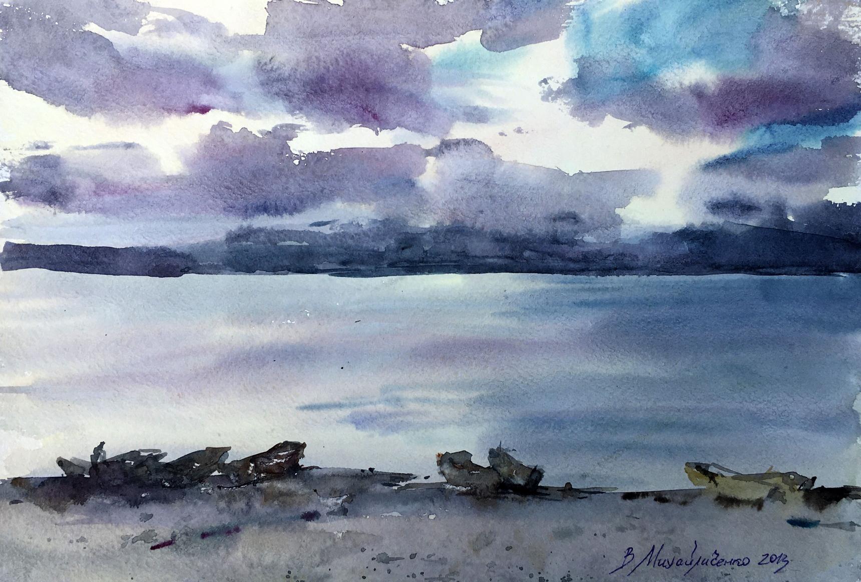 Watercolor painting Lonely shore Viktor Mikhailichenko