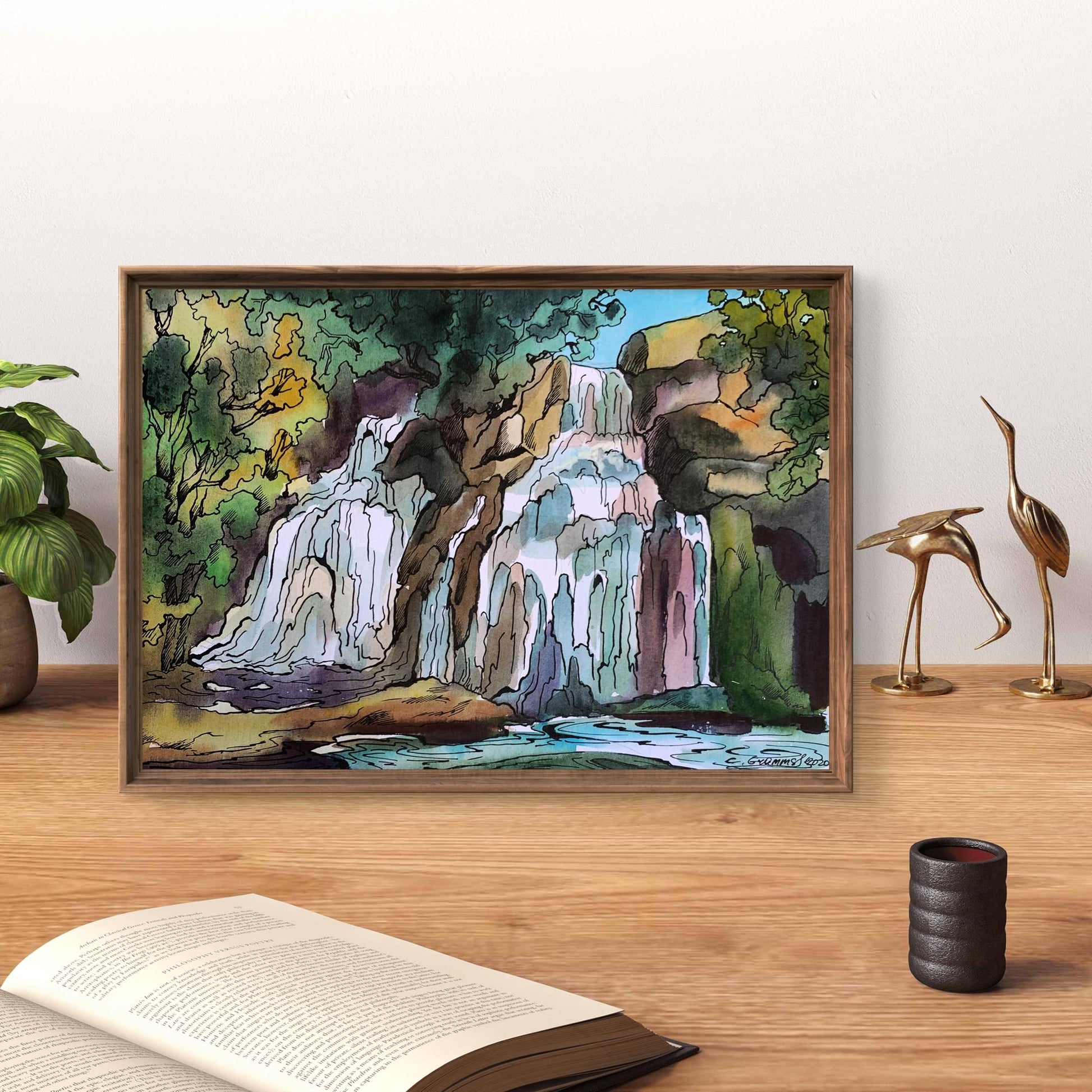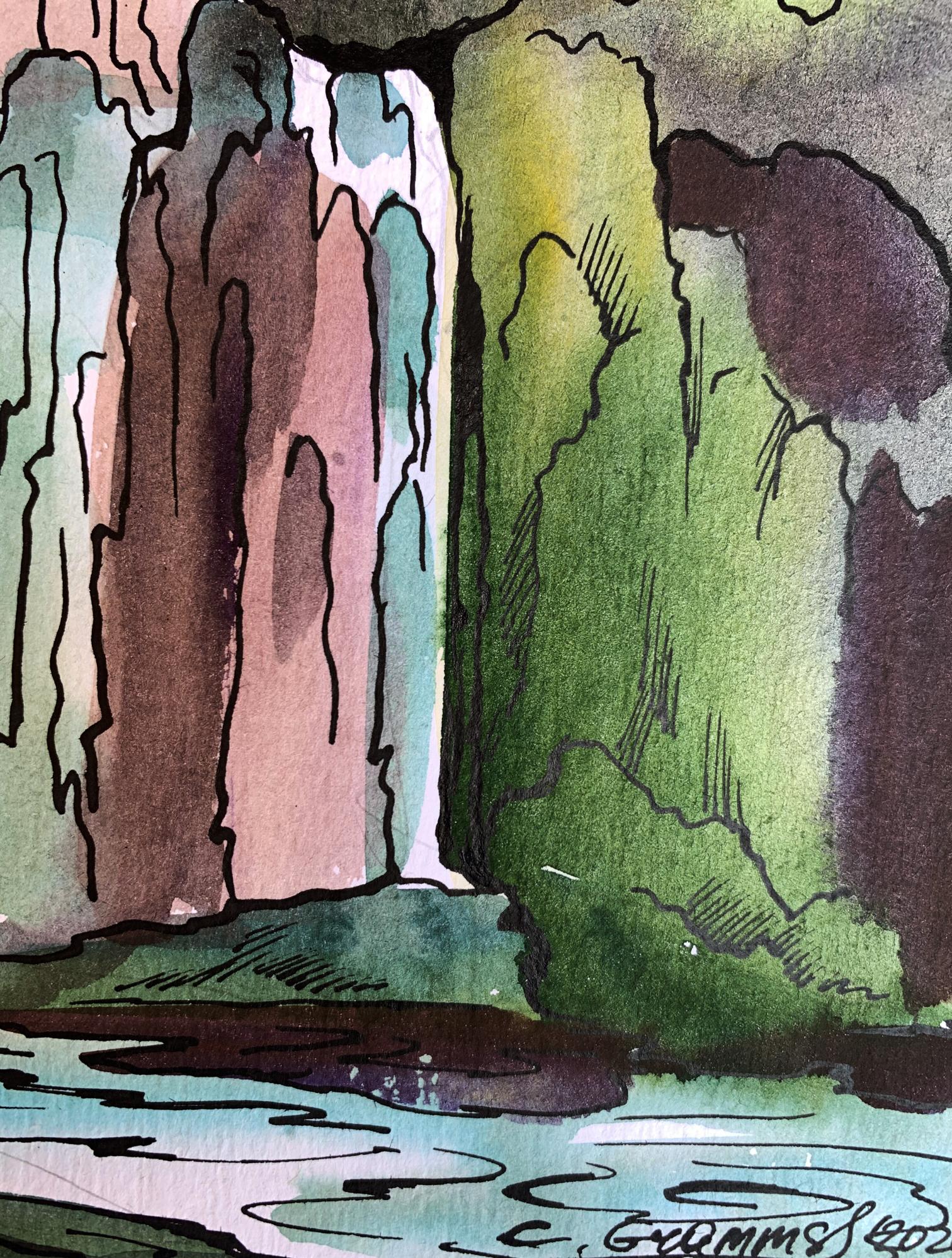 Watercolor painting Mountain waterfall Svetlana Gramm