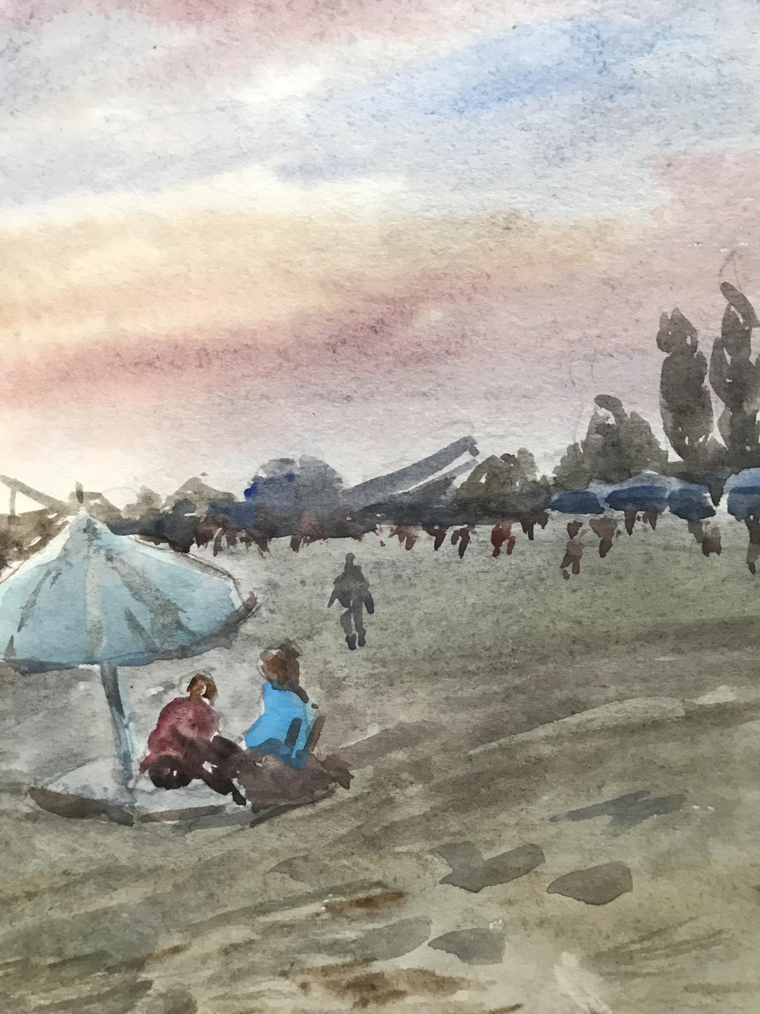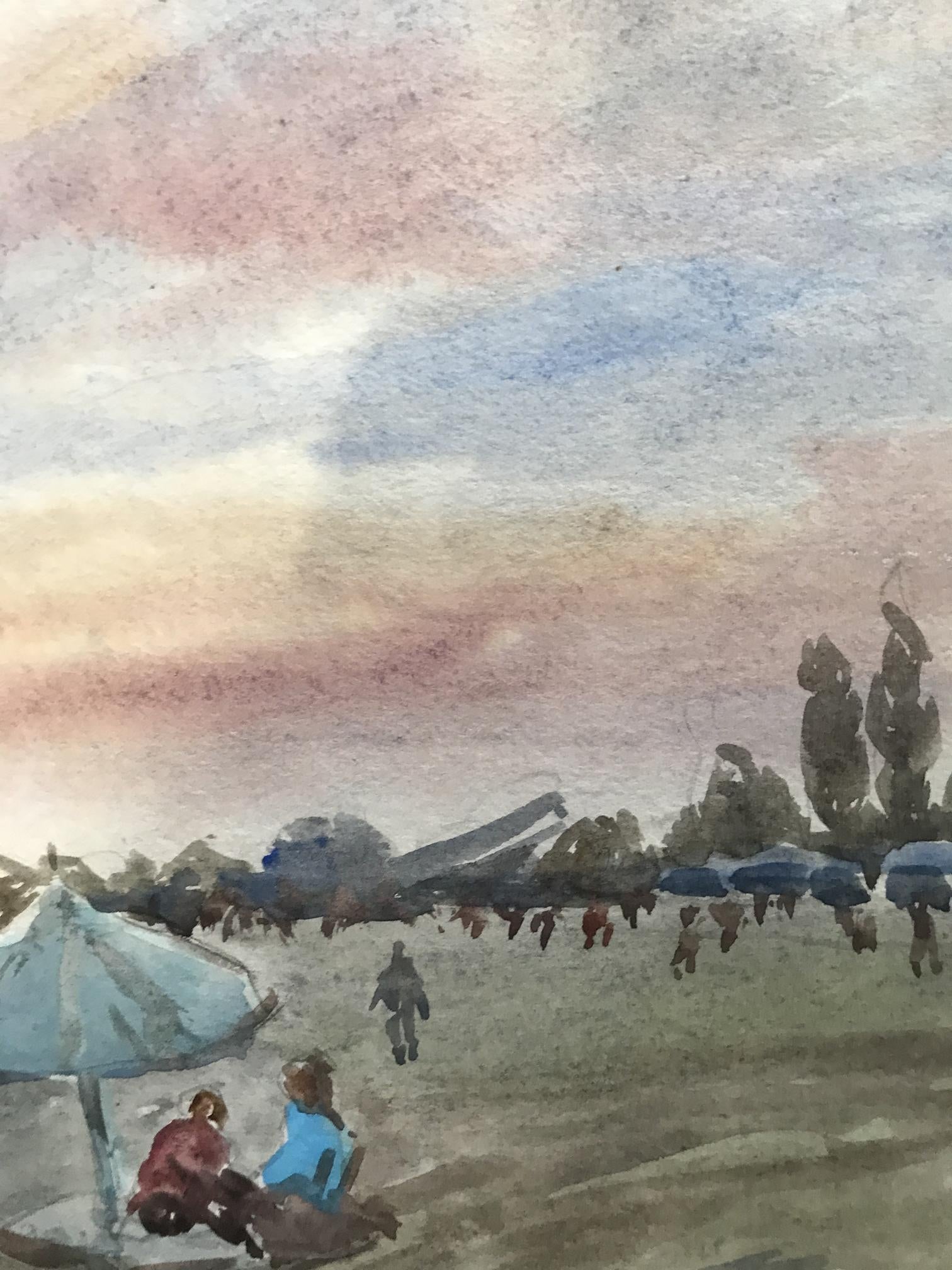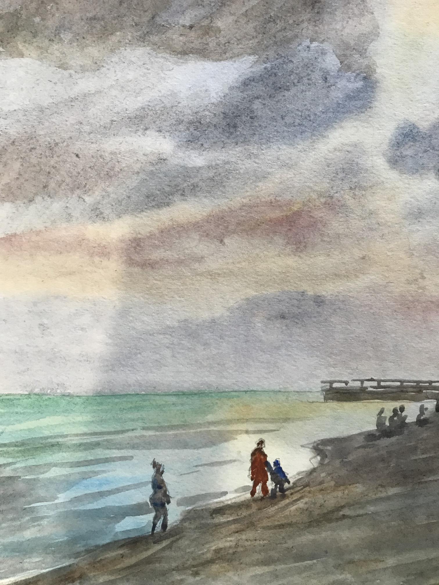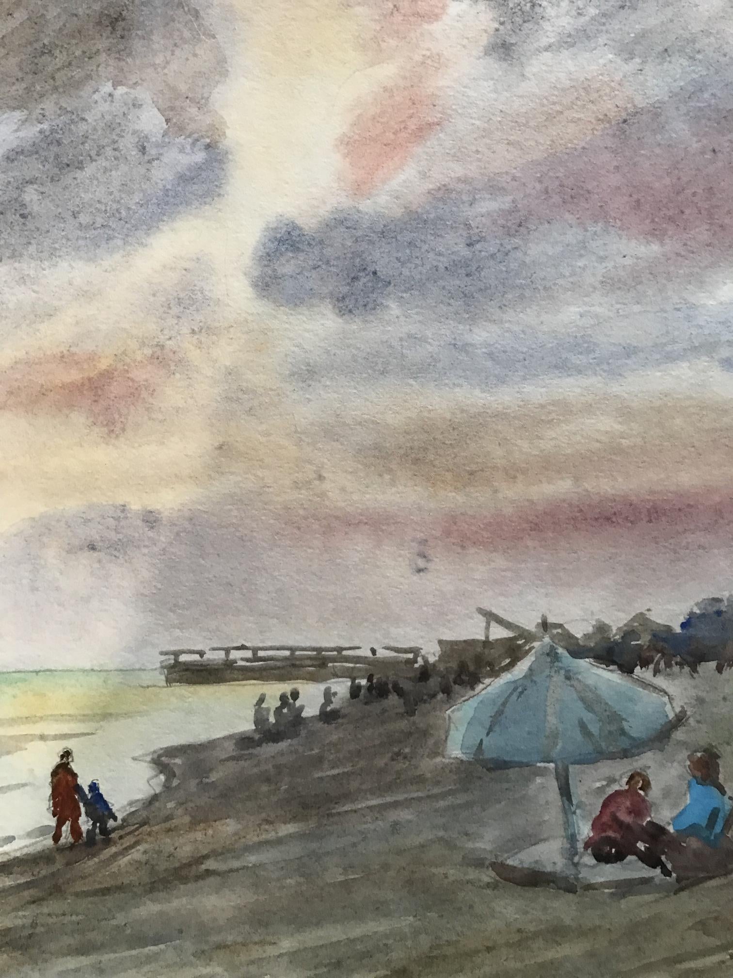 Introducing "On the sea", our latest painting that is sure to enchant anyone who beholds it. The stirring image of the seashore, with its wide beach and people enjoying the sunset, is sure to instill a sense of peace and wonder.