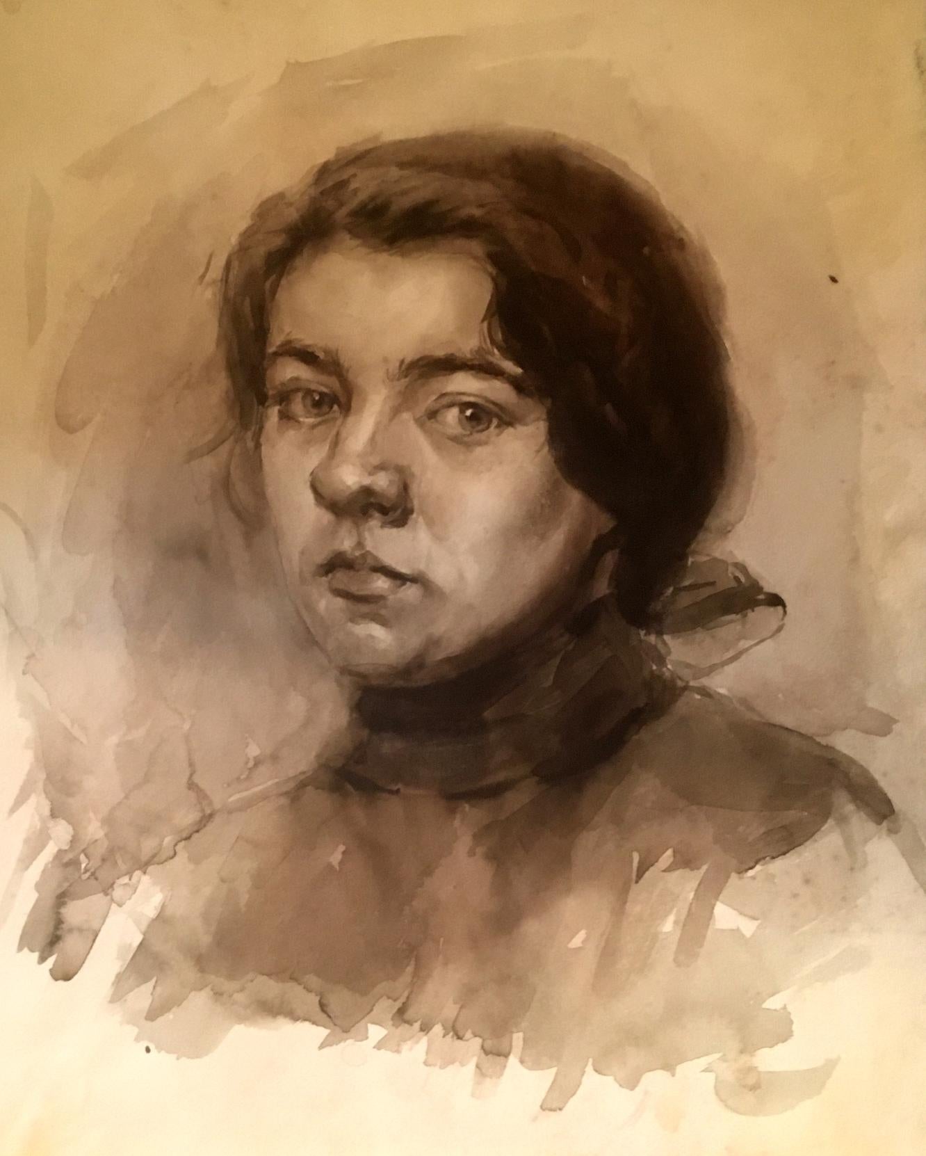 Watercolor painting Pensive woman Irina Palazhchenko