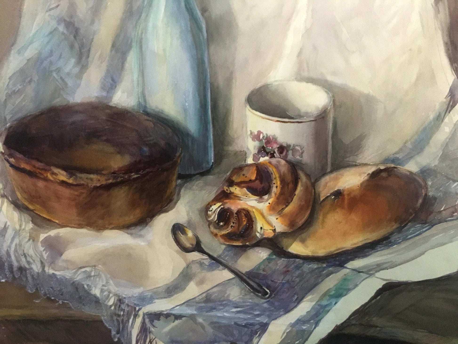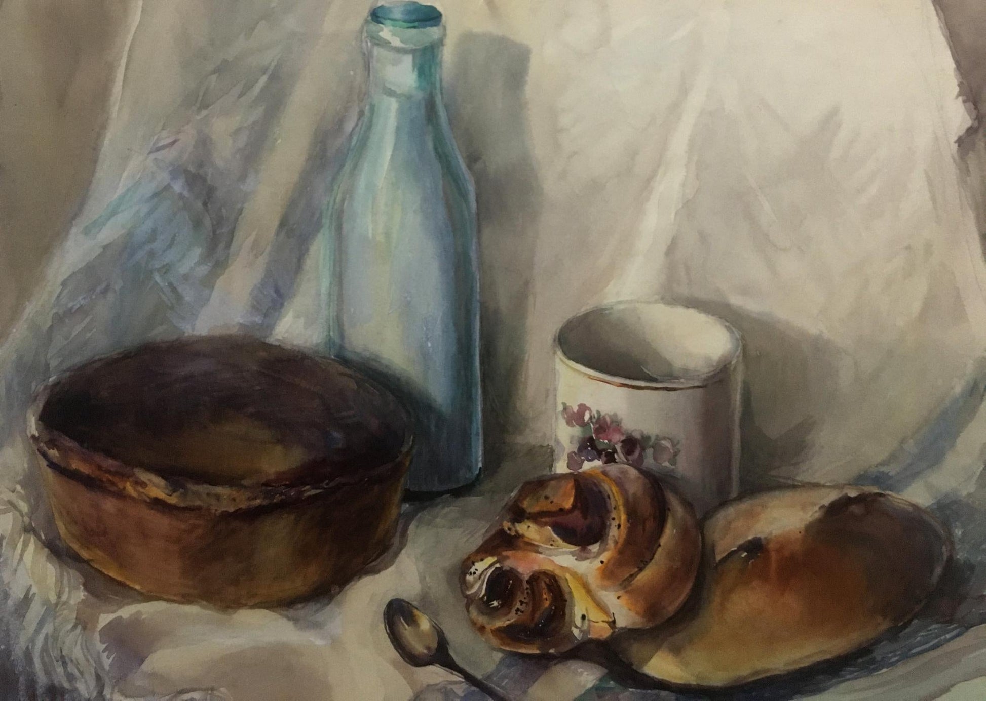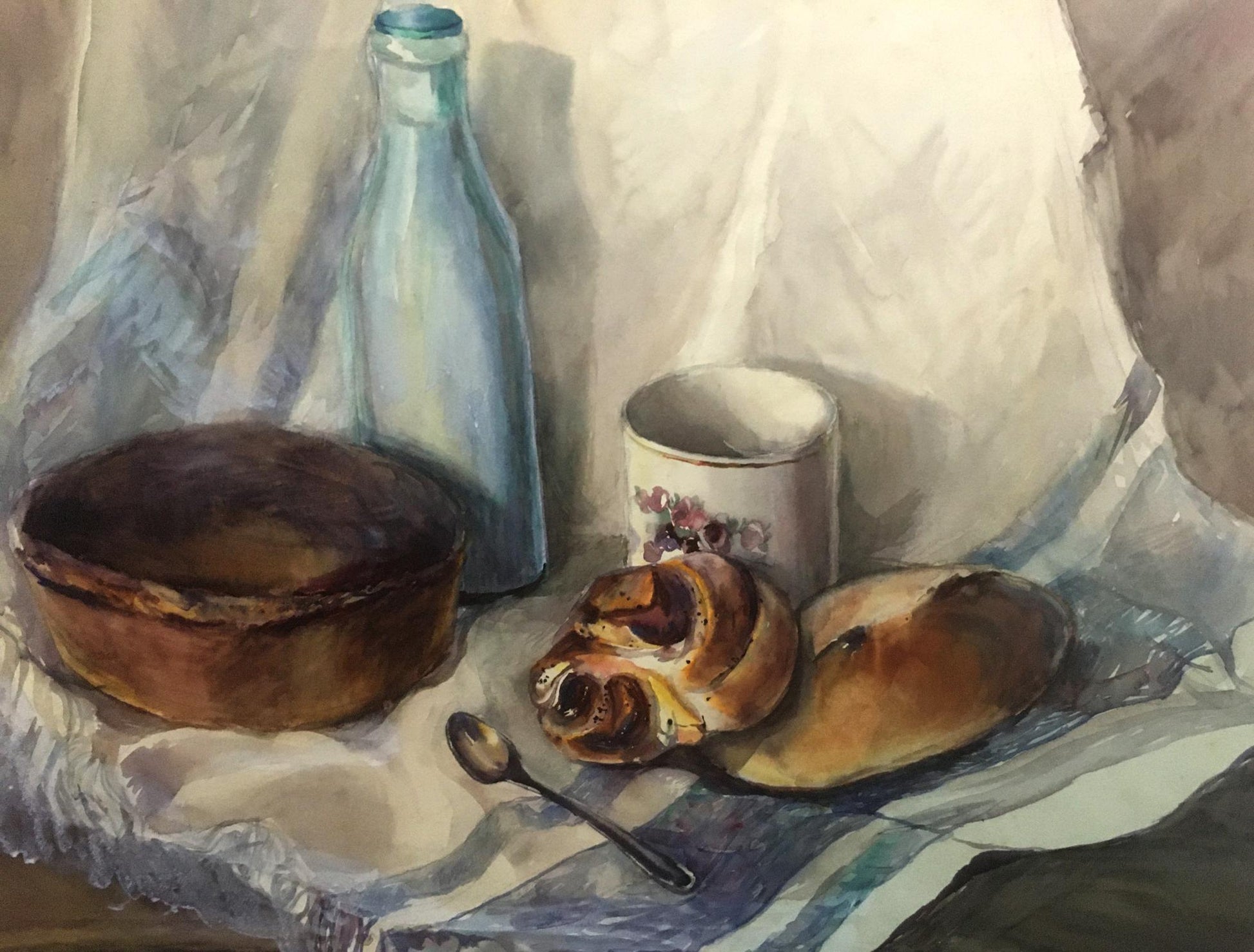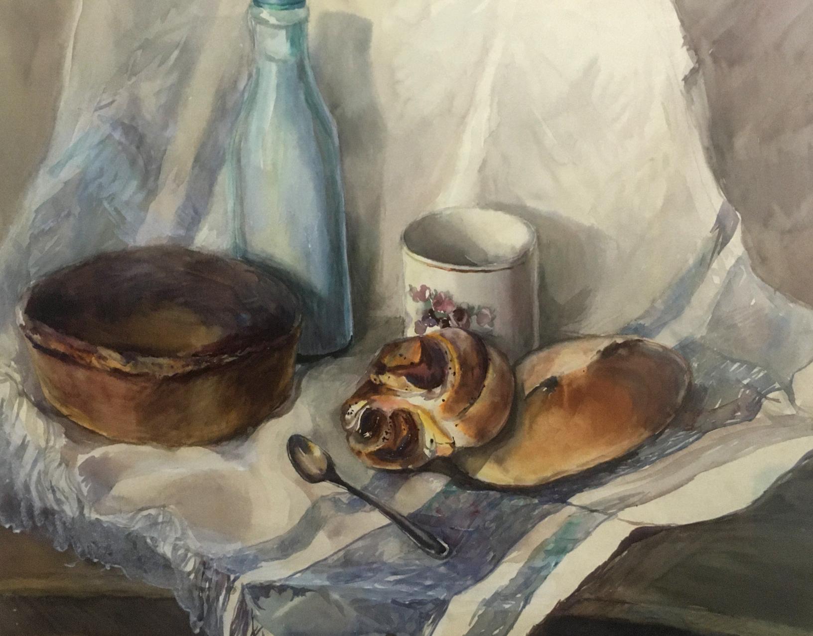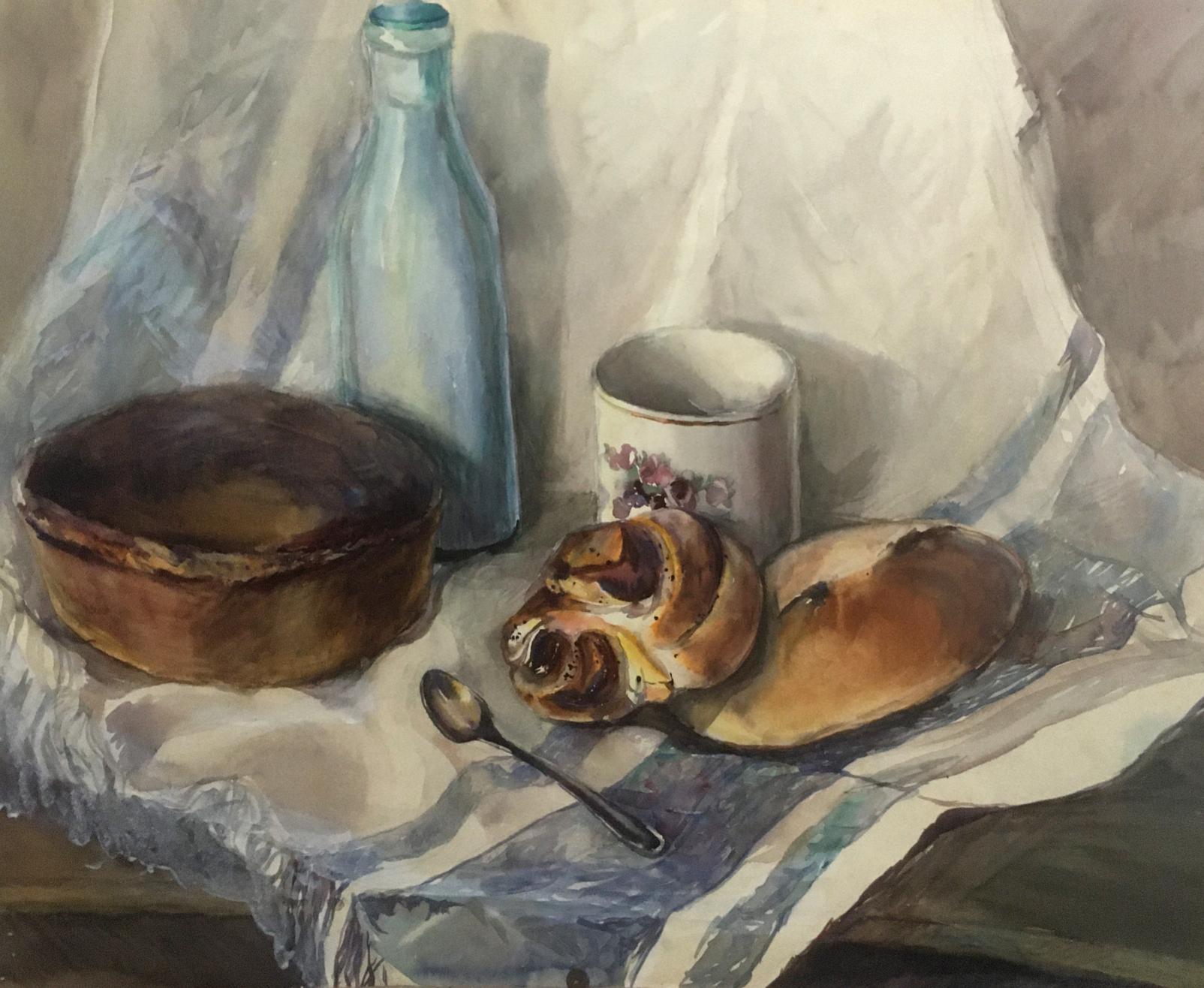 Watercolor painting Pies and milk Irina Palazhchenko
