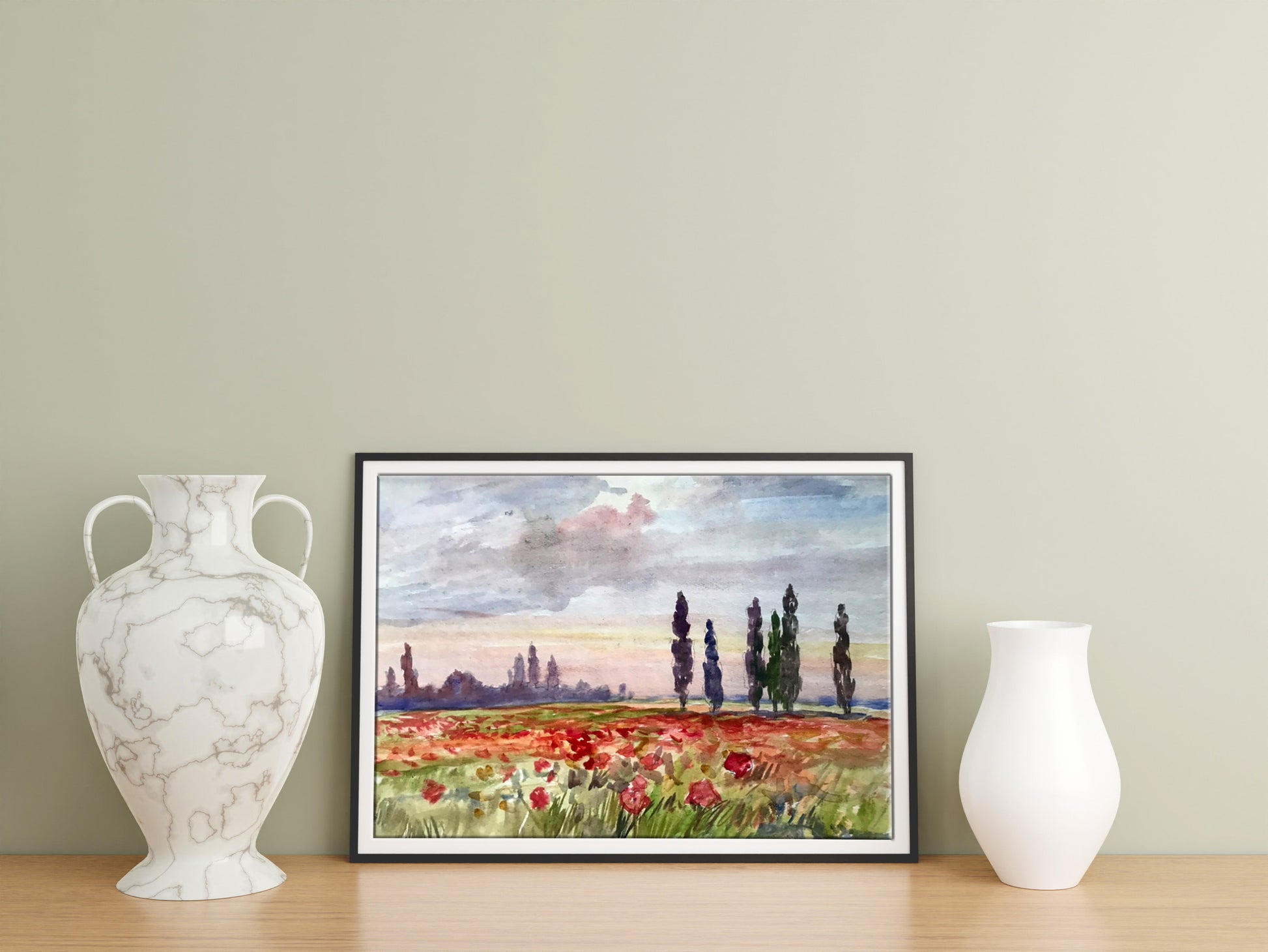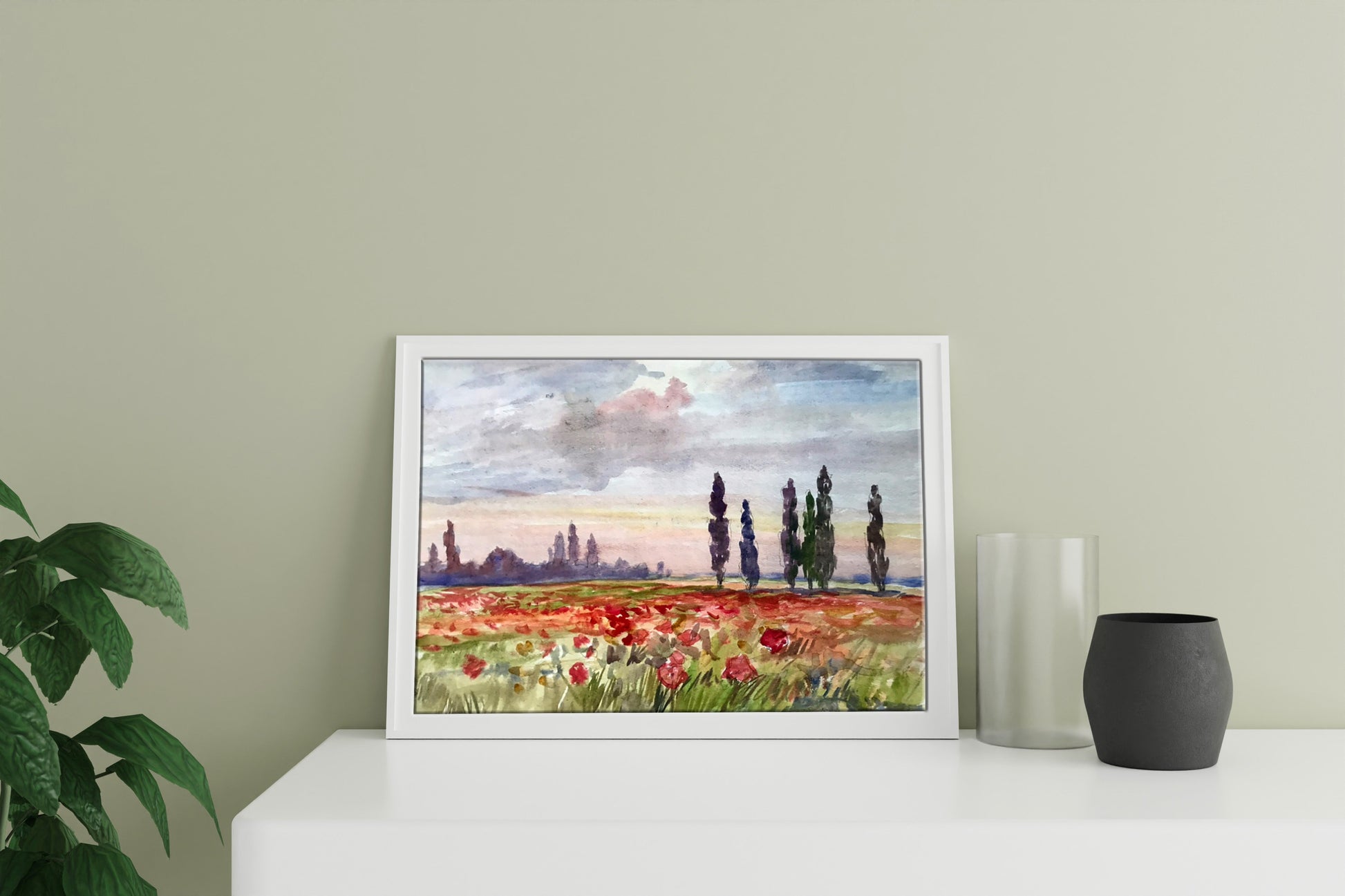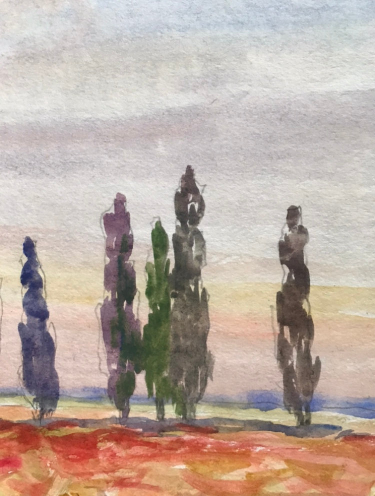 Watercolor painting Poppy field Unknown artist