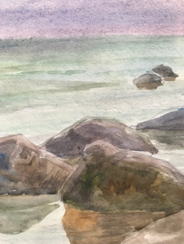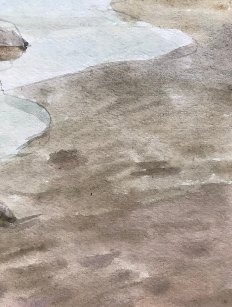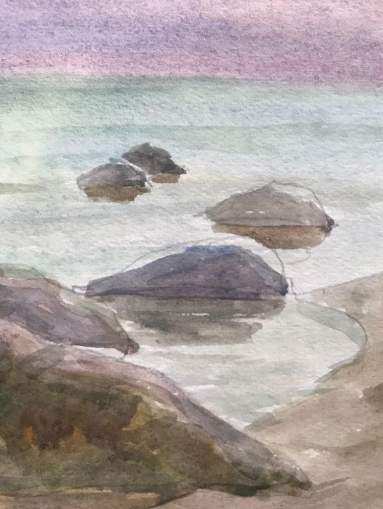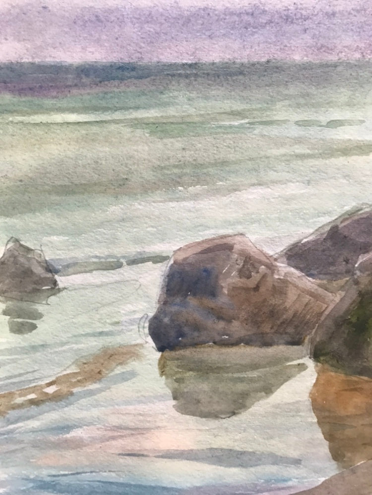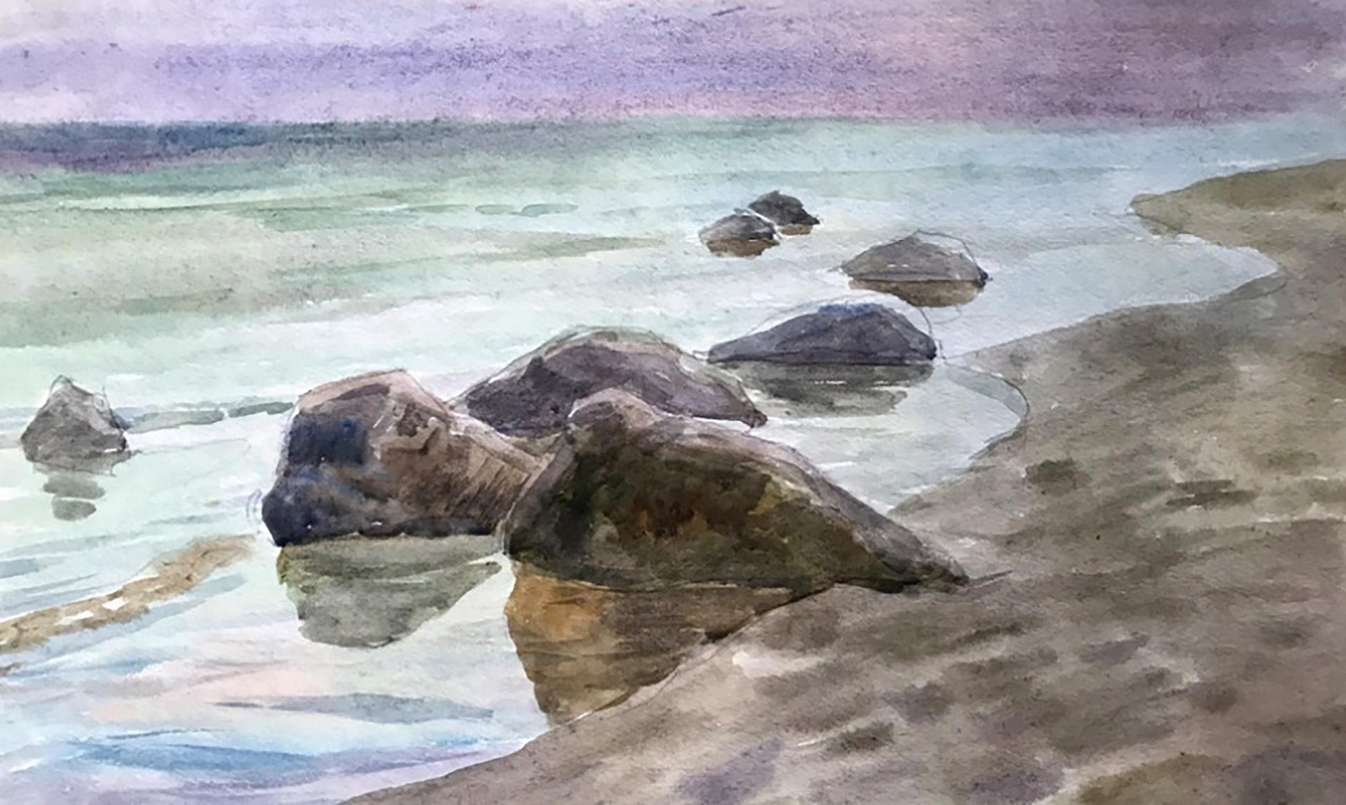 This beautiful painting captures the serenity of a sandy shoreline. The muted colors create a sense of calm, while the sun-dappled stones add a bit of texture and interest. The scene is brought to life with meticulous brushstrokes that give the painting a realistic look. It's the perfect way to bring a bit of the outdoors inside your home.