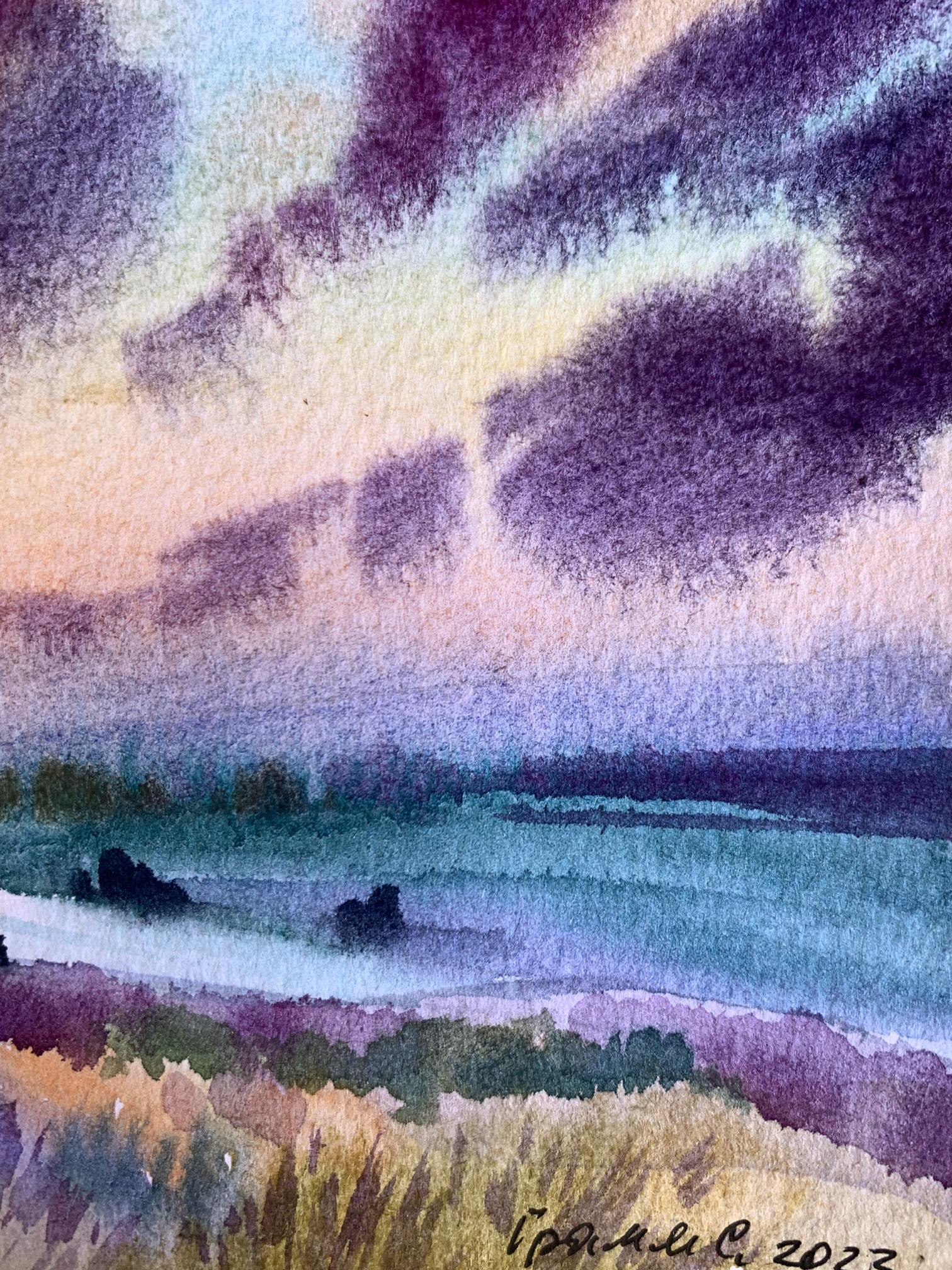 Watercolor painting Shore is covered with clouds Svetlana Gramm