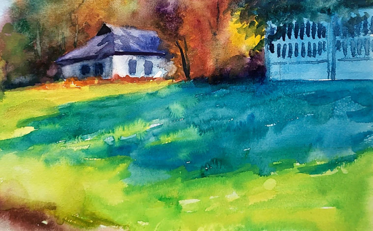 This watercolor painting is not merely a depiction of an autumn scene; it is an invitation to embrace the peace and nostalgia of the season. Through the masterful use of light, color, and composition, "Sunny Autumn" offers a sense of calm and the comforting beauty of nature in transition, making it a perfect piece for those seeking to enhance their homes with the unique charm of pastoral life.