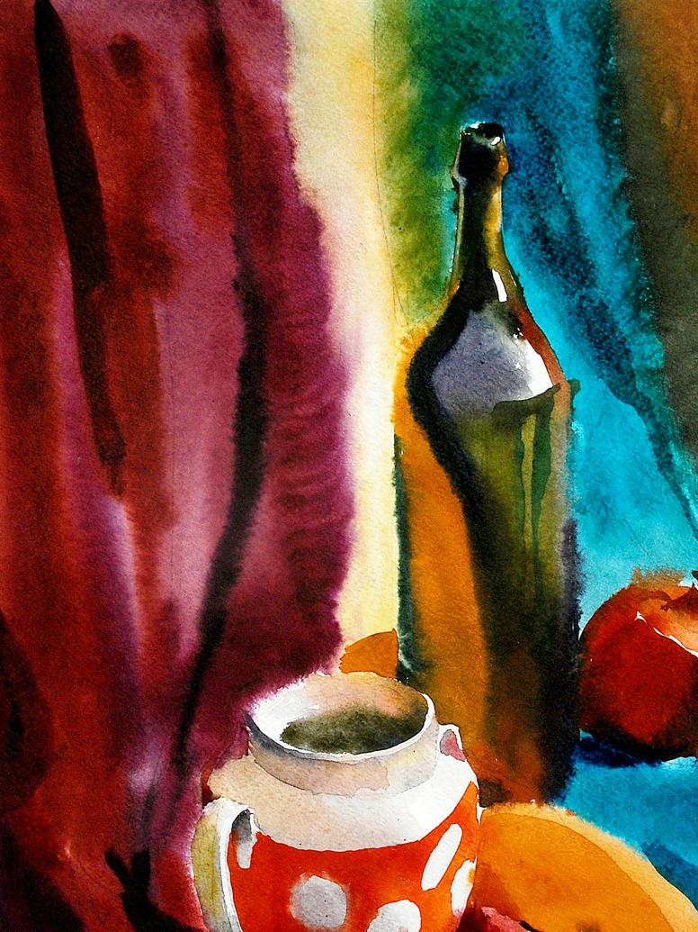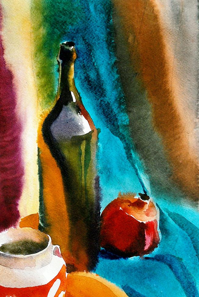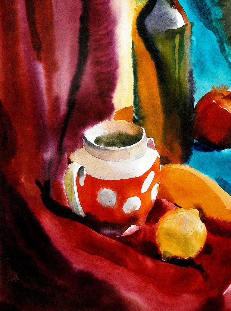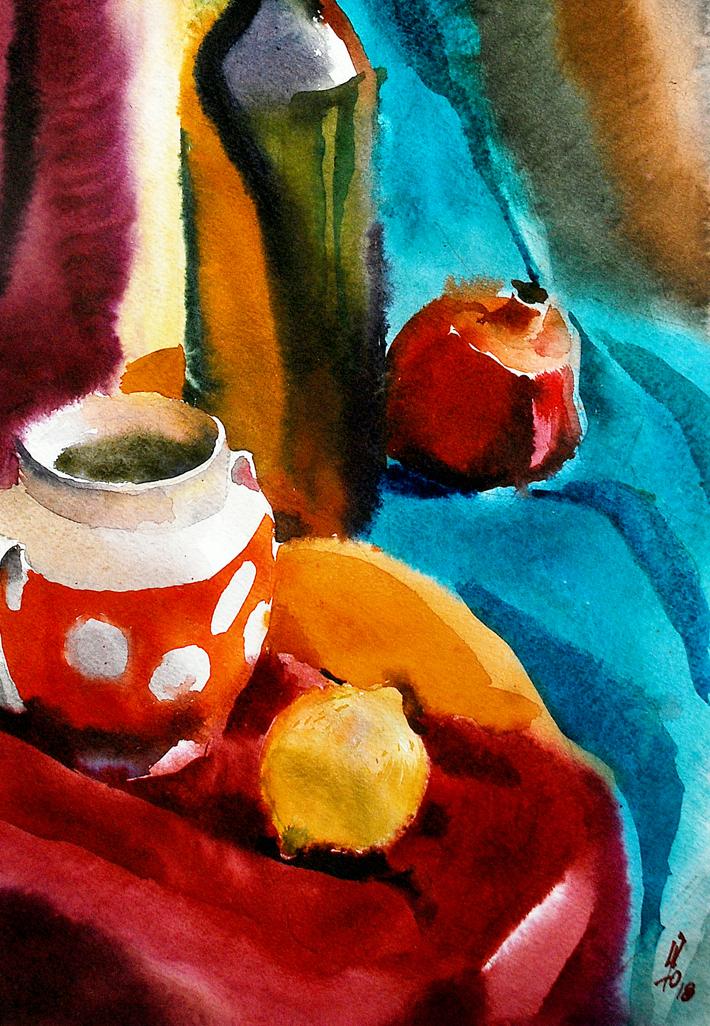 Watercolor painting Tea and fruit still life Egor Shvachunov