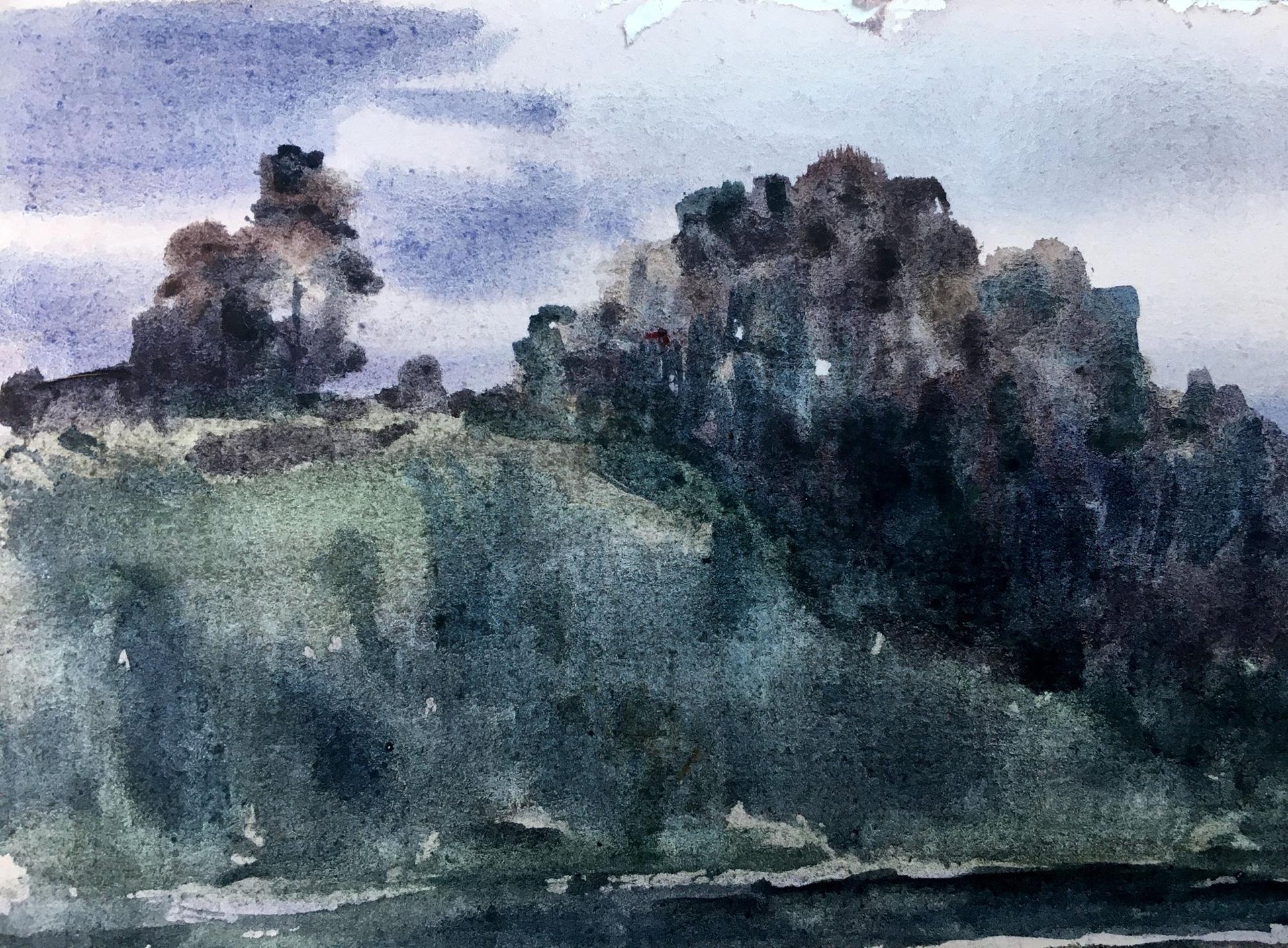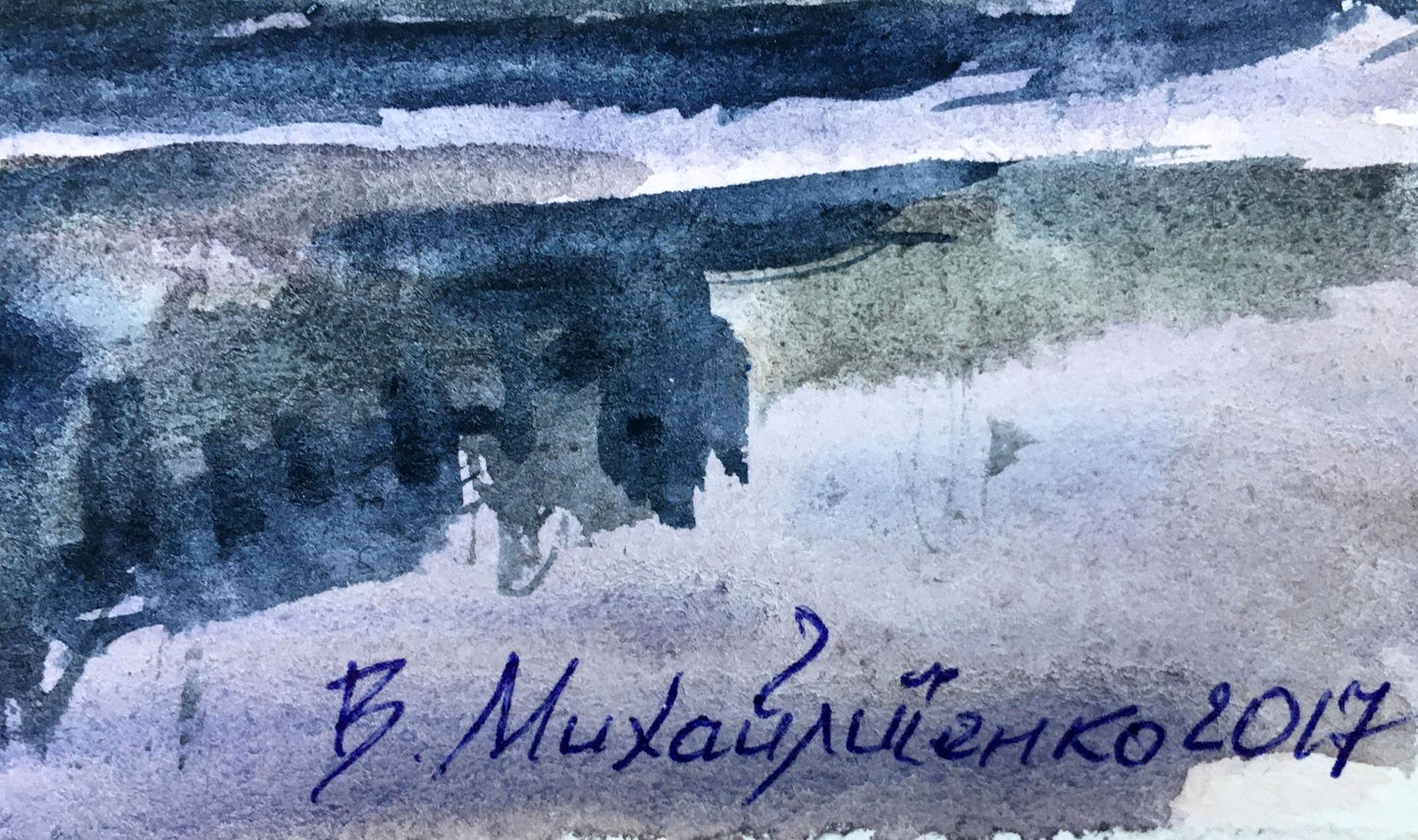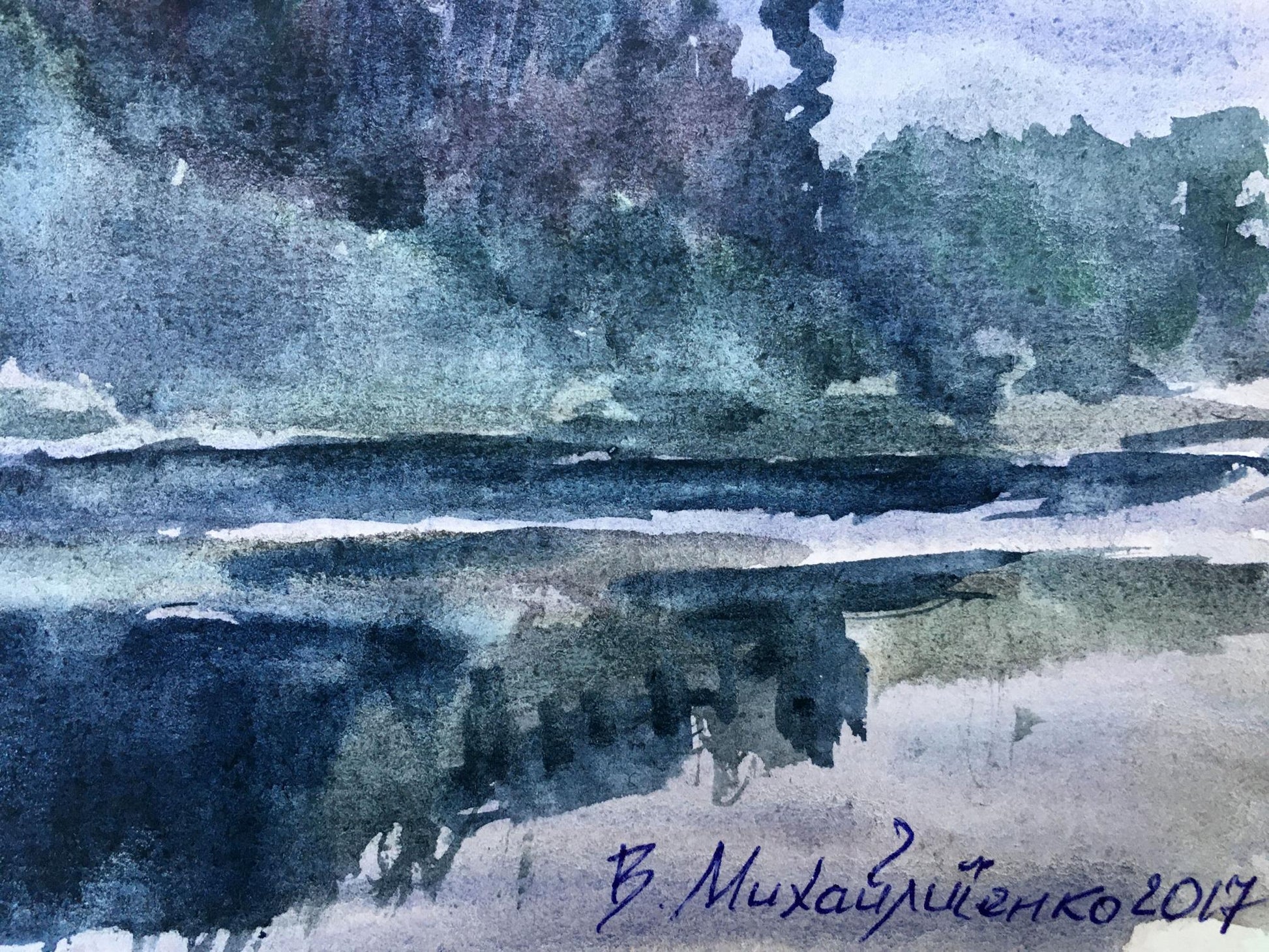 Watercolor painting Twilight by the river Viktor Mikhailichenko
