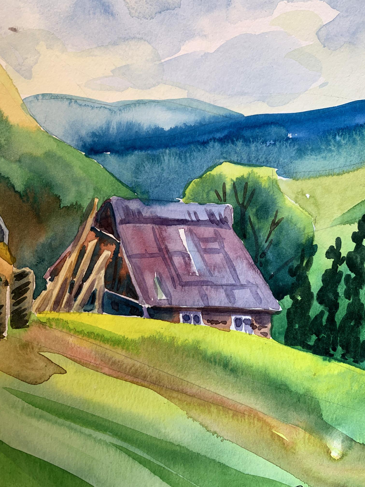 Watercolor painting Village in the mountains Svetlana Gramm