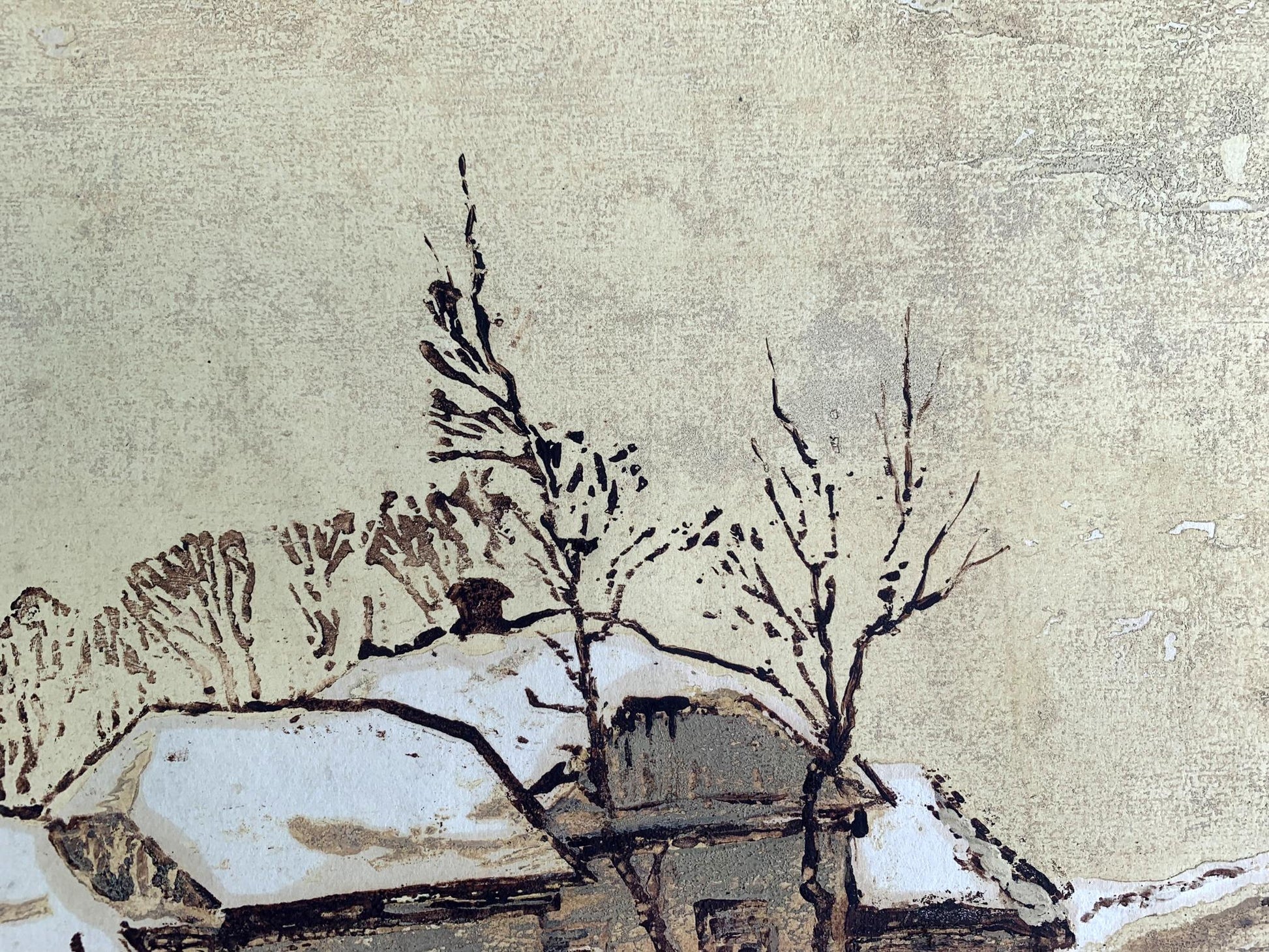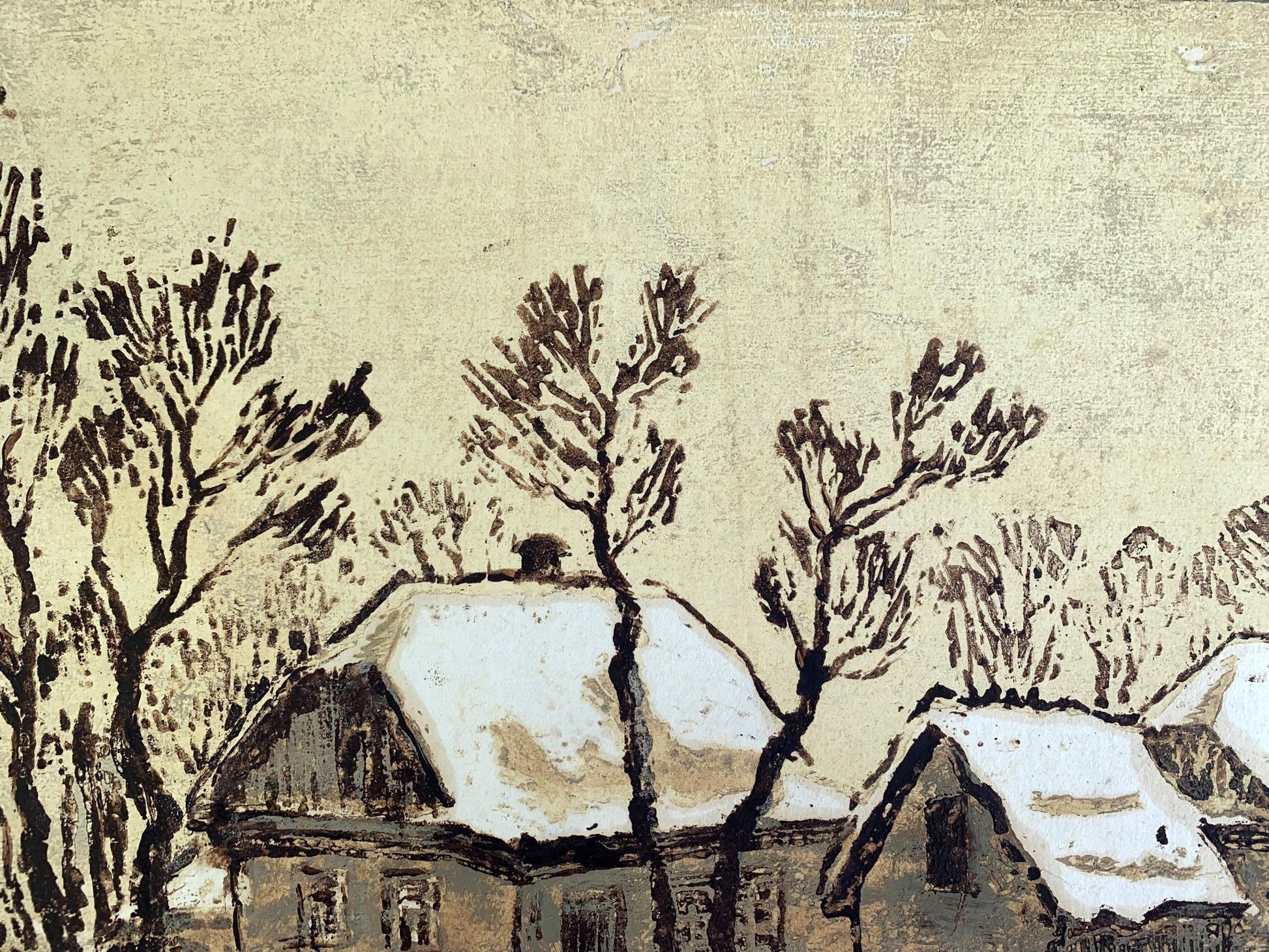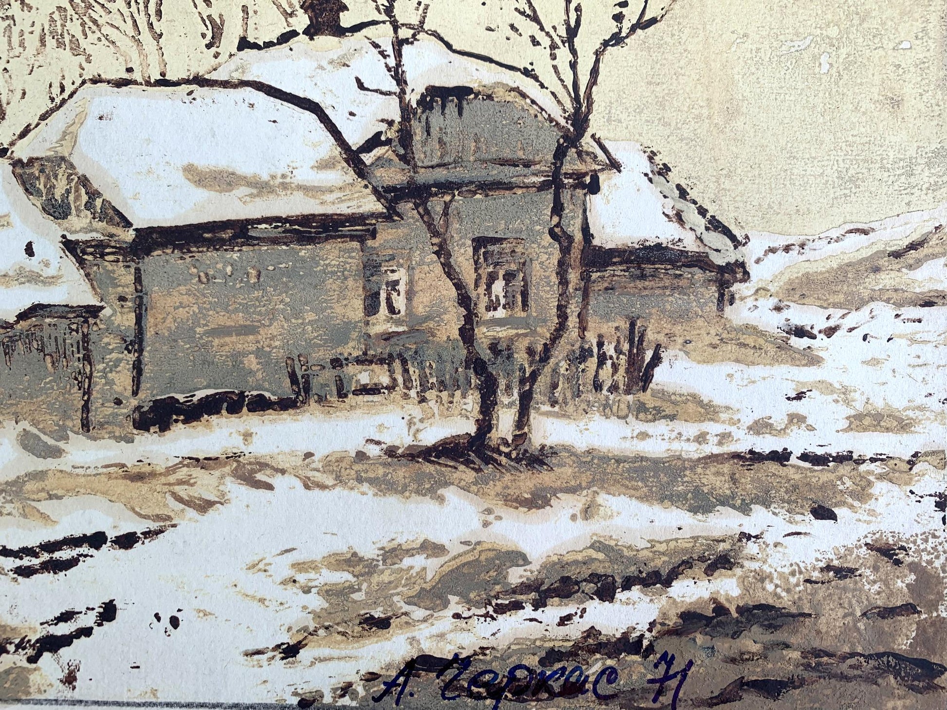 Watercolor painting Winter houses A. G. Cherkas